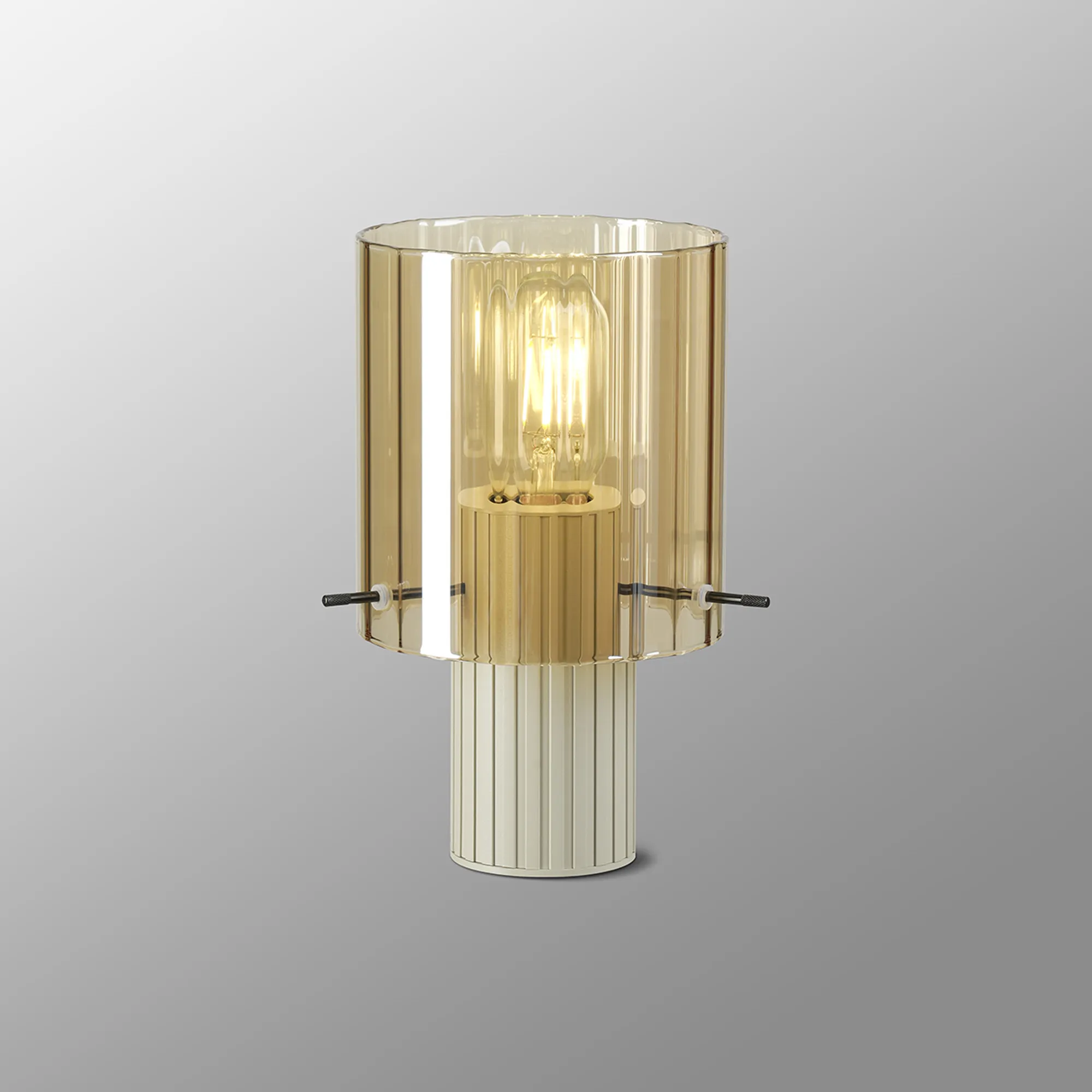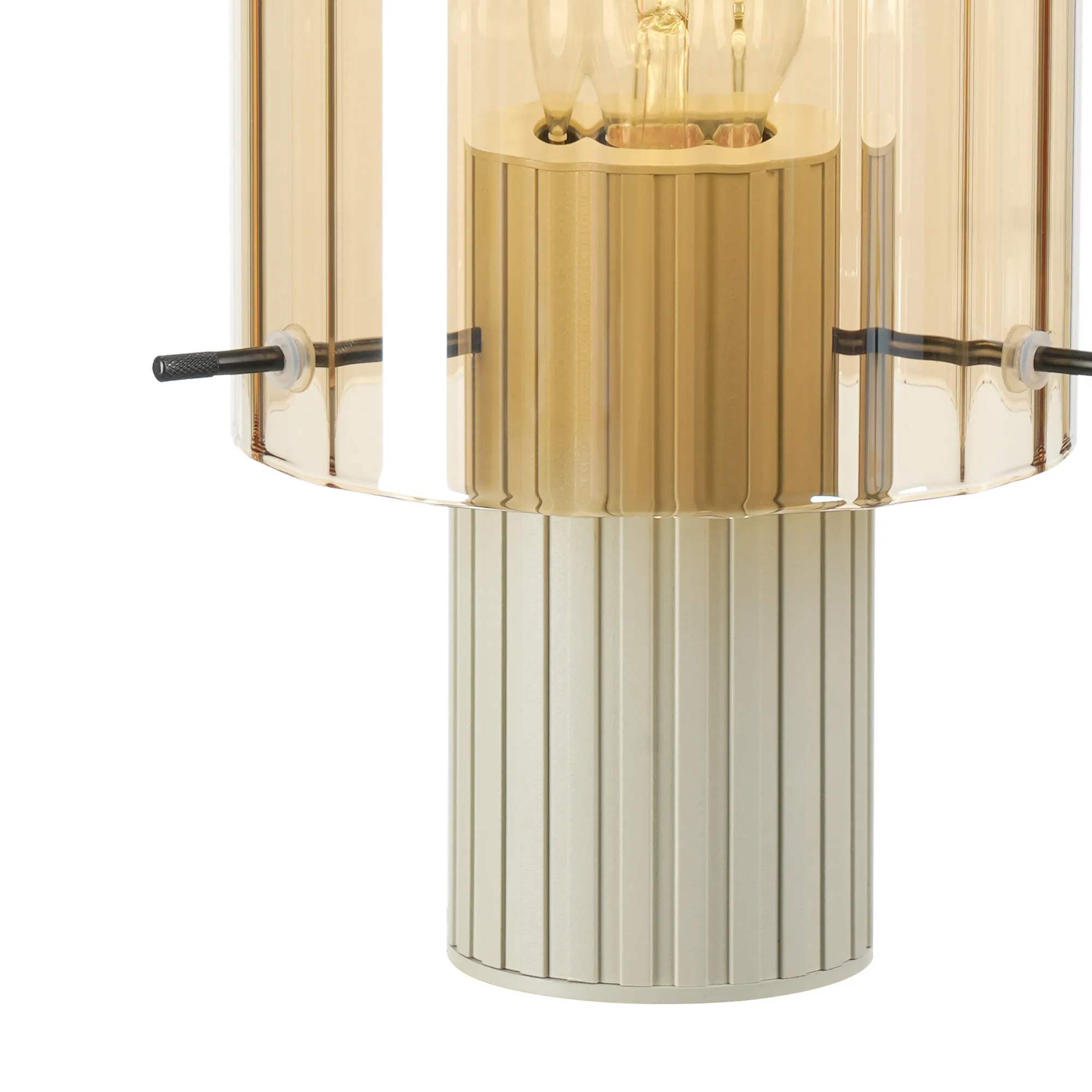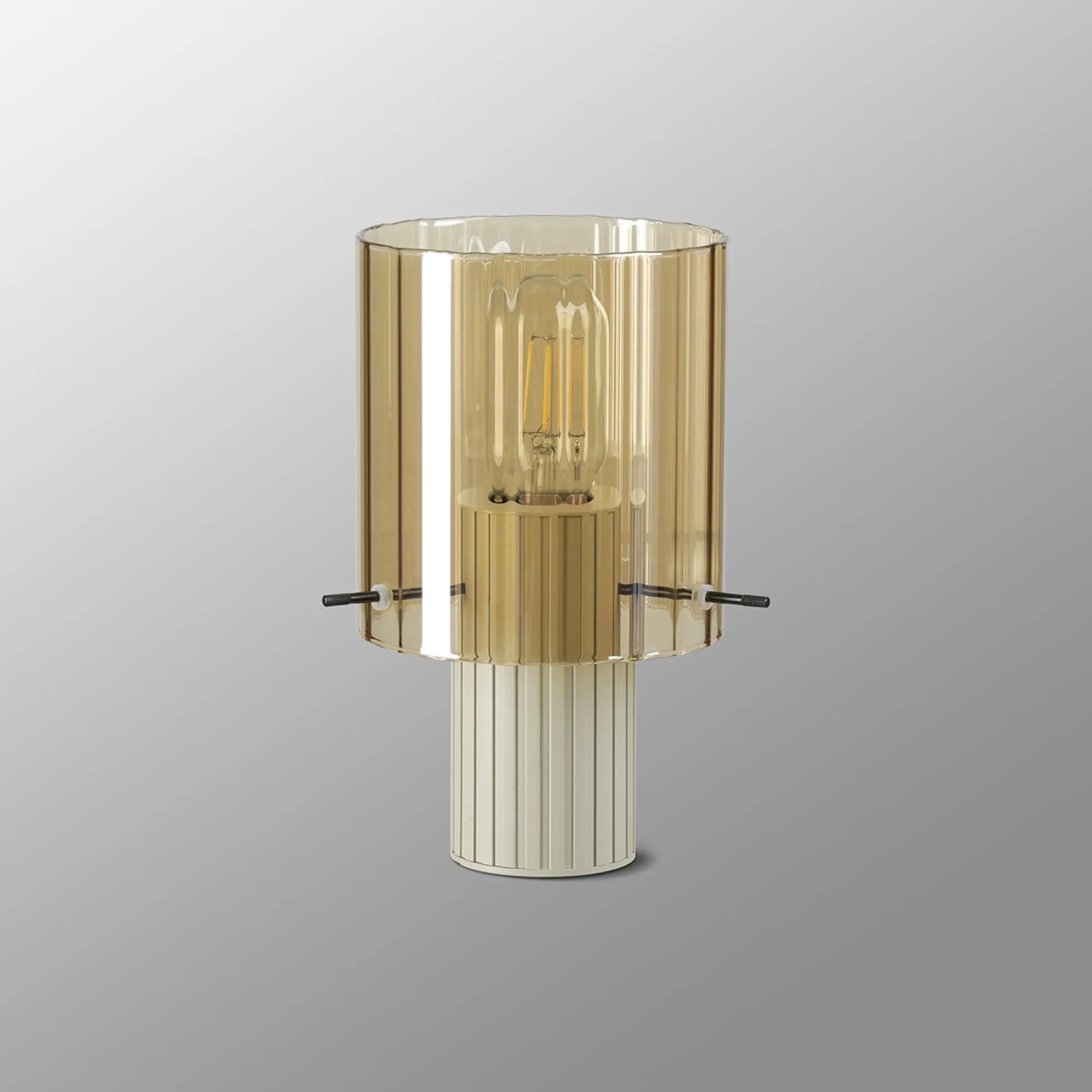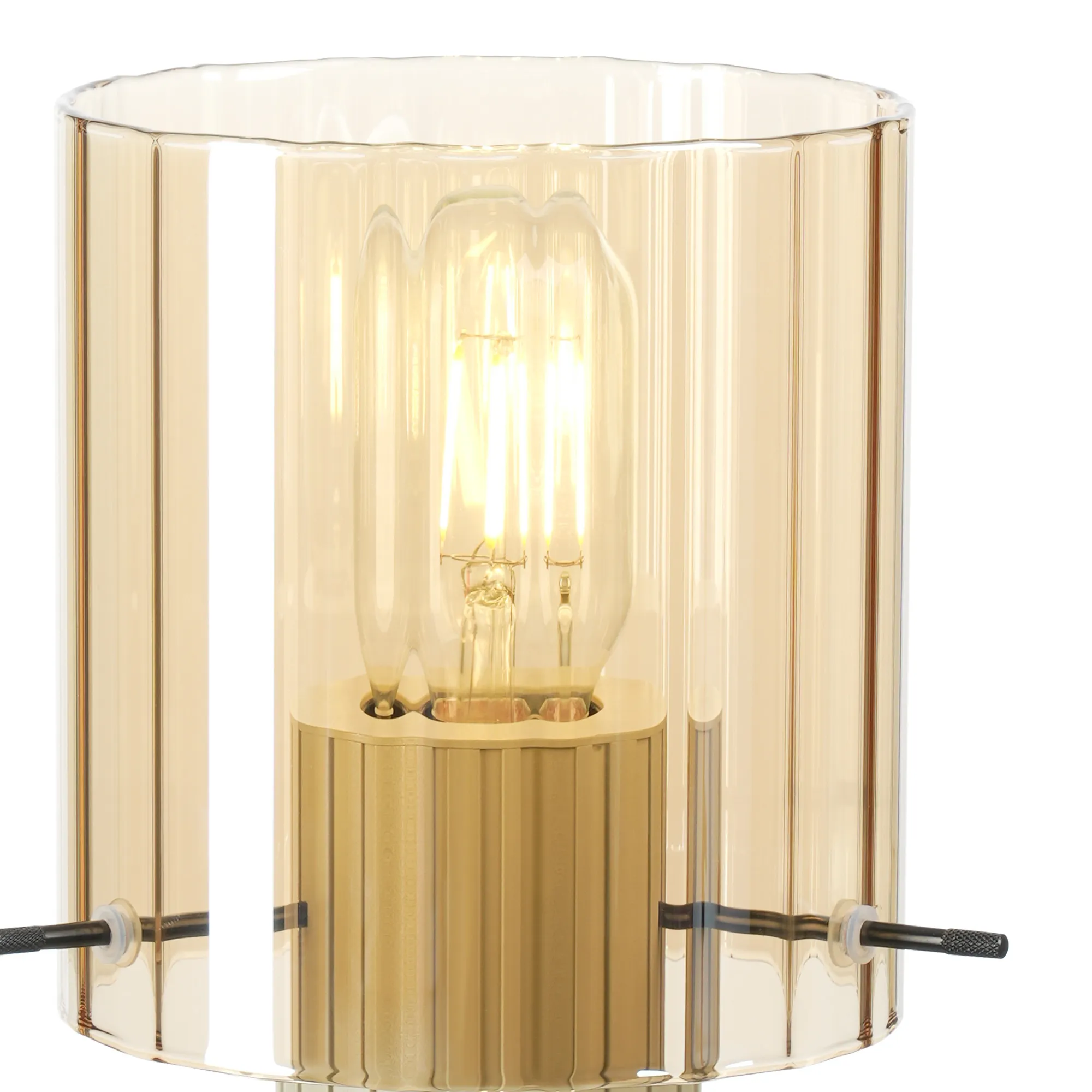 OTHER Castlegar Table Lamp, 1 Light E27, Beige Stone/Amber Wide Line Glass