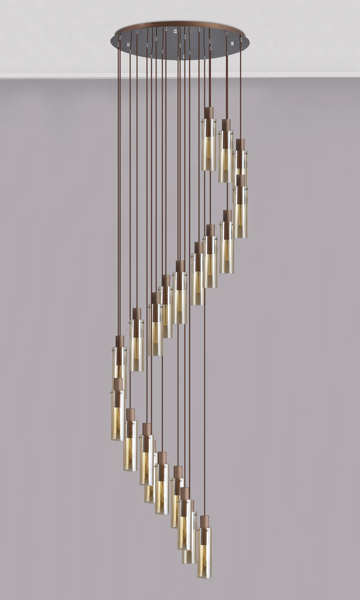 In keeping with our reputation for uncommon stand out designs, Kea Slim capitalises on the intriguing ombré effect of the faded black and amber, by applying the finish to substantial glass cylinders which sit around the E27 lamp holders. This feature has been used to manufacture a range of ceiling lights, pendants and a complementing wall and table lamp perfect for modern settings.
