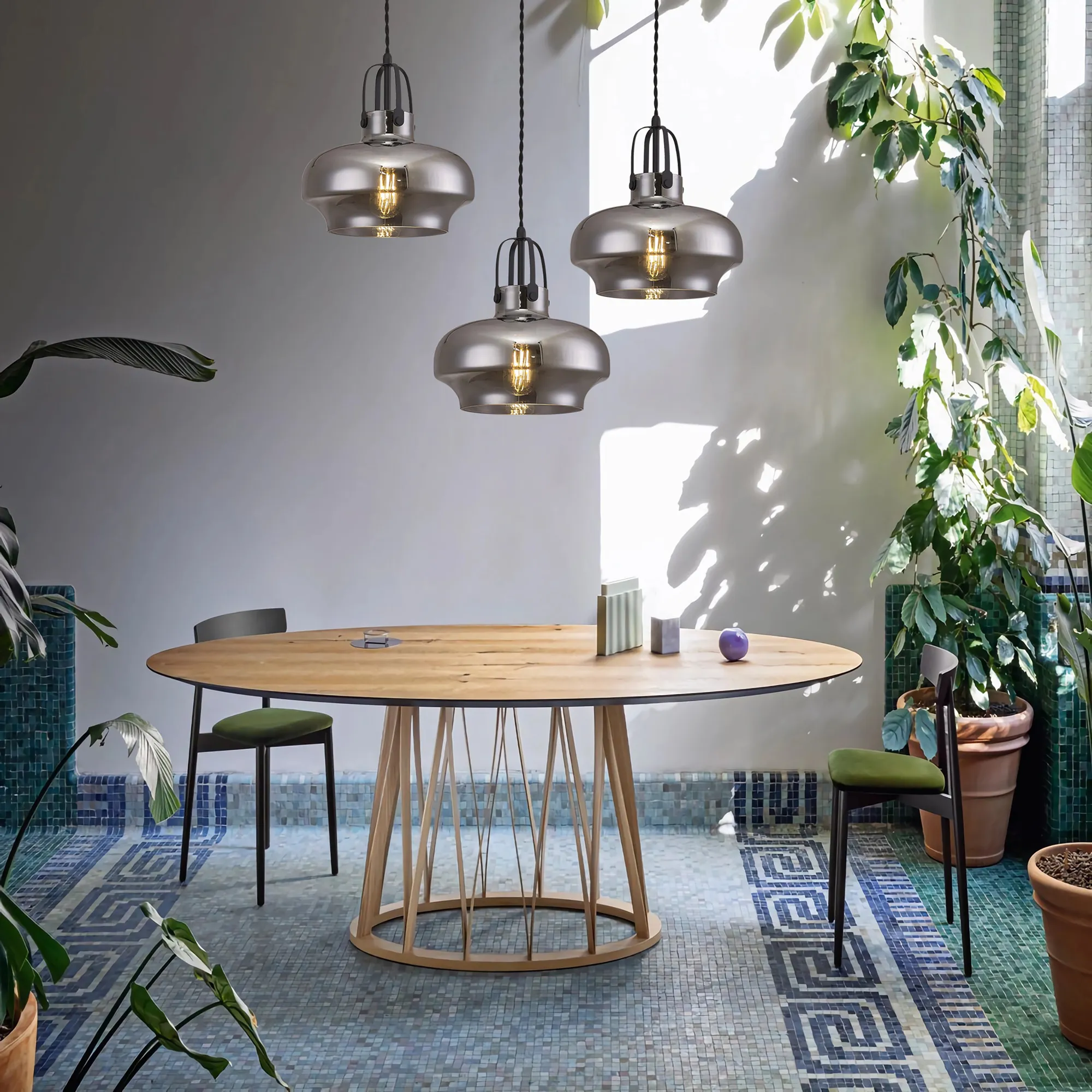 Colwood's unique glass shape is an eye-catching feature for these single pendants. The four handle attachments to hold the glass onto each E27 suspension add that extra layer of detail making the design more appealing. Colwood is available in four colour finishes.