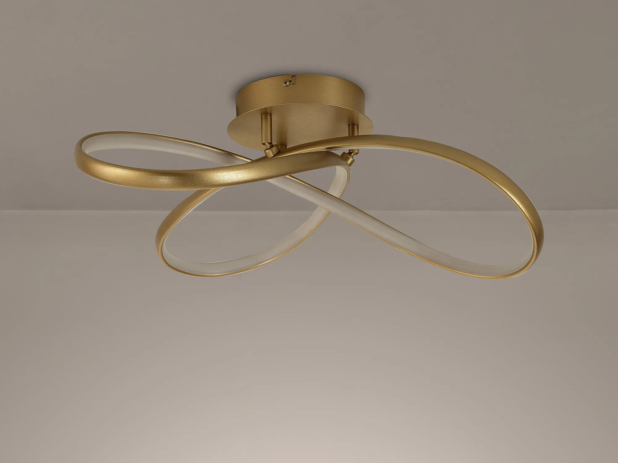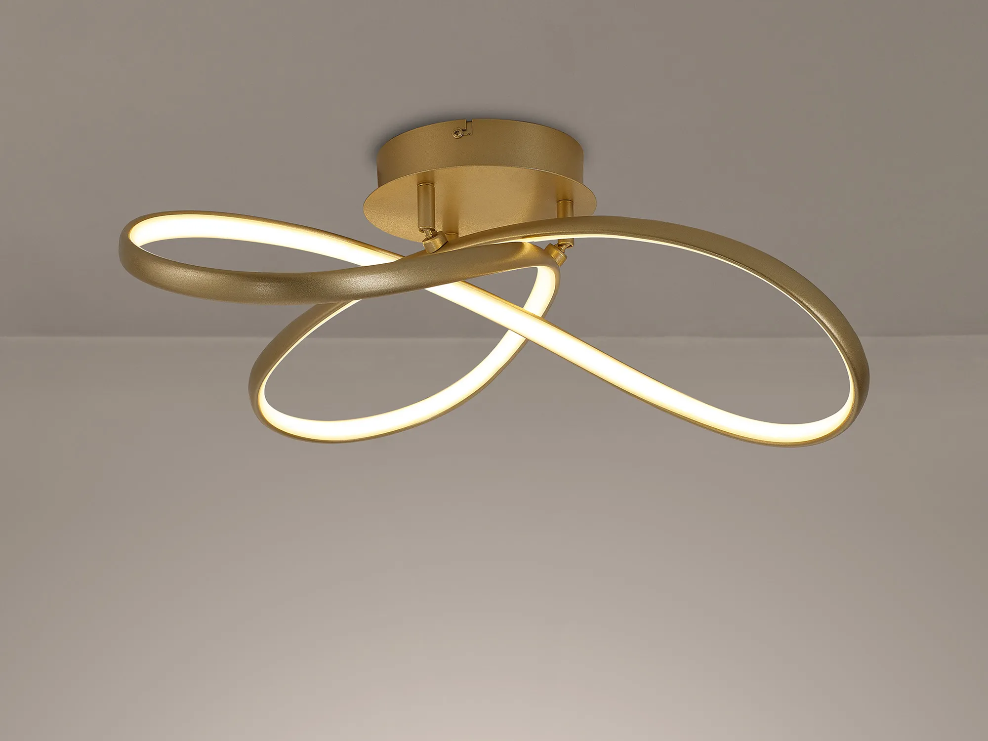 The rhythmic twists and curls of the Cranbrook form deliver a seamless flow of light. Despite the spiralled directionality of the integral LEDs the fittings as a whole emit an ambient glow of 3000K illumination. In order to offer a wider variety of LED options, Cranbrook boasts a champagne gold colour finish making the pendant, ceiling and wall light rare must have entities within a market where modern LED lighting paired with traditional colours are scarce.