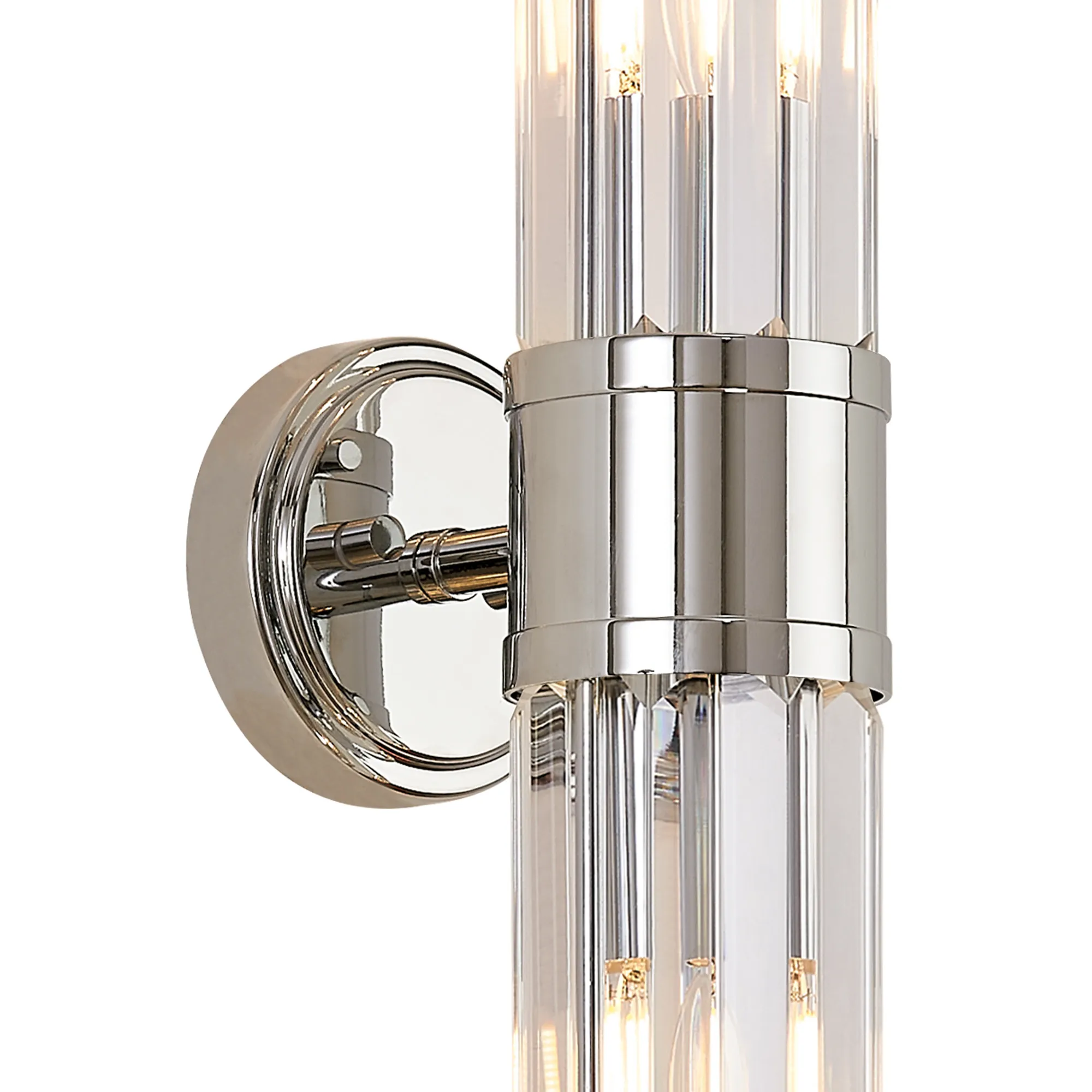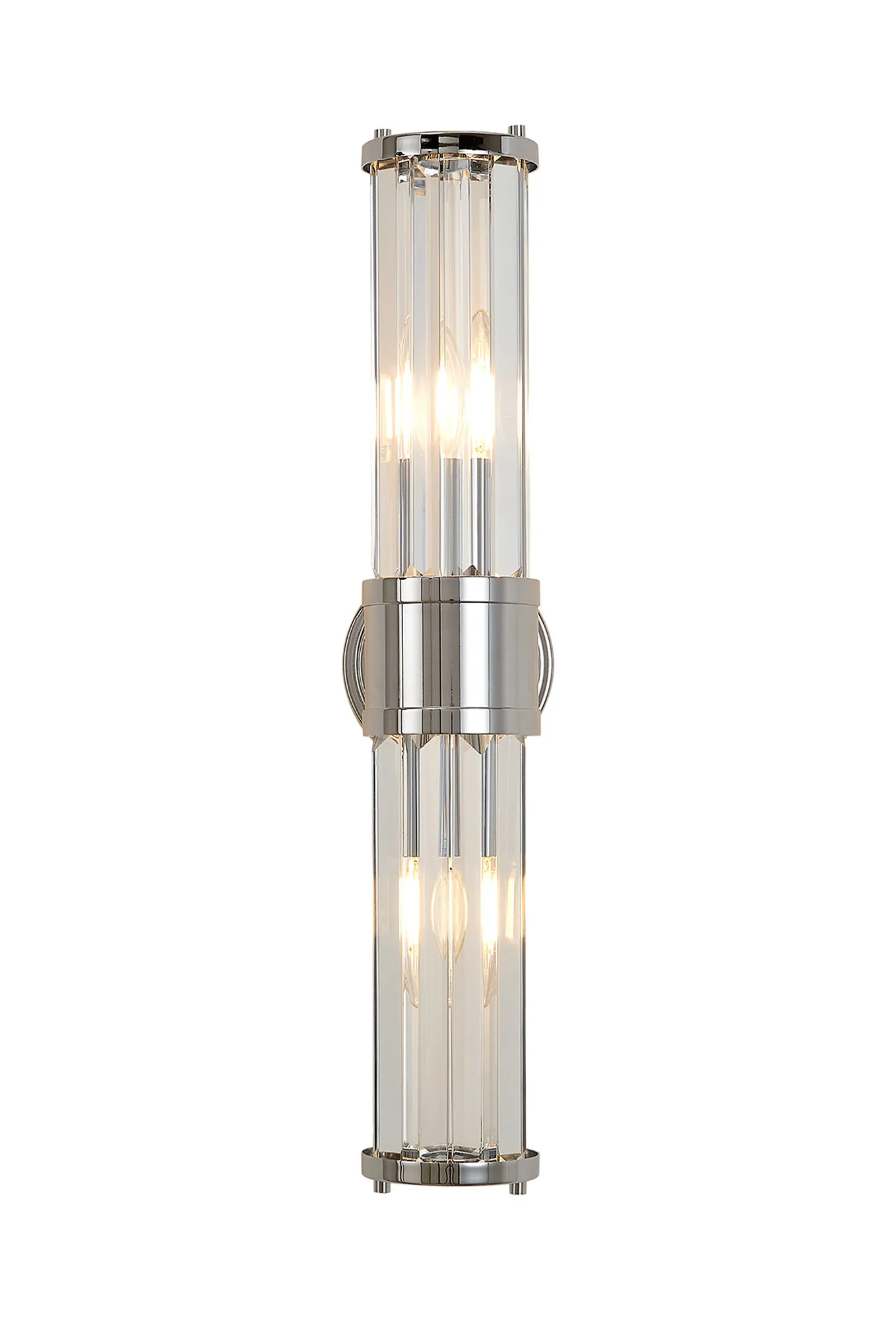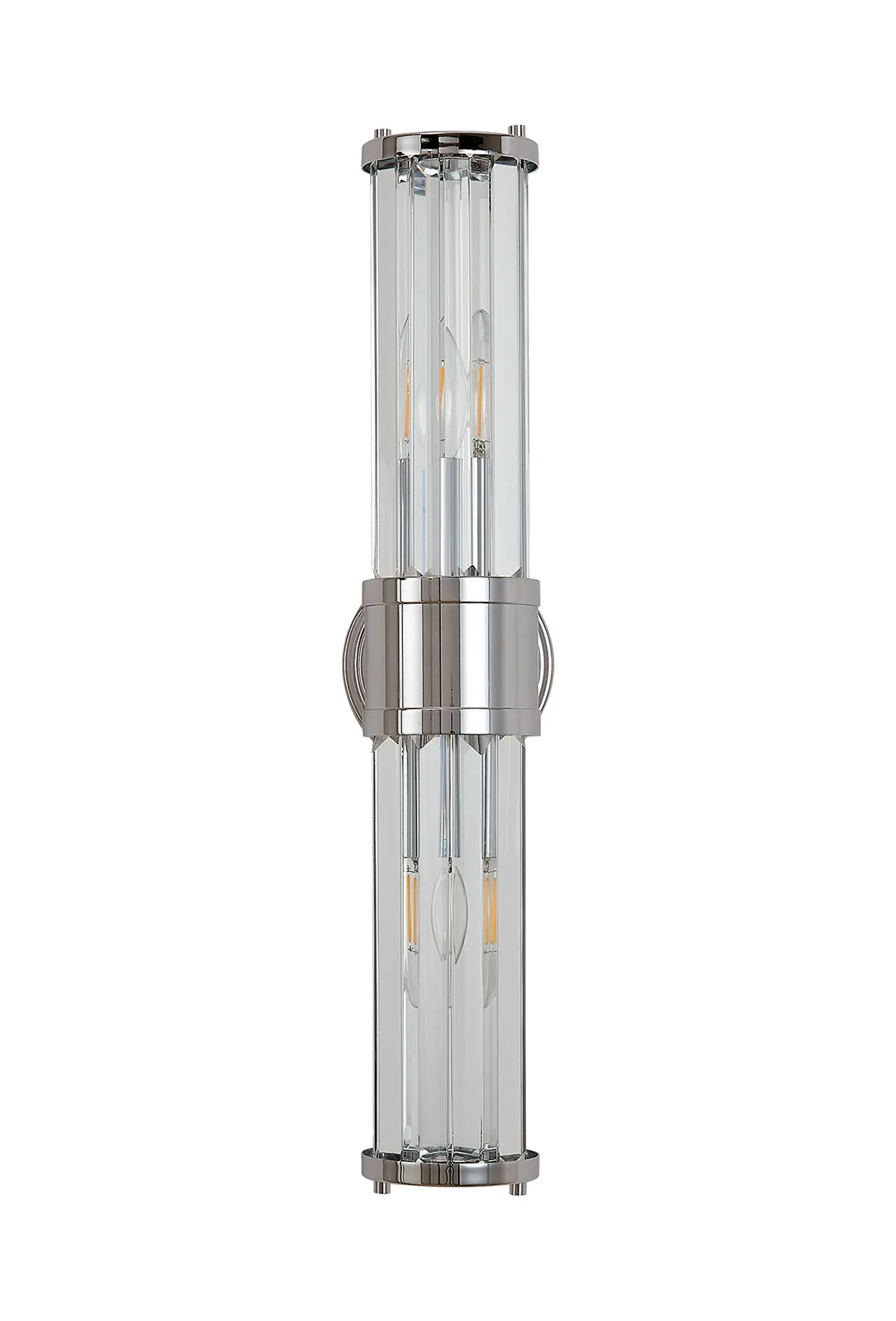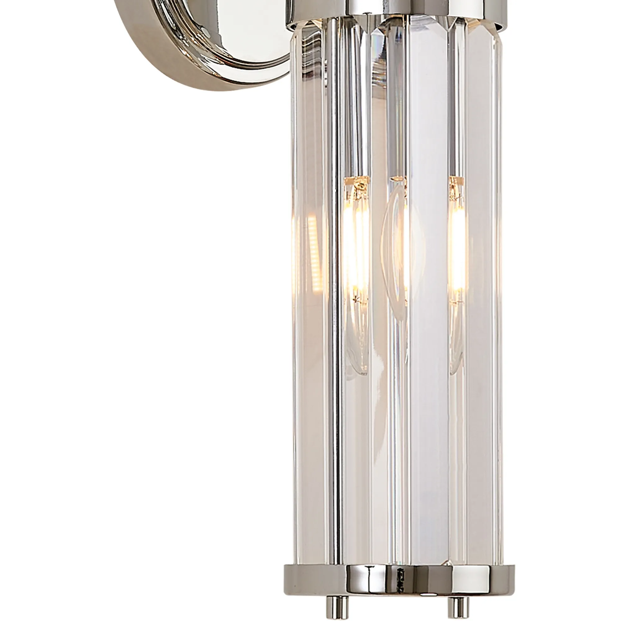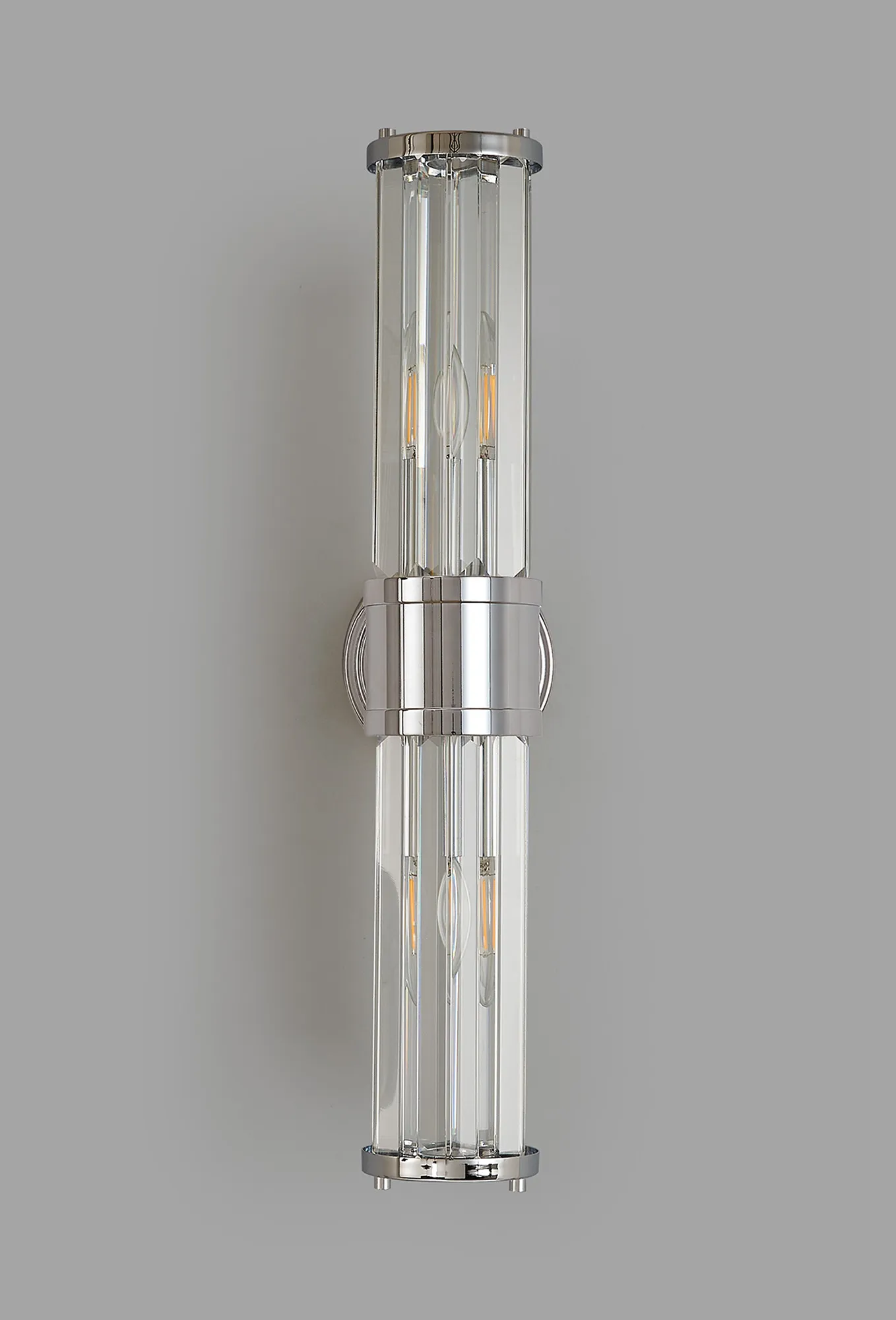 The Delta collection presents sophisticated wall light fixtures that combine functionality with elegance. Featuring an IP44 rating, their clear crystal rods provide ample illumination and a stunning visual effect. These tubular shaped wall lights are available in a range of finishes including gold, antique brass, satin black, and polished chrome, each complementing the clear crystal elements that refract light beautifully to create a warm, inviting ambiance.