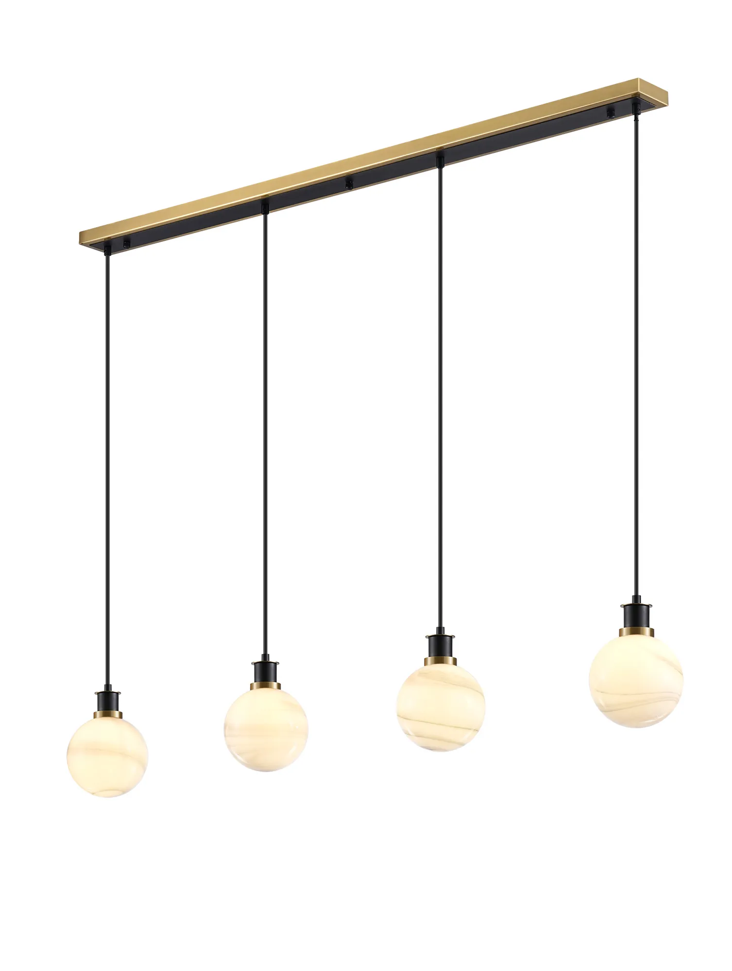 Fernie Table Lamp Touch Switch, 3 Light E14, With 15cm Round Marble Effect Glass Shade Brass, White, Satin Black