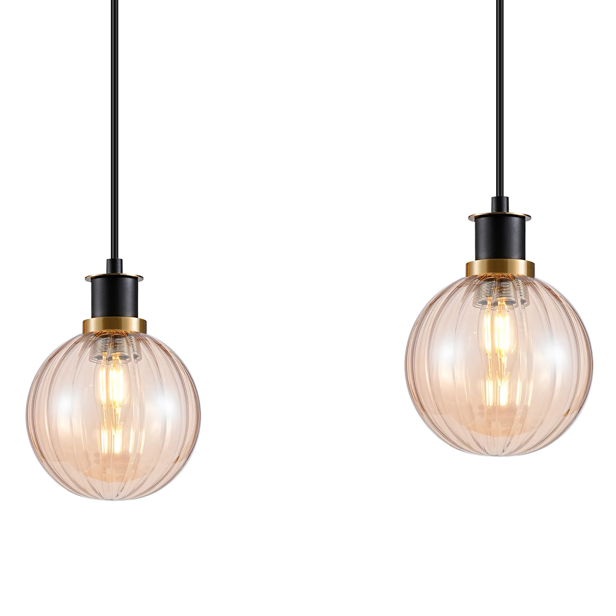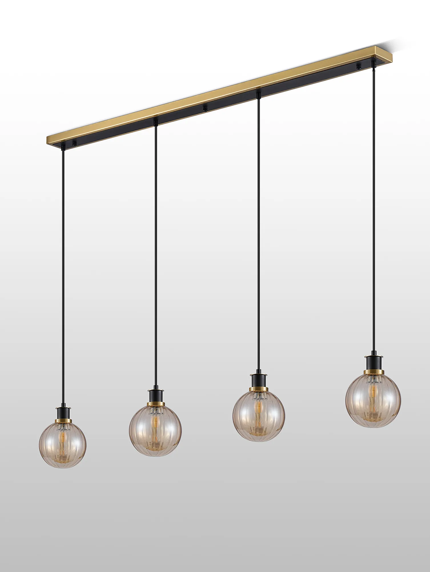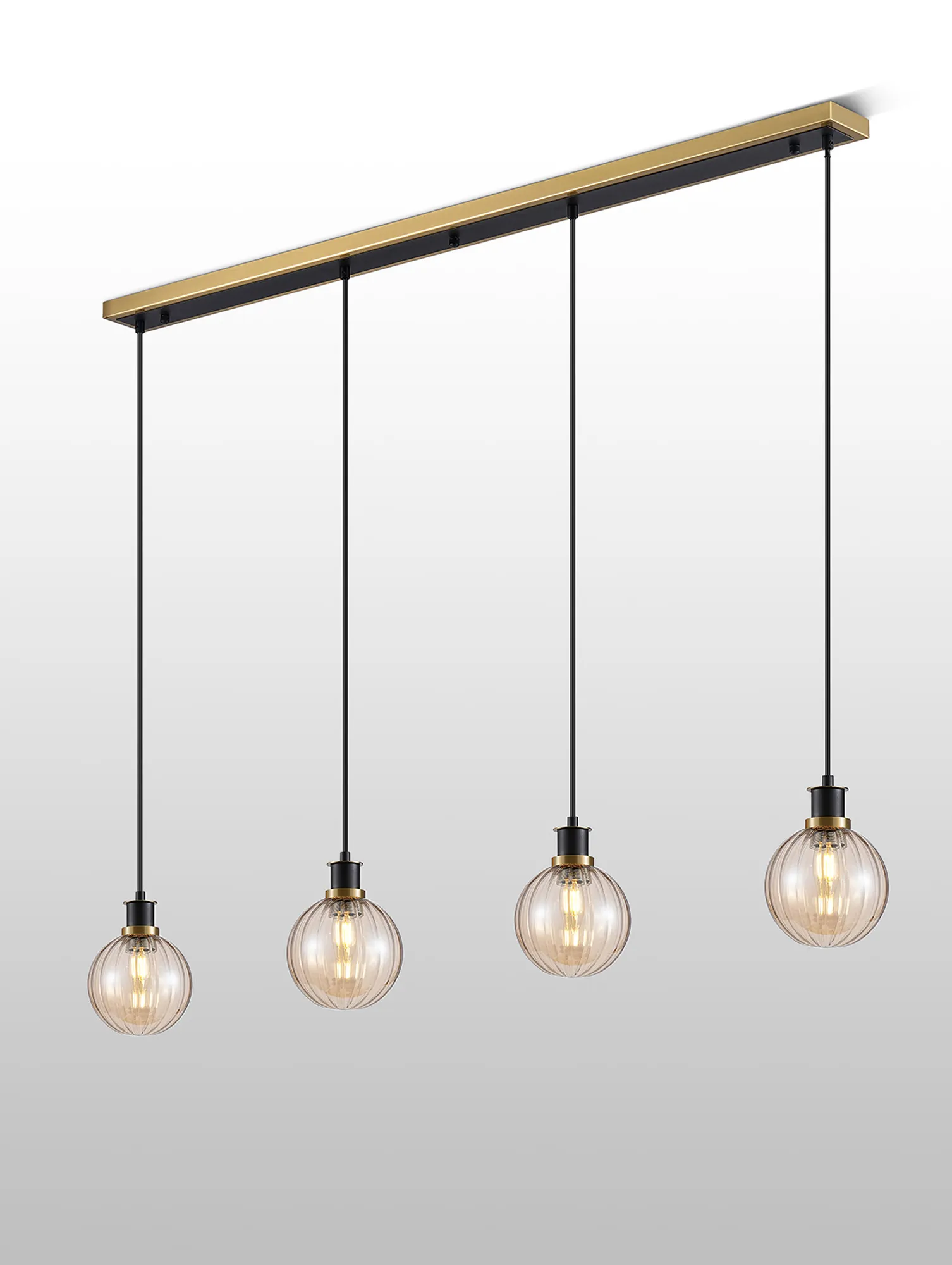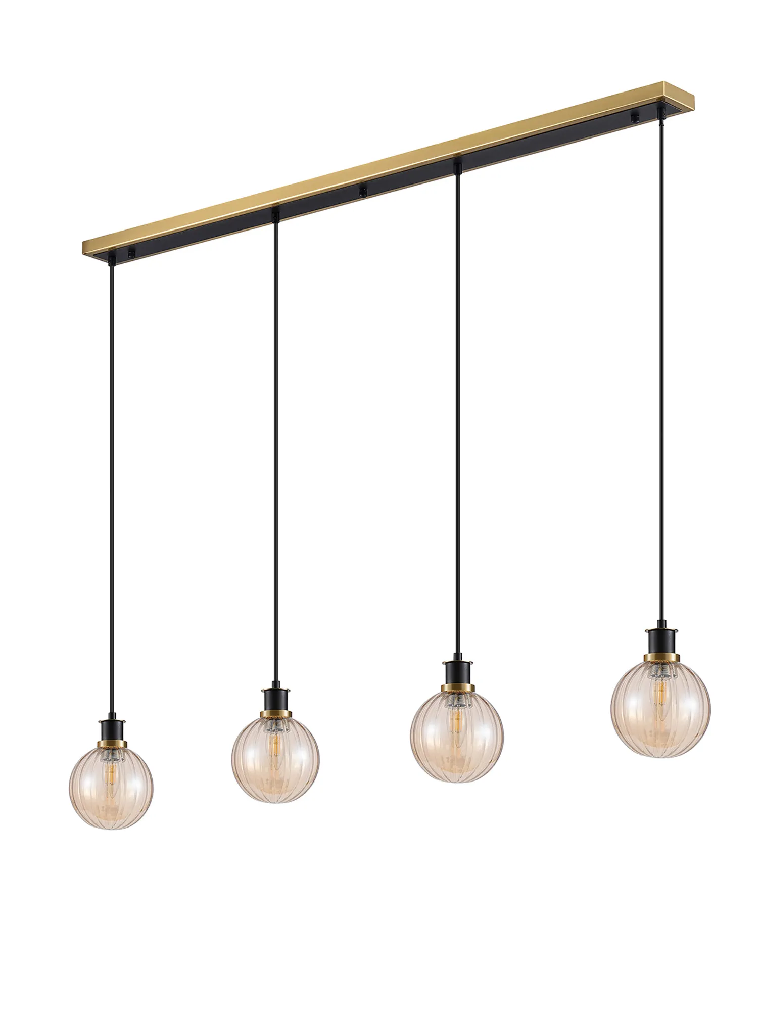 OTHER Fernie 1.3m Linear Pendant, 4 x E14 With 15cm Round Segment Glass Shade, Brass, Amber Plated & Satin Black