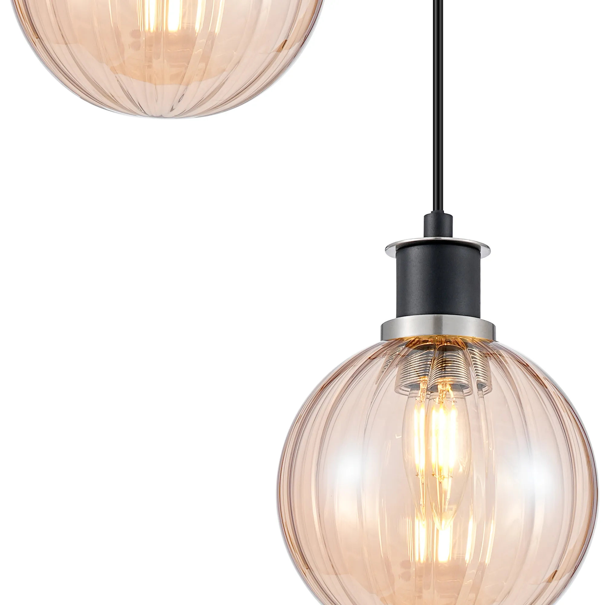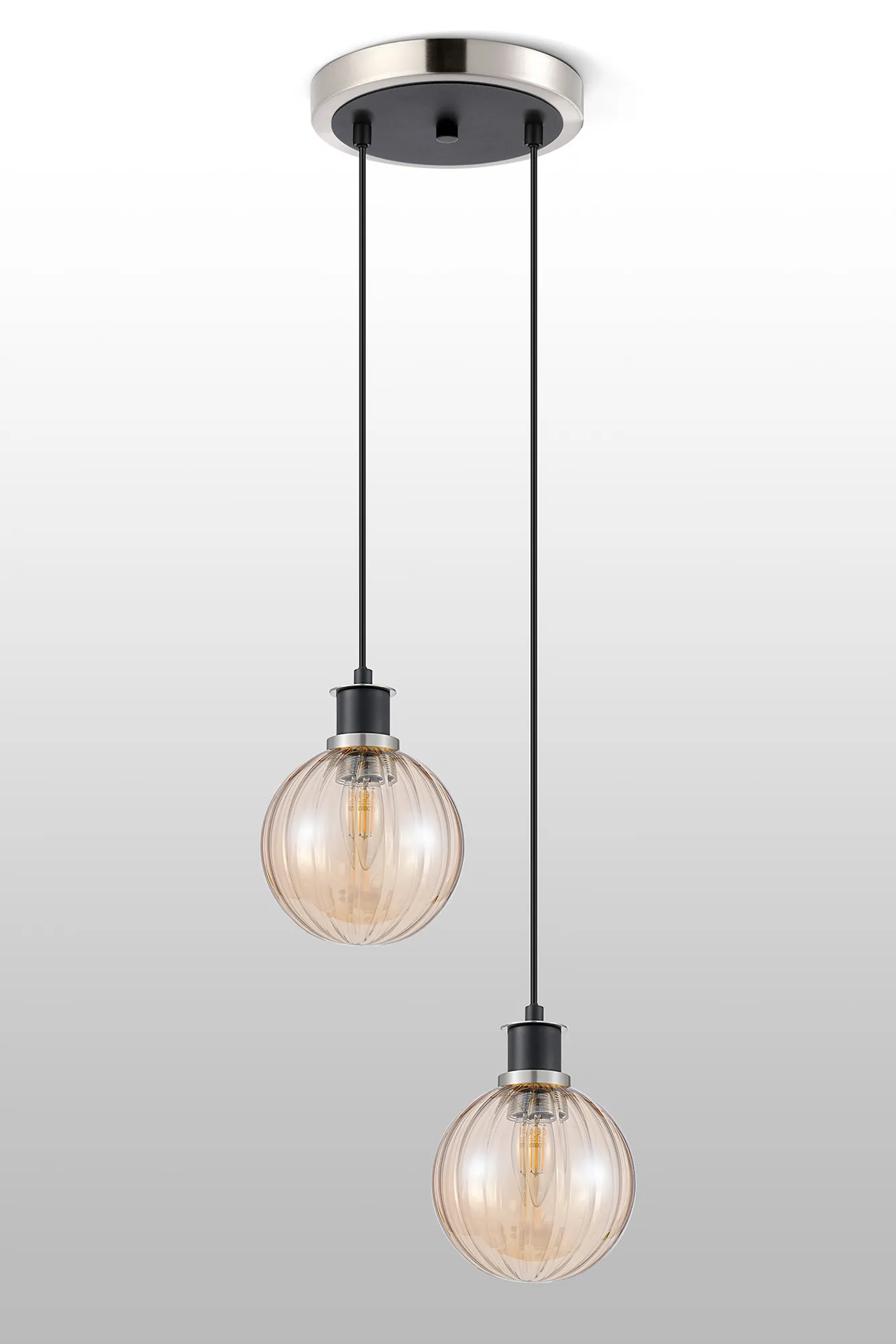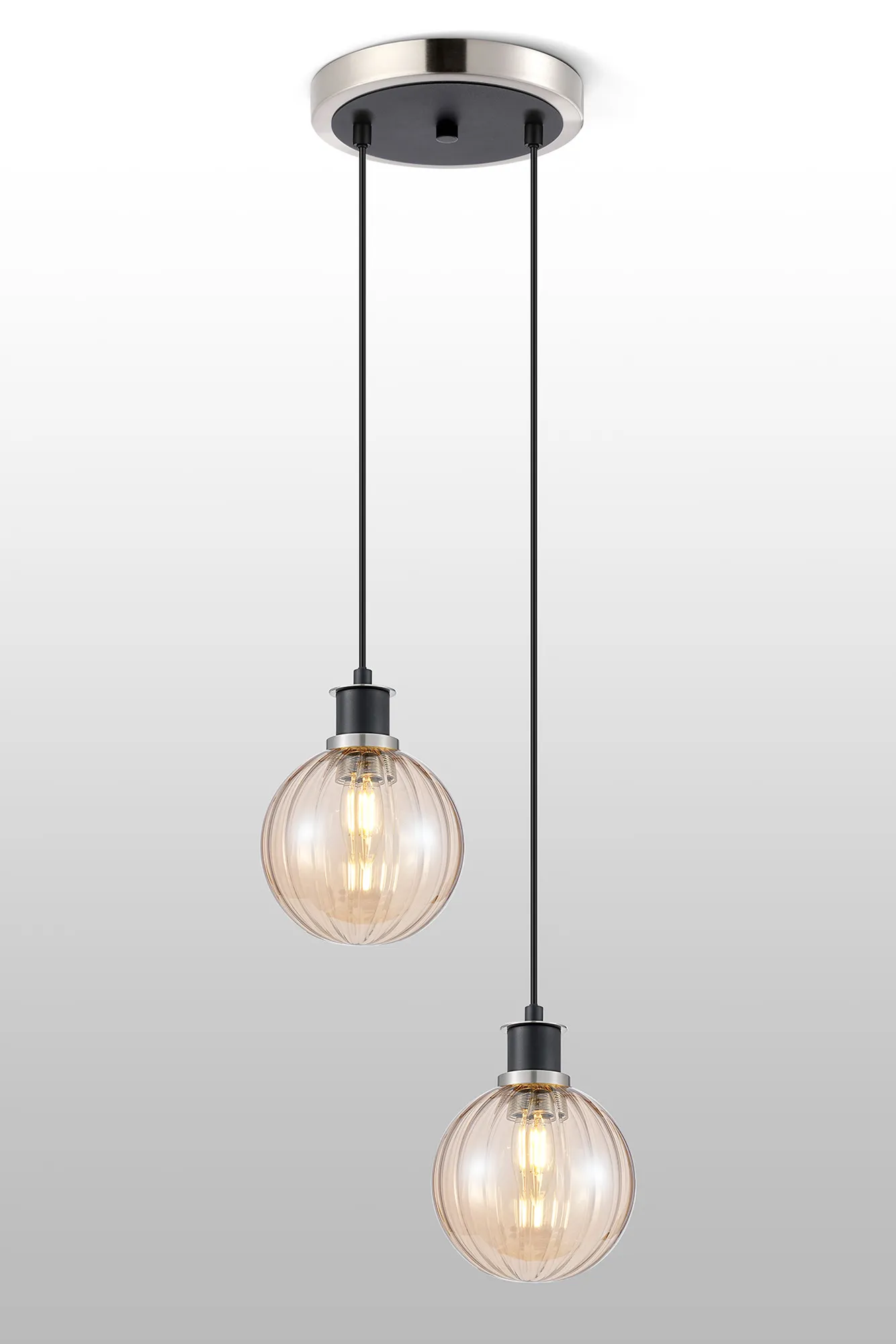 OTHER Fernie 2 Light Pendant, E14 With 15cm Round Segment Glass Shades, Satin Nickel, Amber Plated & Satin Black