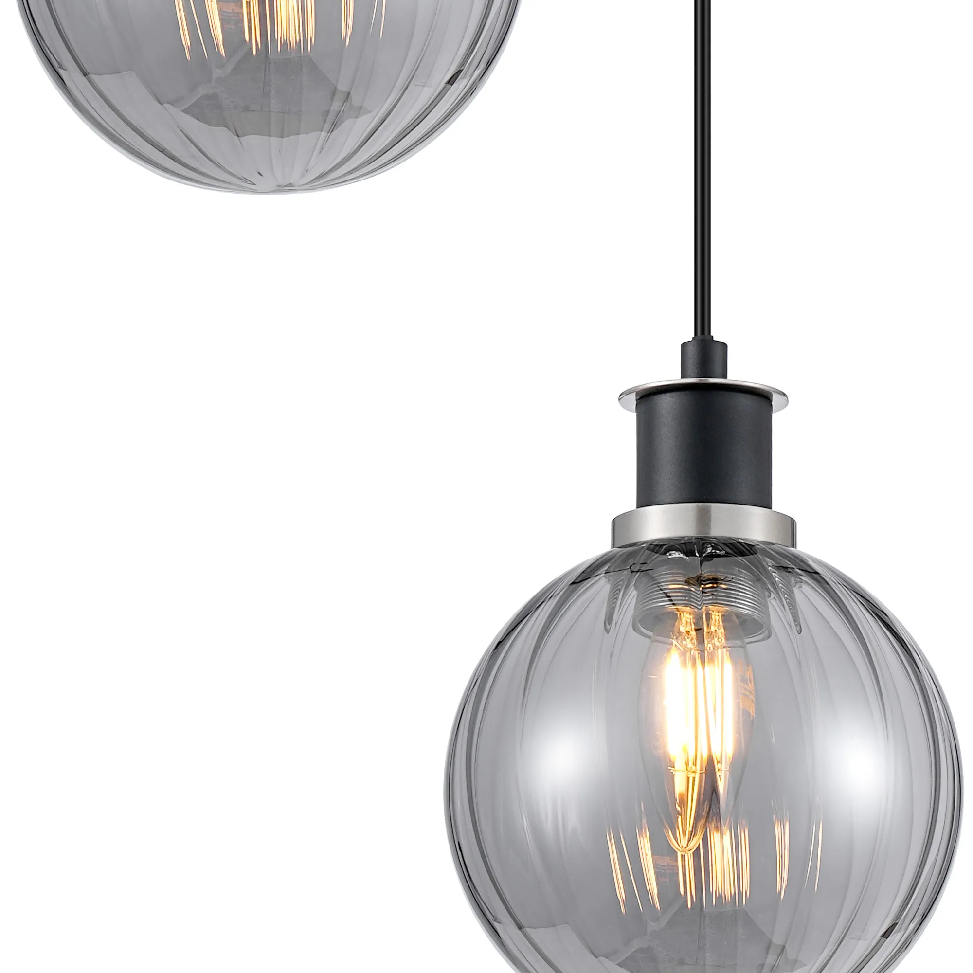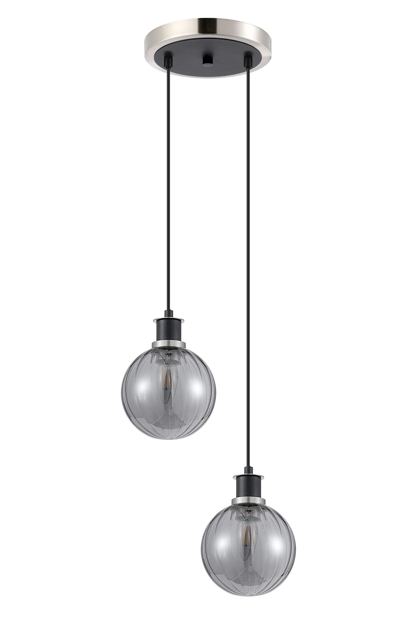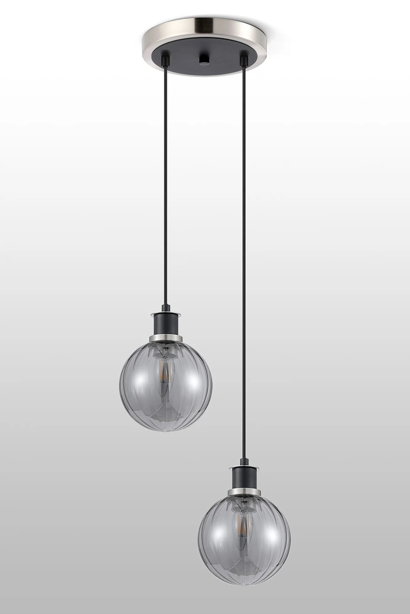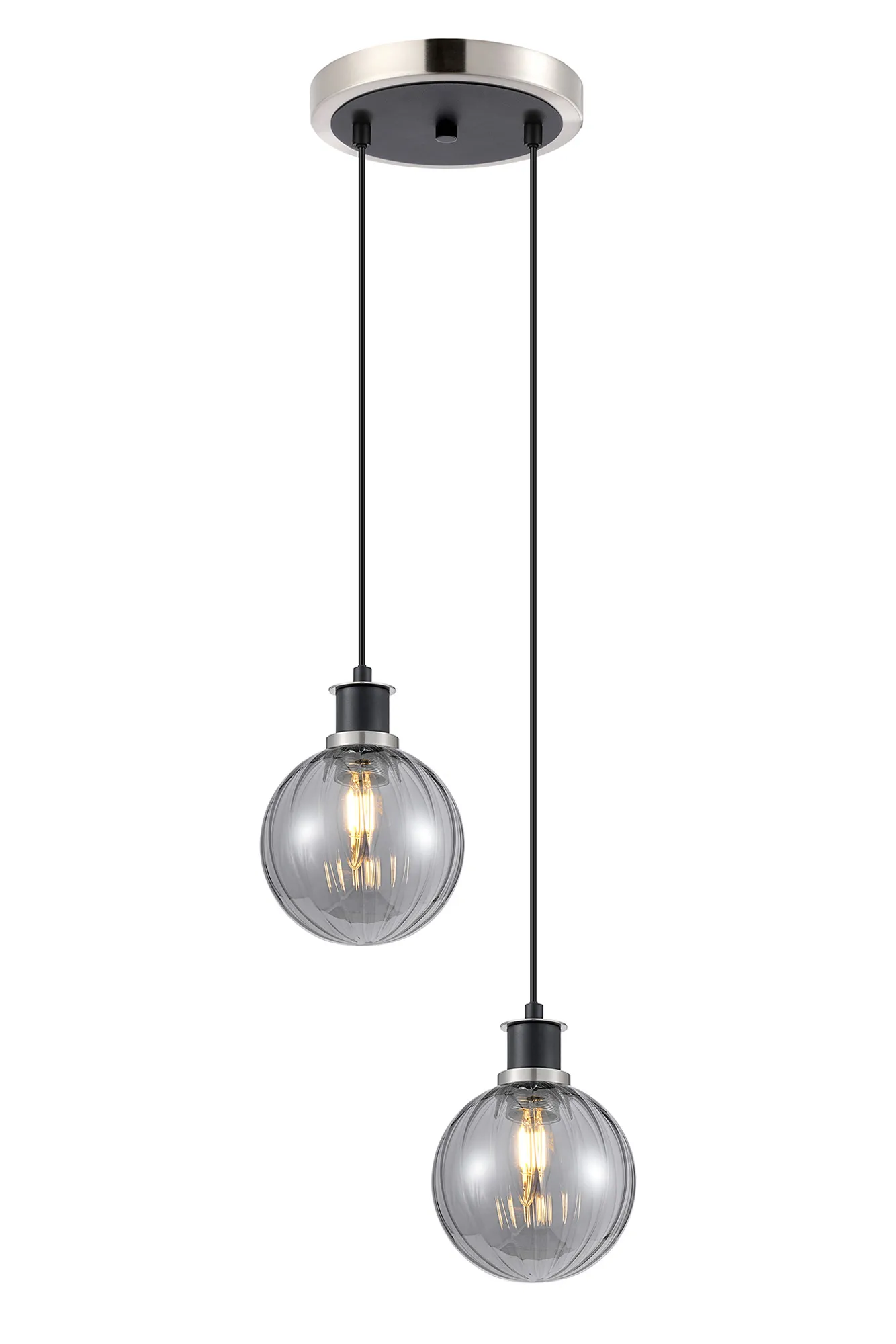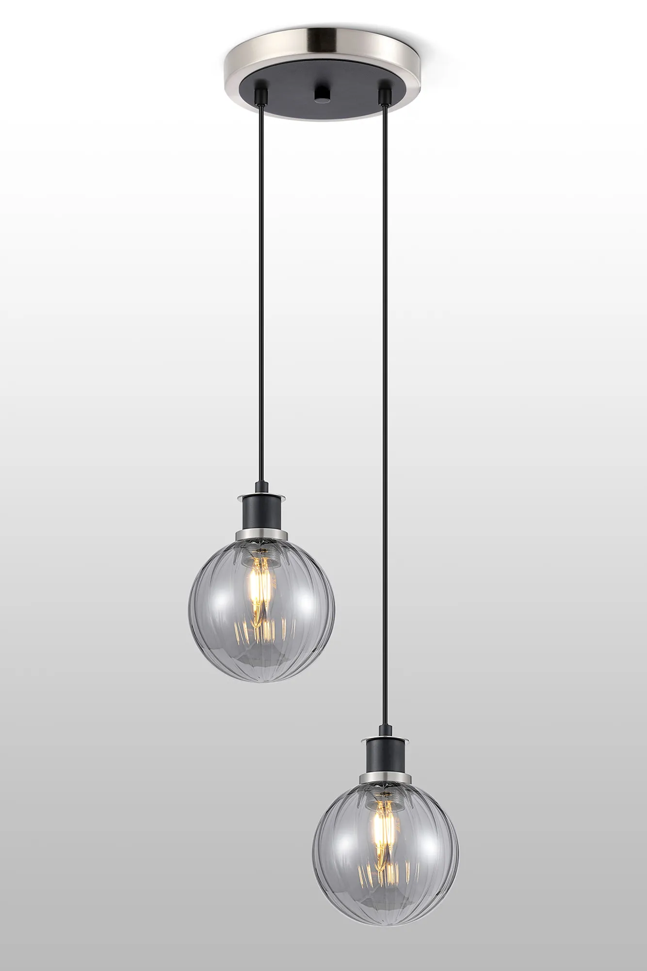 Fernie Table Lamp Touch Switch, 3 Light E14, With 15cm Round Segment Glass Shade Satin Nickel, Smoke Plated, Satin Black