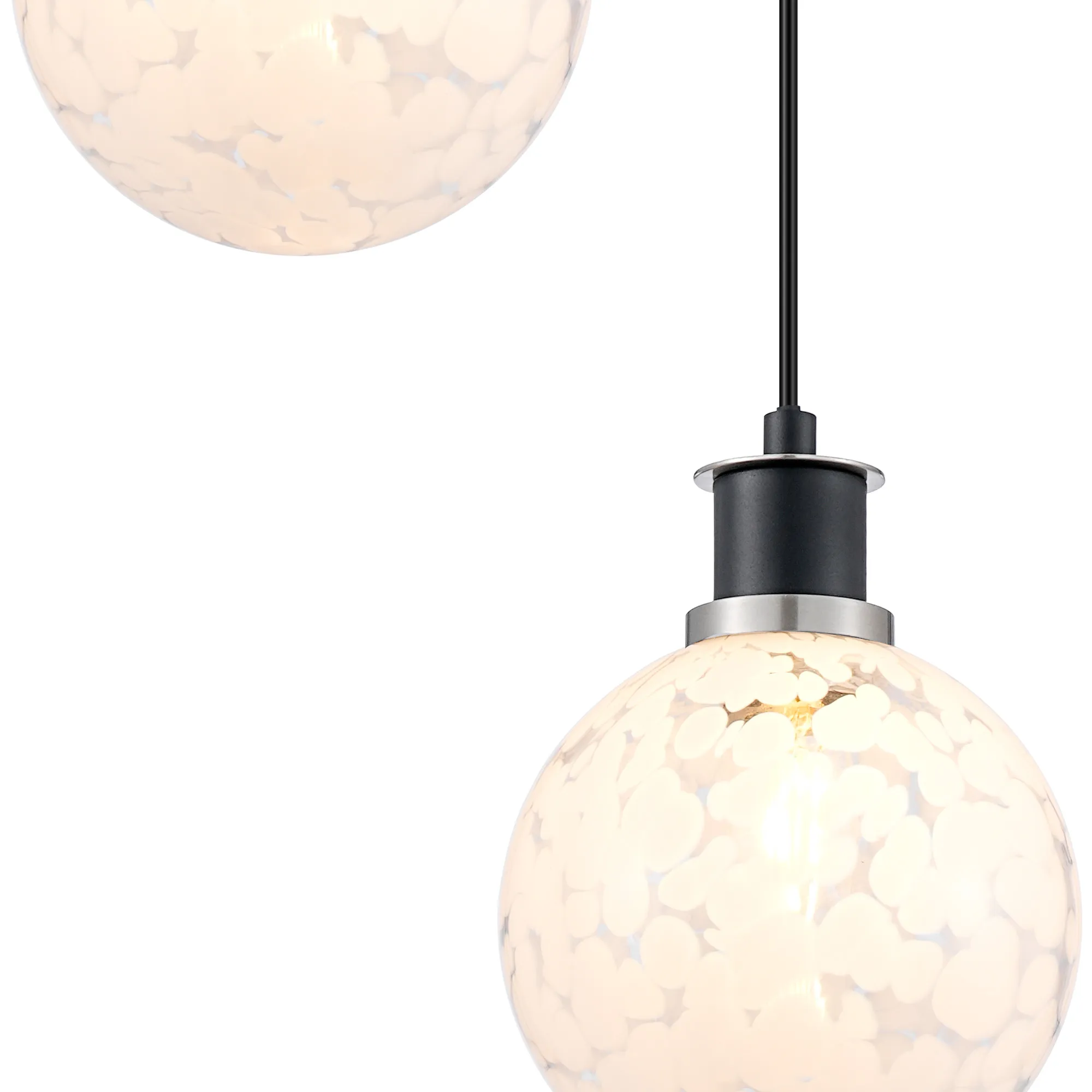 Fernie Table Lamp Touch Switch, 3 Light E14, With 15cm Round Speckled Glass Shade Satin Nickel, White, Satin Black