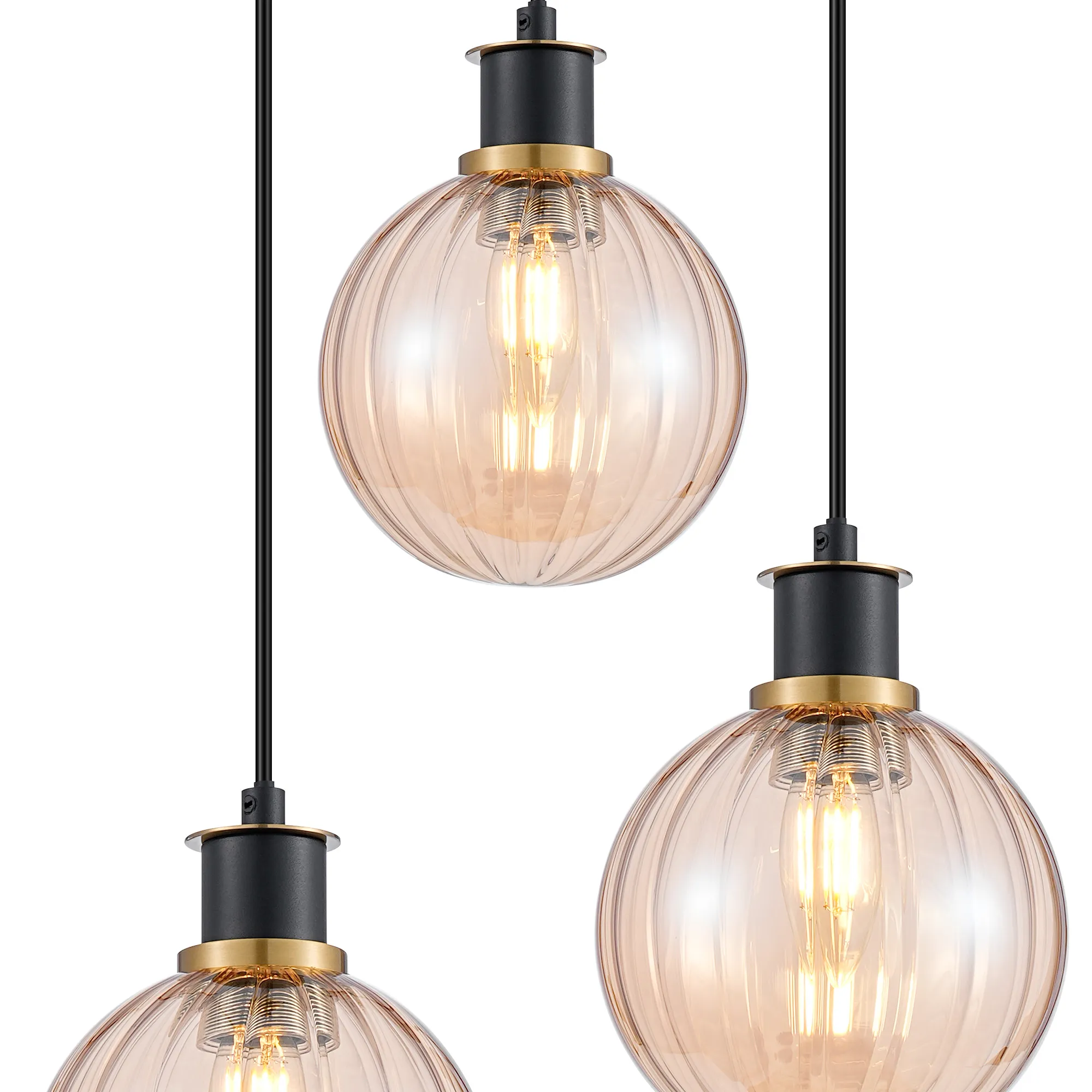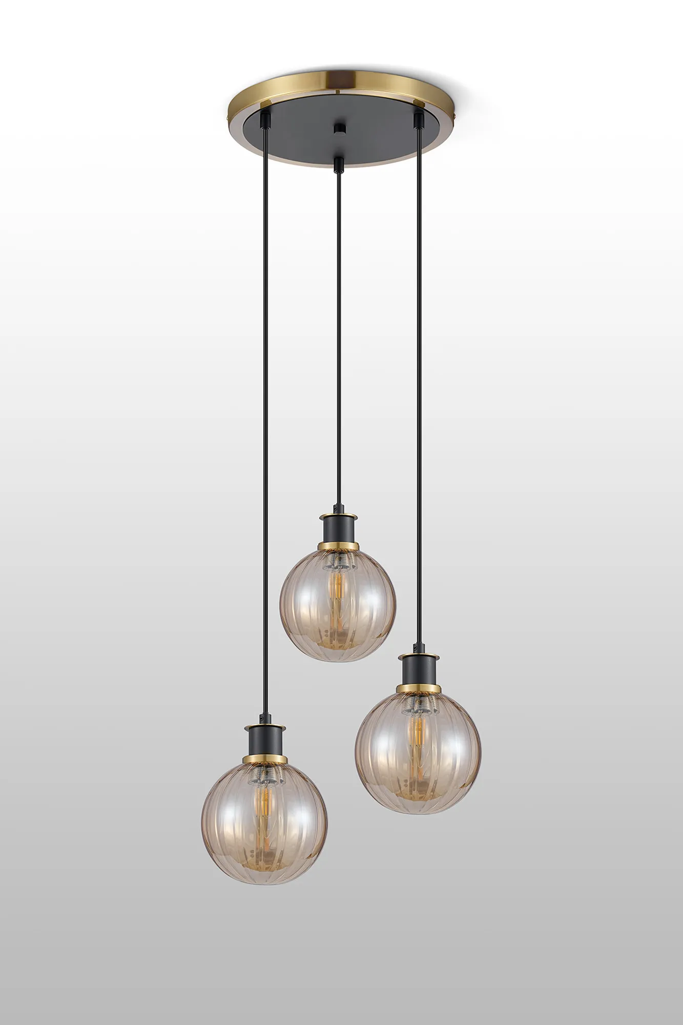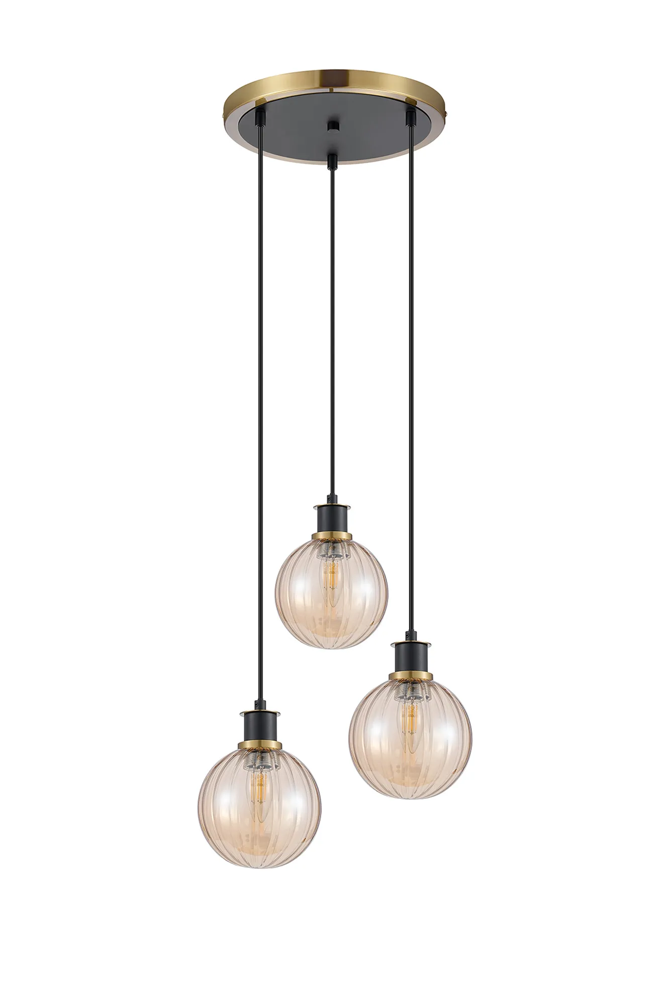 Fernie Table Lamp Touch Switch, 3 Light E14, With 15cm Round Segment Glass Shade Brass, Amber Plated, Satin Black