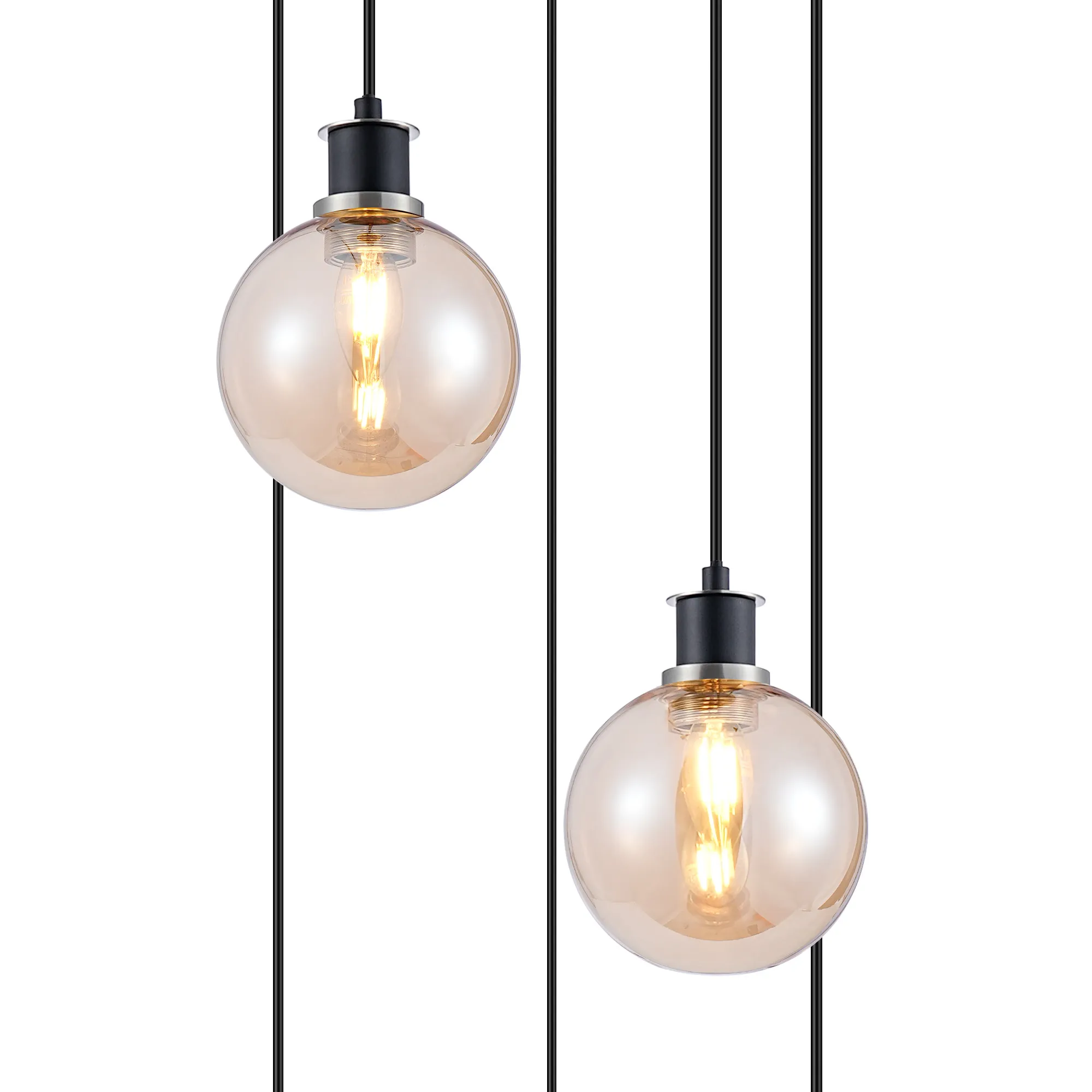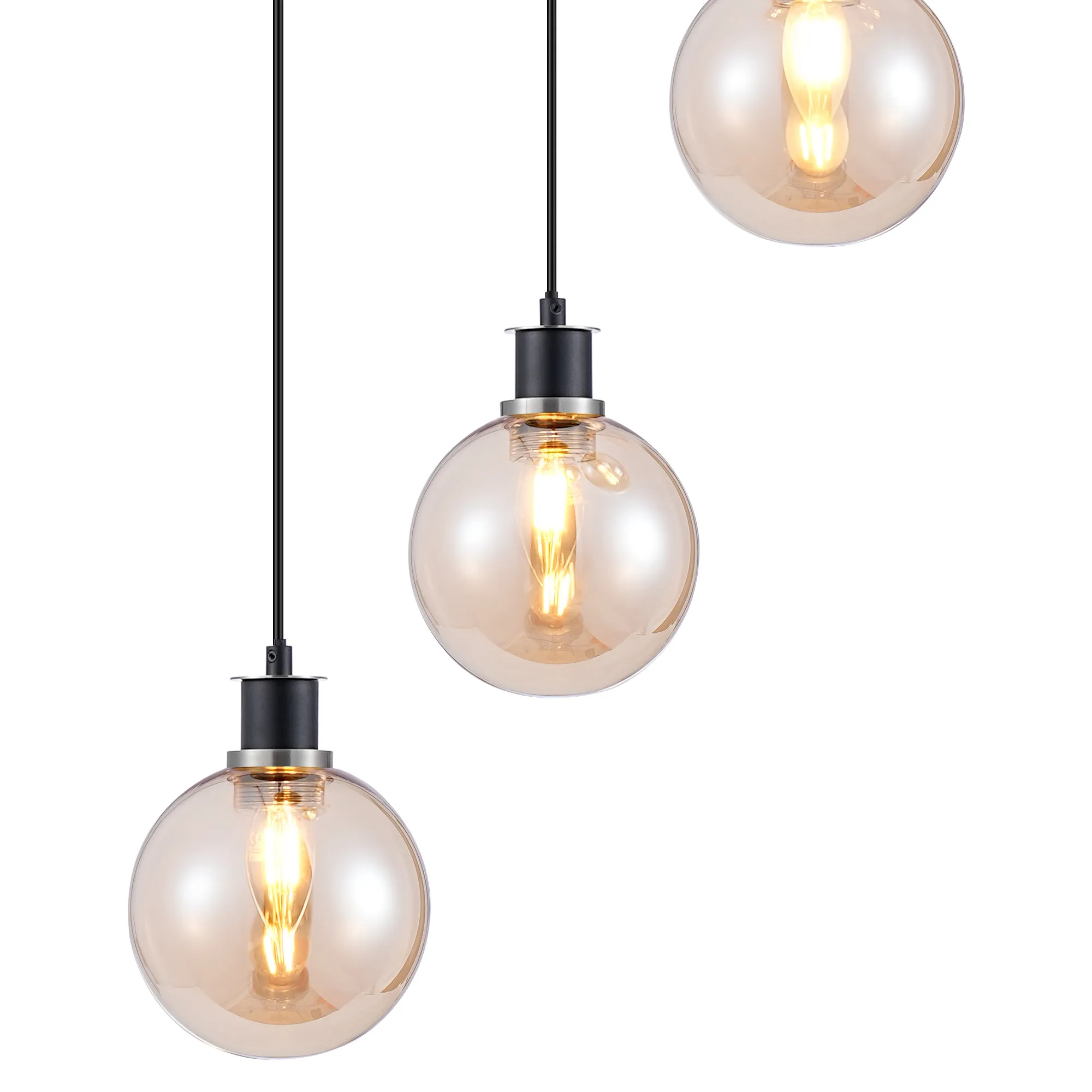 Fernie Table Lamp Touch Switch, 3 Light E14, With 15cm Round Glass Shade Satin Nickel, Amber Plated, Satin Black