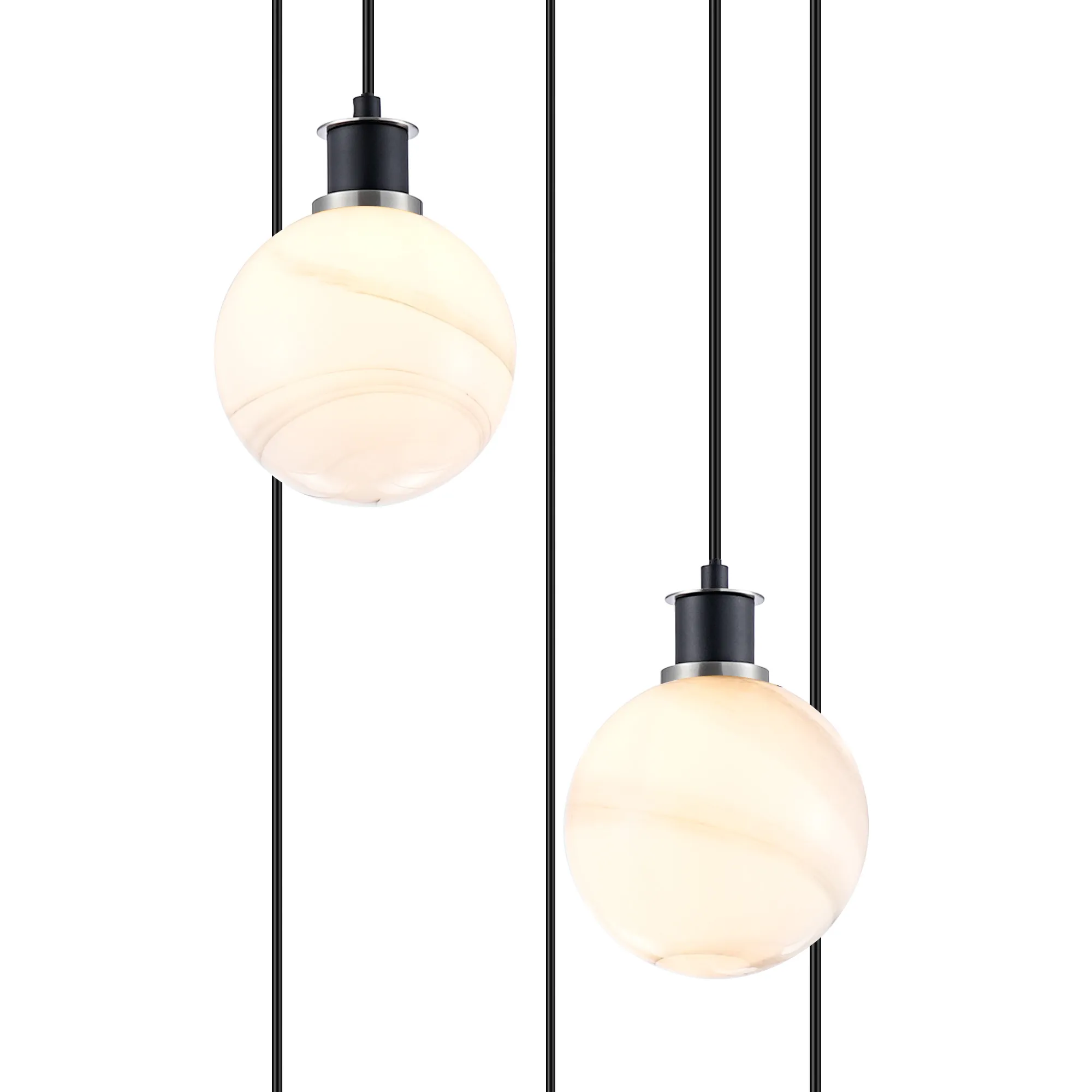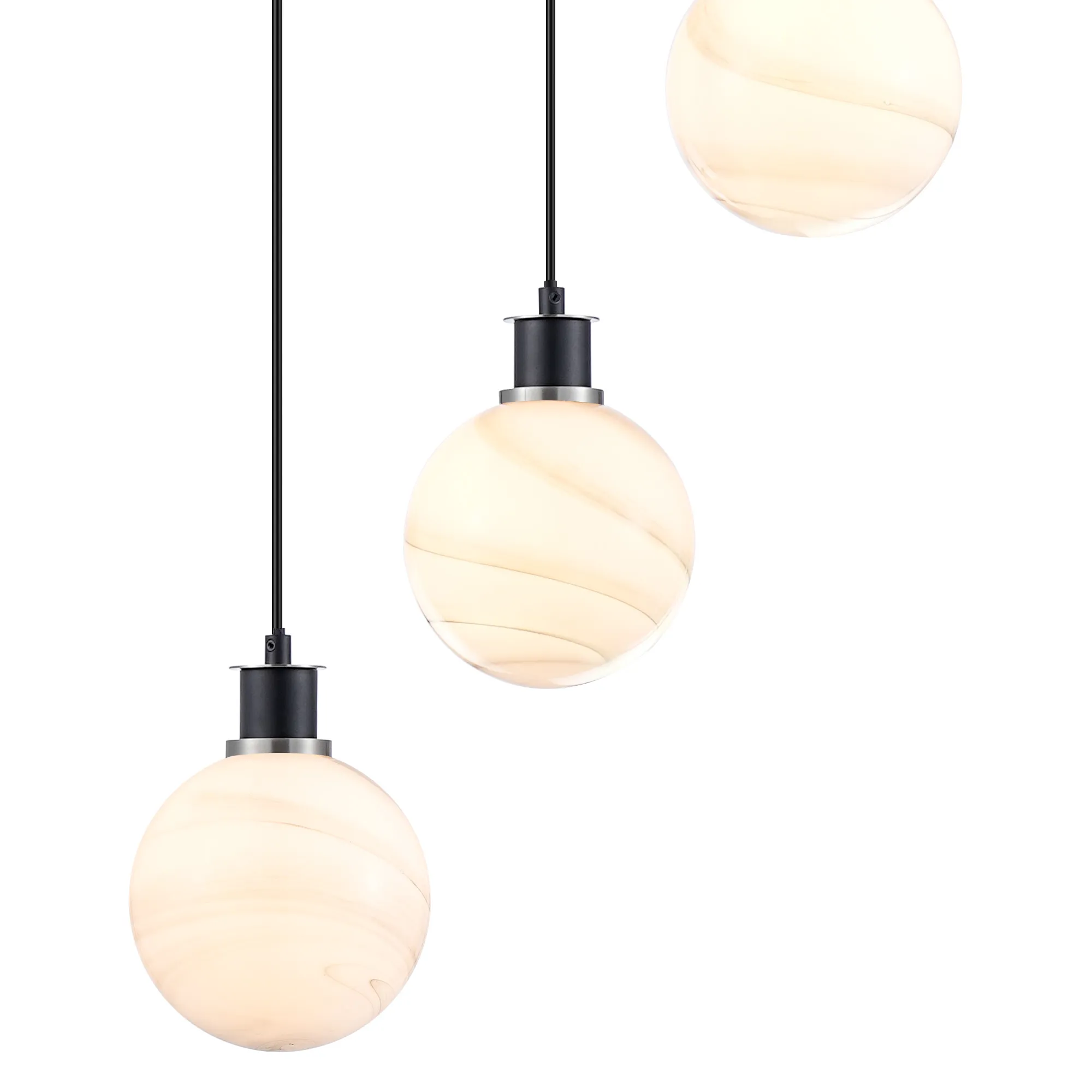 Fernie Table Lamp Touch Switch, 3 Light E14, With 15cm Round Marble Effect Glass Shade Satin Nickel, White, Satin Black