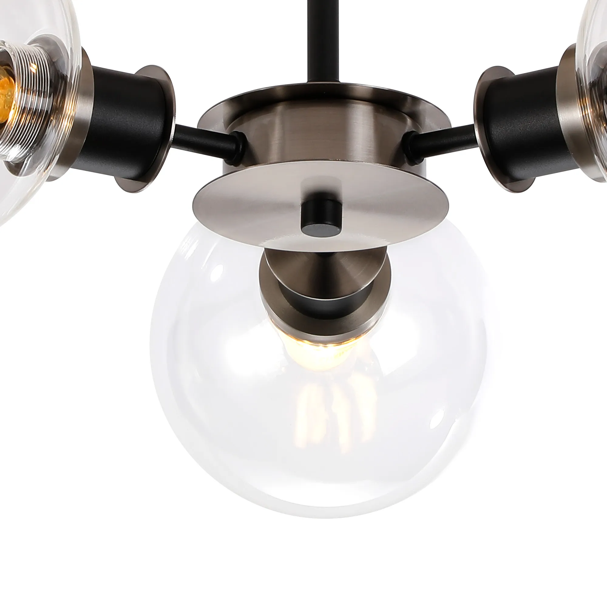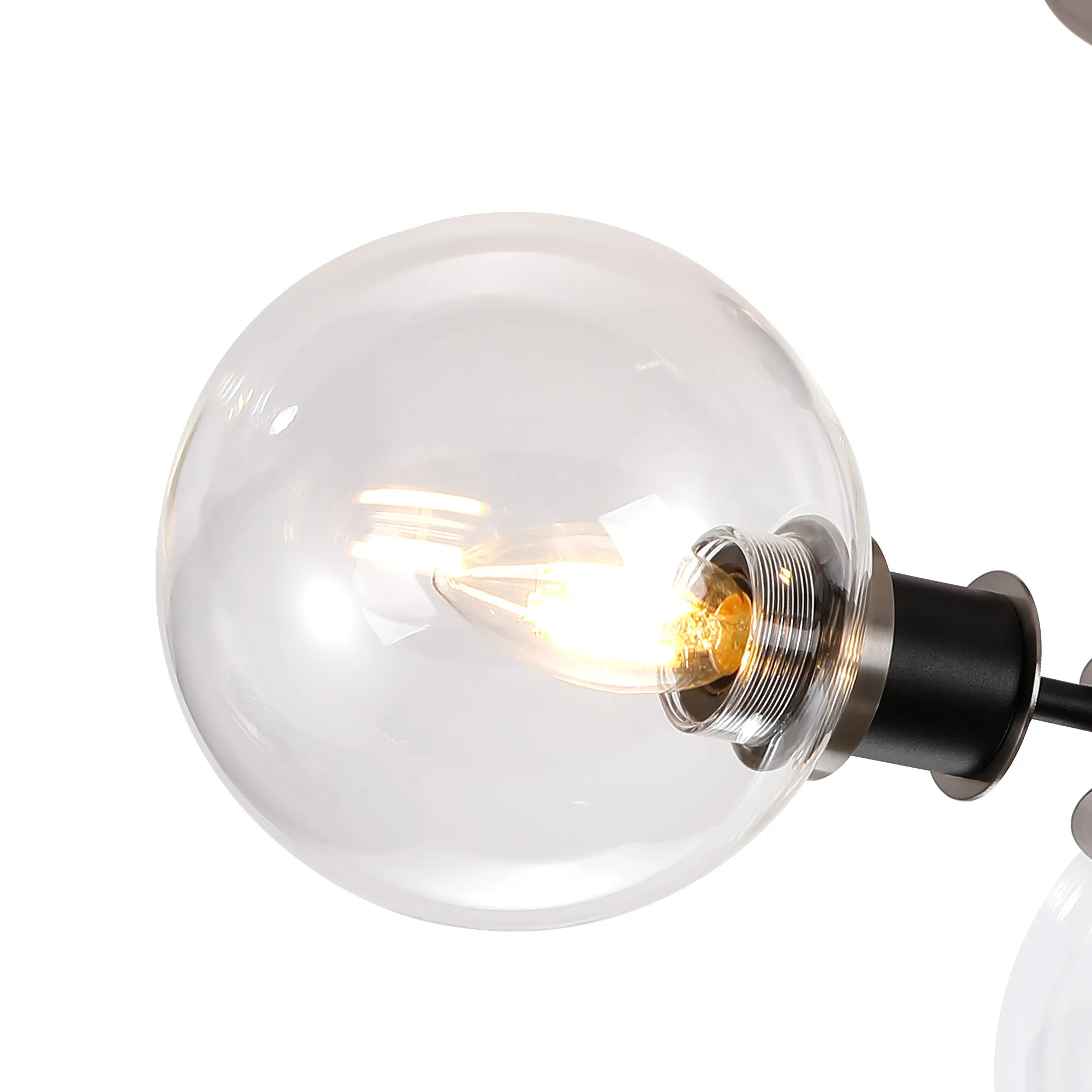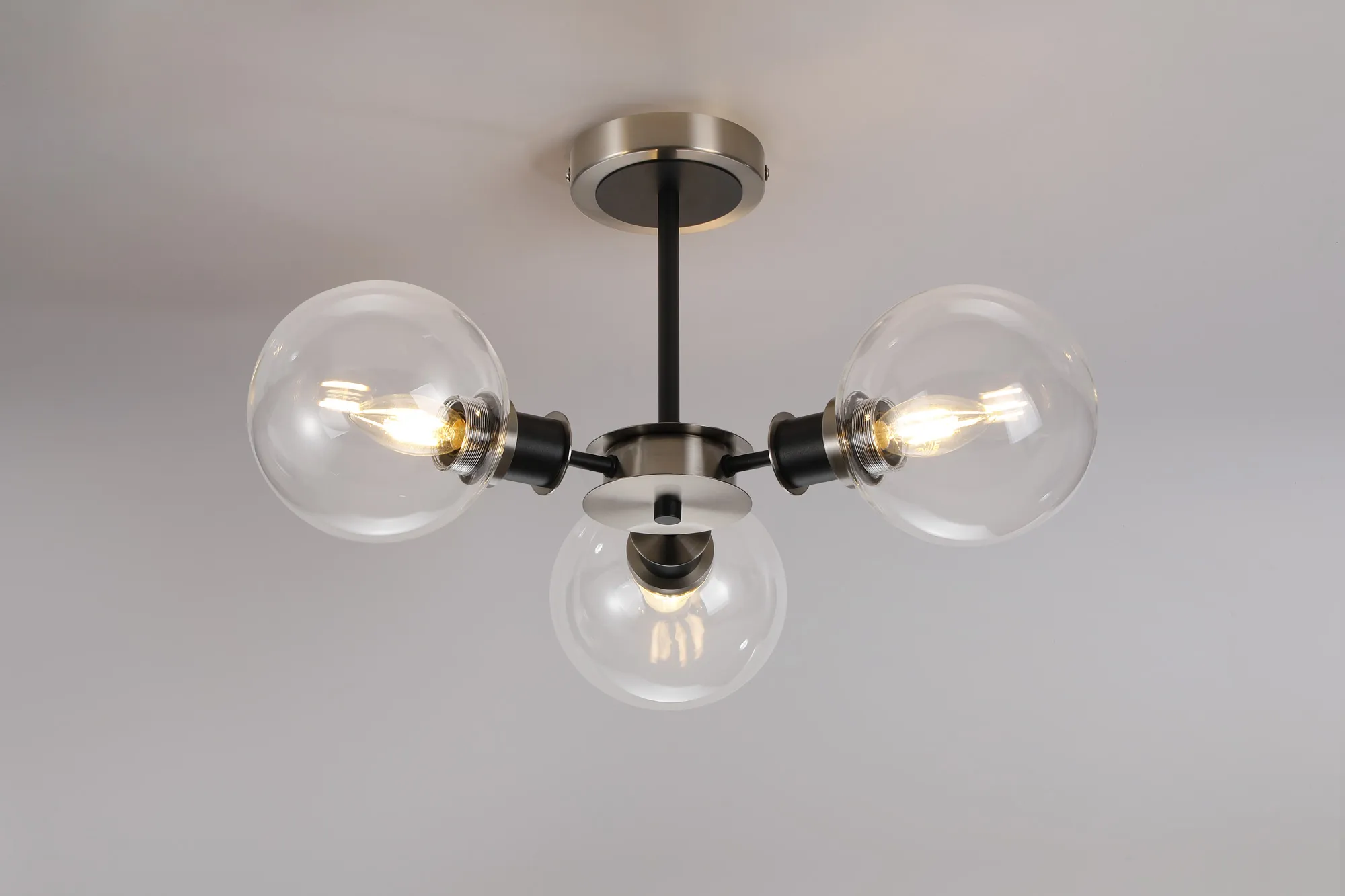 Fernie Table Lamp Touch Switch, 3 Light E14, With 15cm Round Glass Shade Satin Nickel, Clear, Satin Black