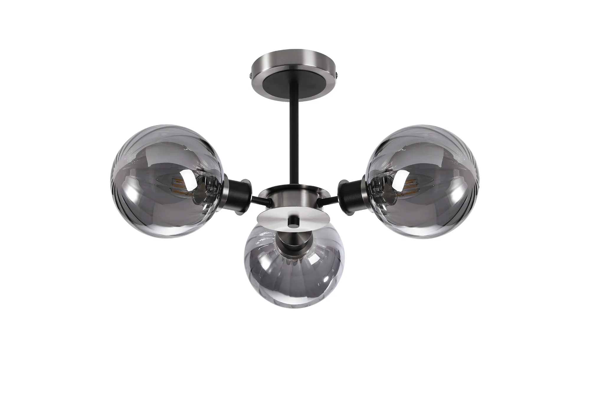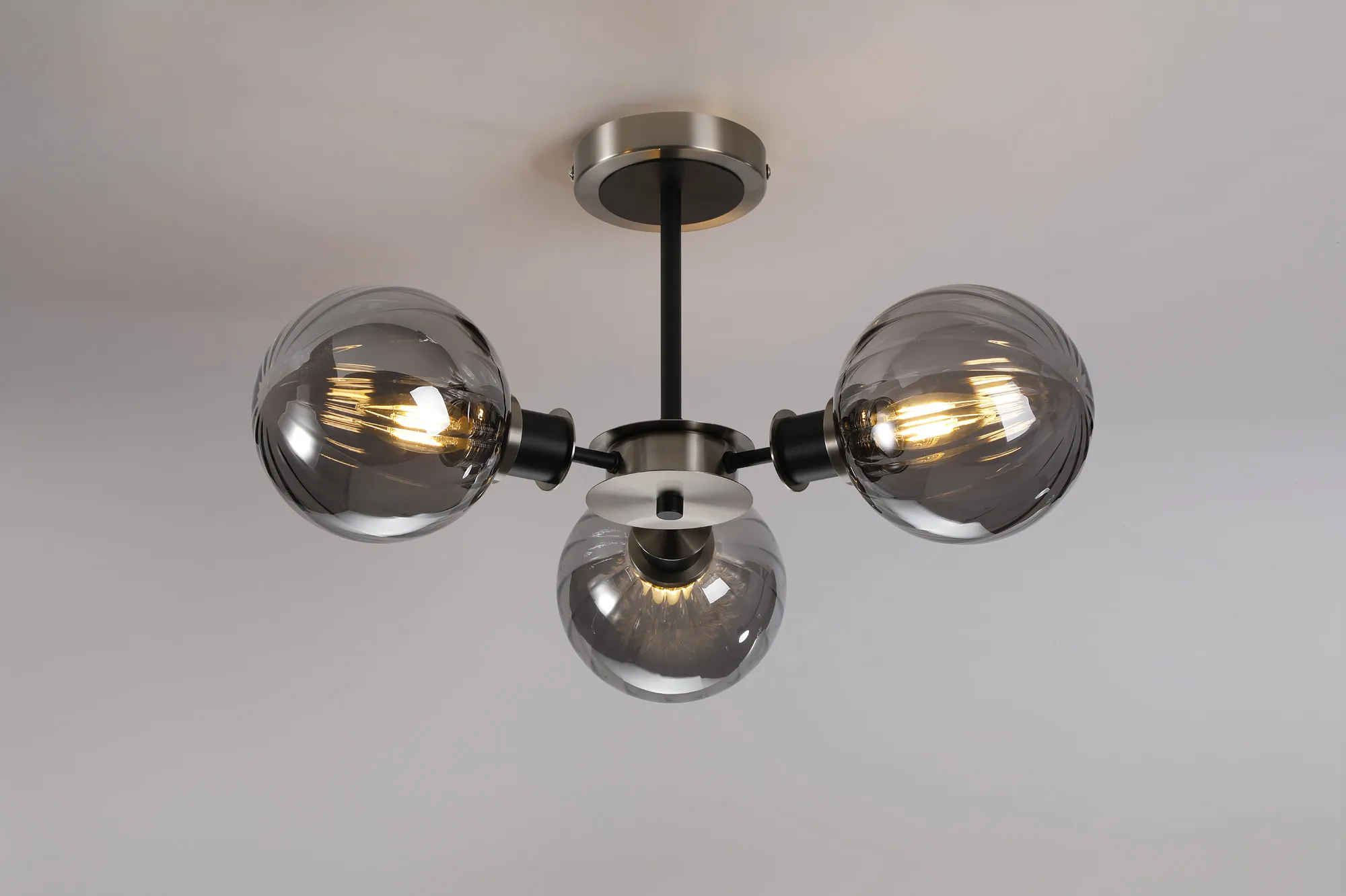 Fernie Table Lamp Touch Switch, 3 Light E14, With 15cm Round Segment Glass Shade Satin Nickel, Smoke Plated, Satin Black