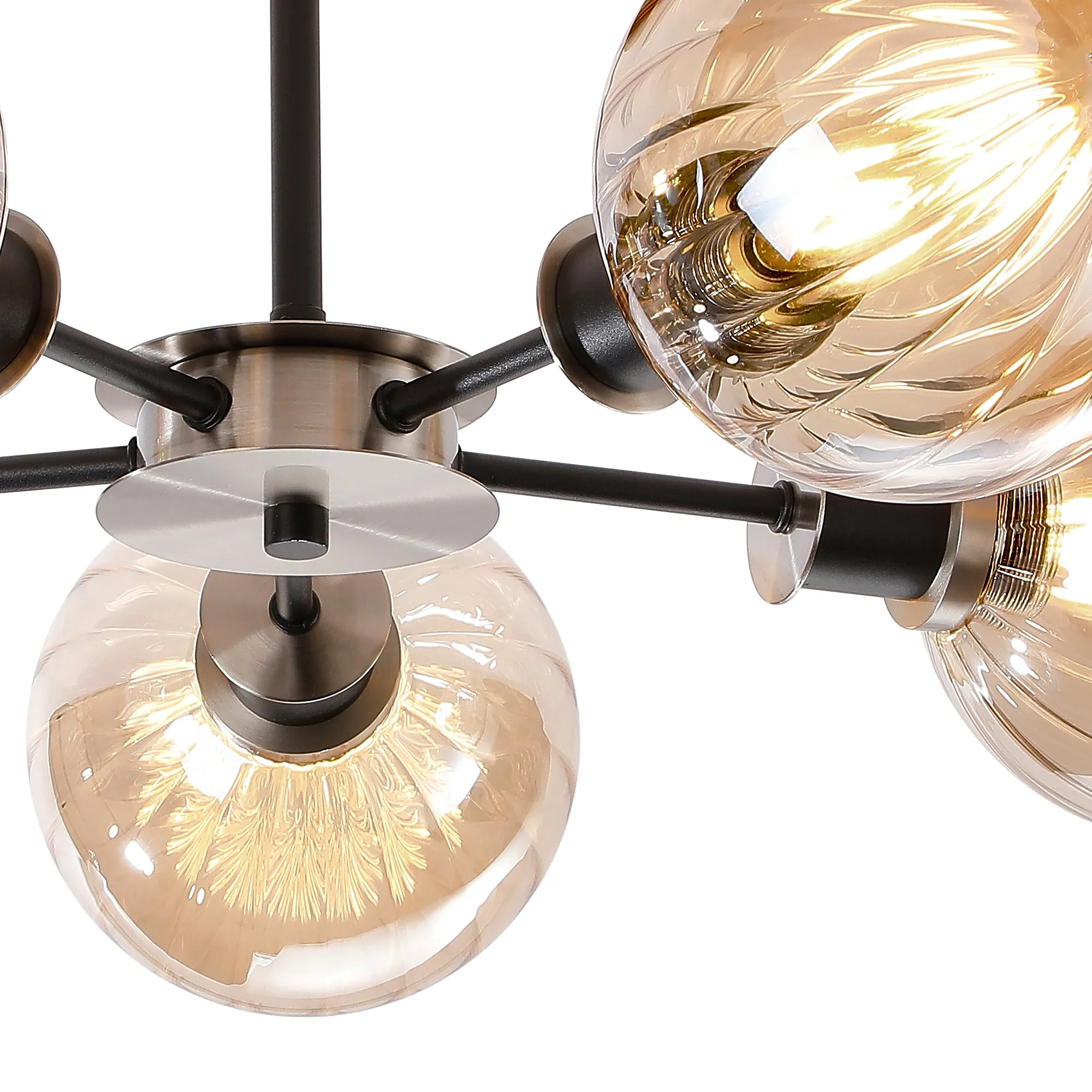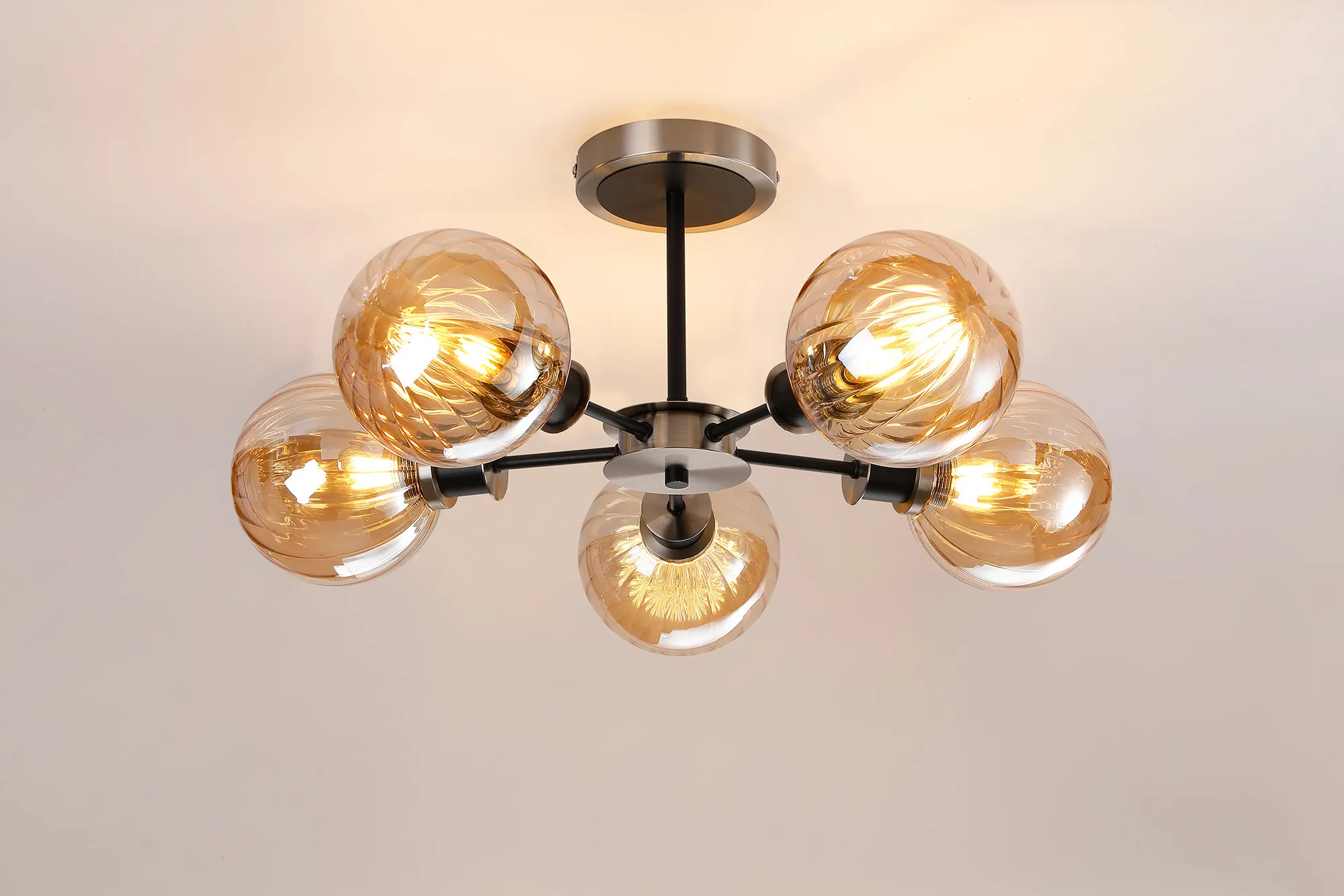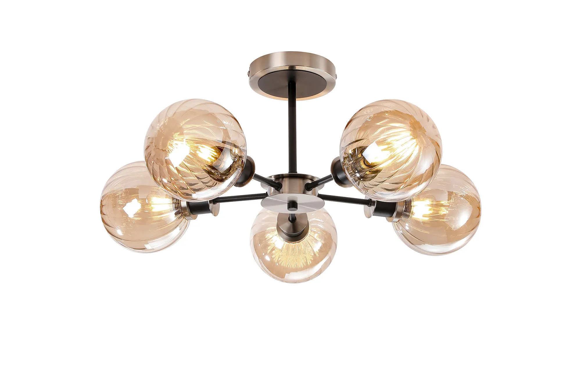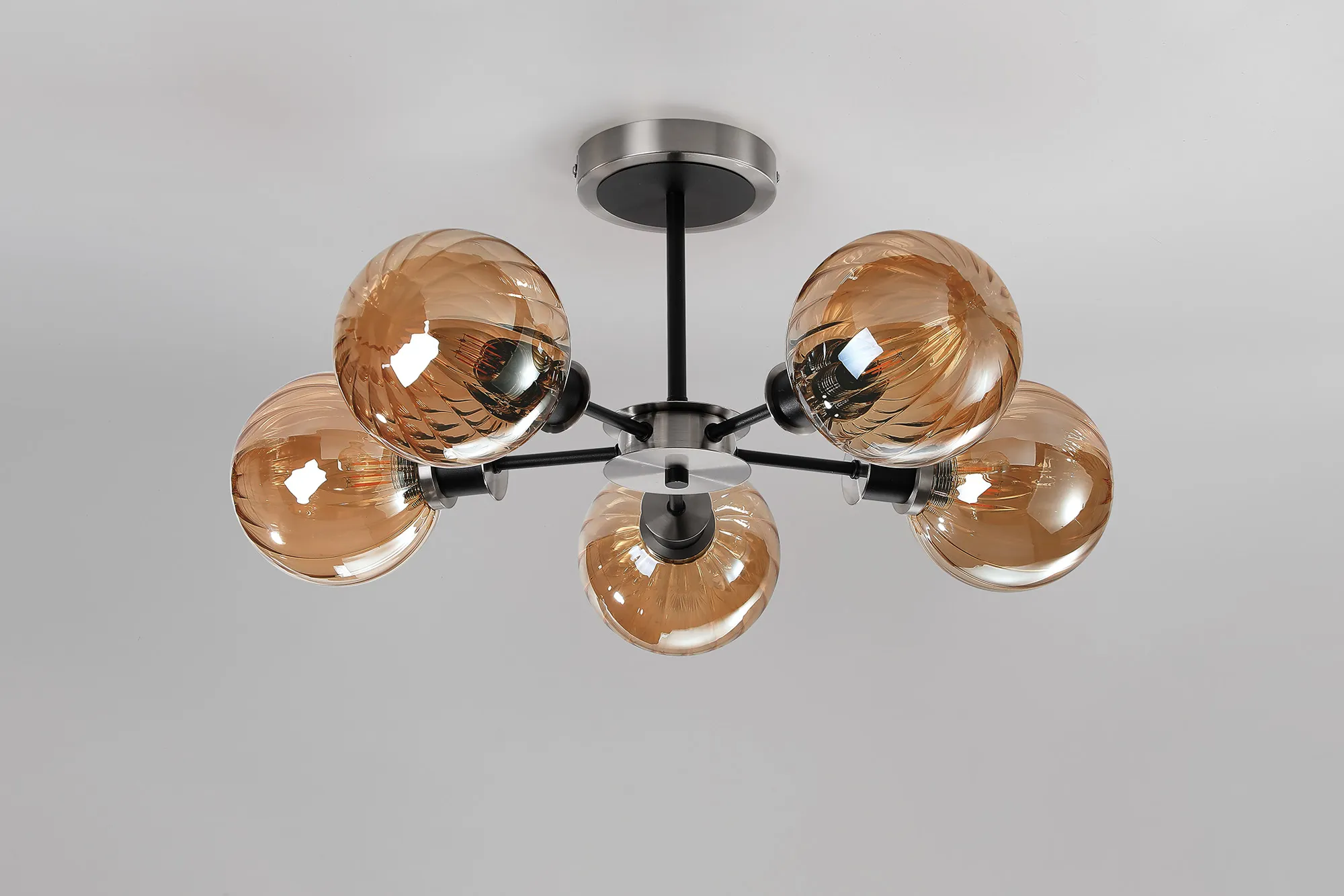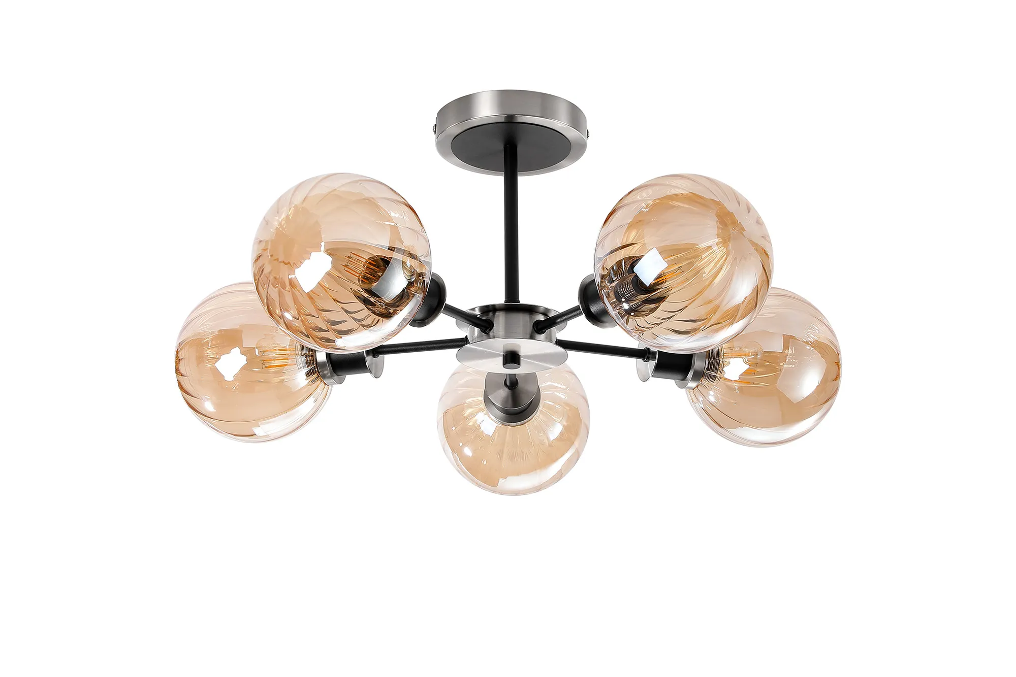 OTHER Fernie Semi Ceiling, 5 x E14 With 15cm Round Segment Glass Shade, Satin Nickel, Amber Plated & Satin Black