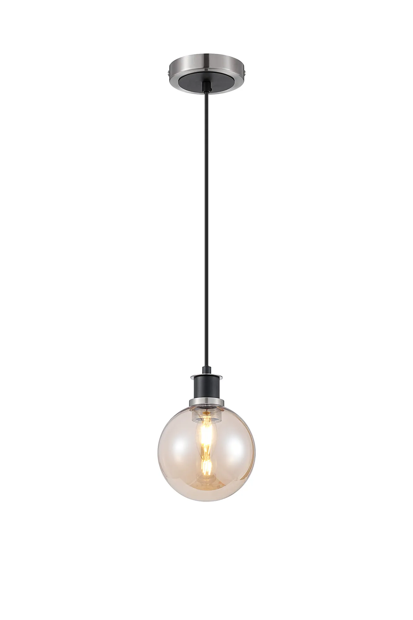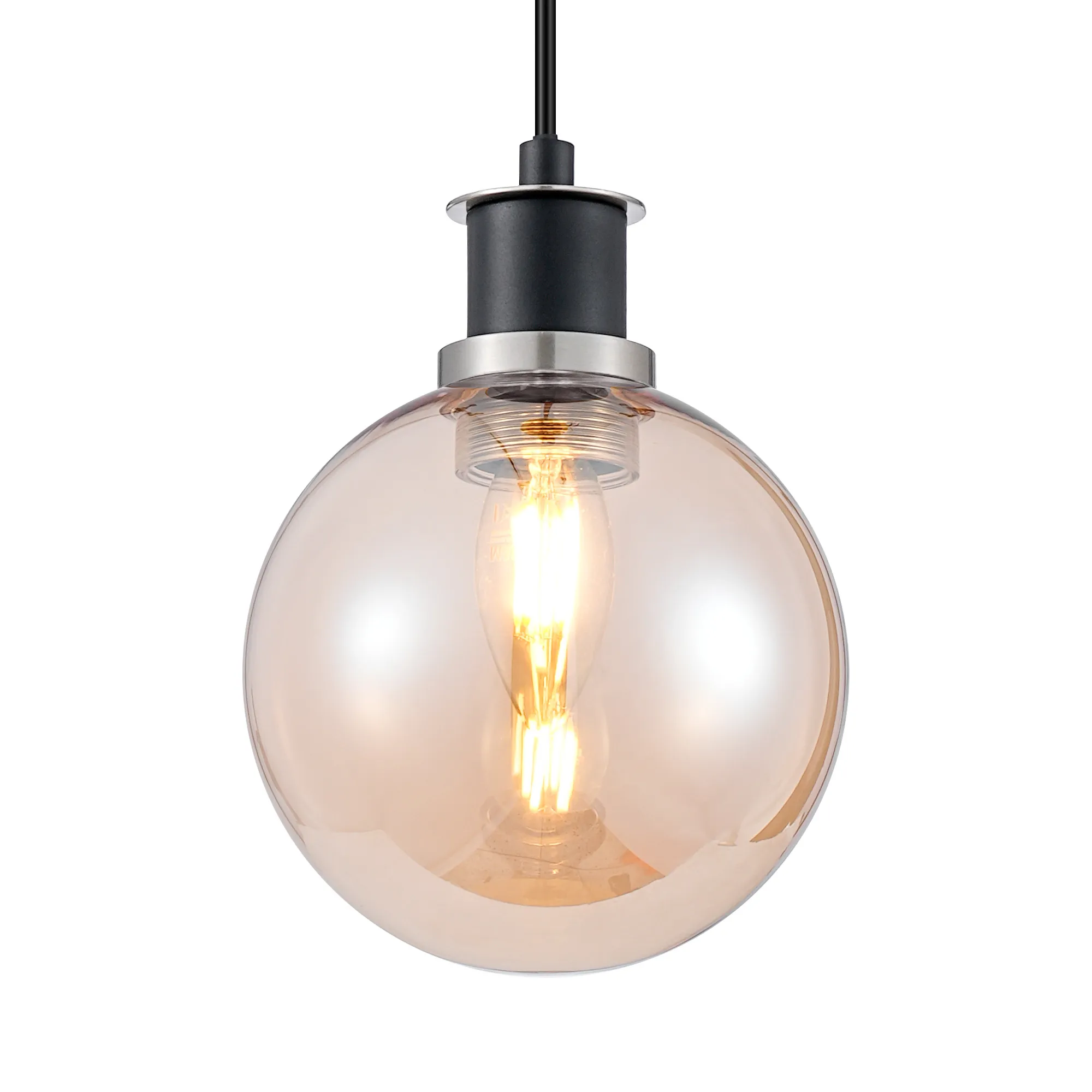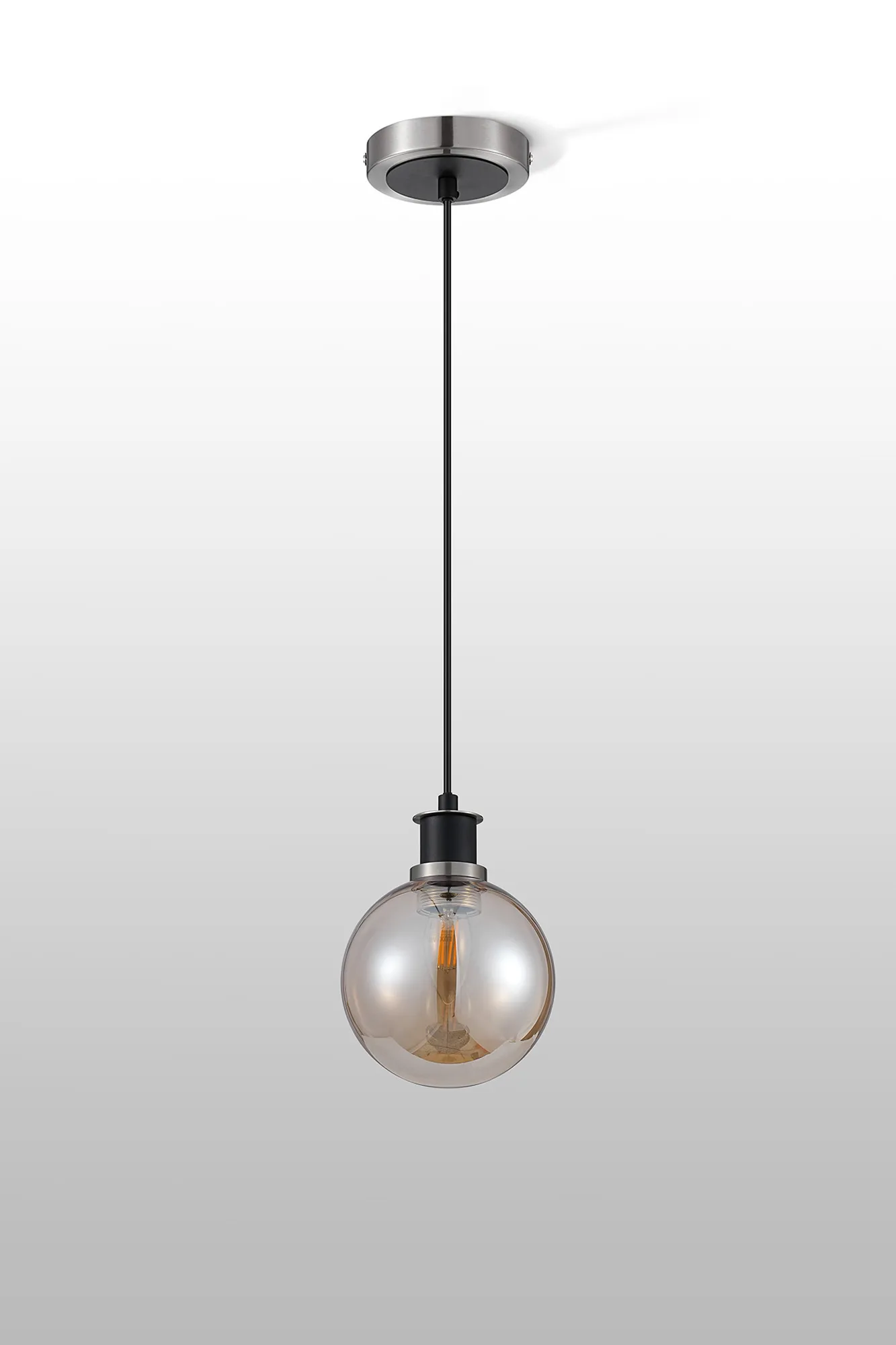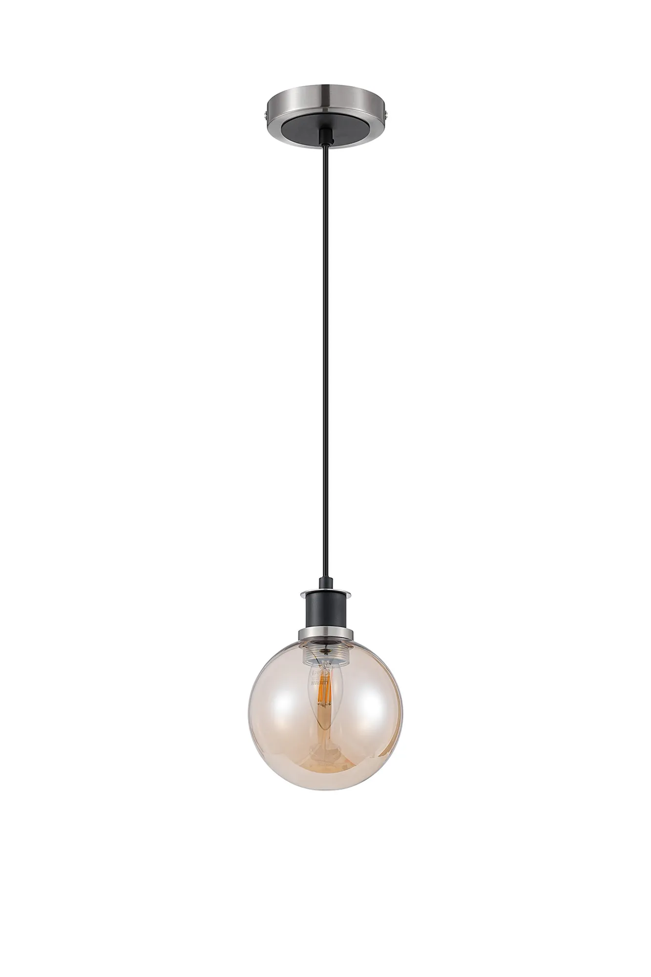 OTHER Fernie 1.3m Pendant, 1 x E14 With 15cm Round Glass Shade, Satin Nickel, Amber Plated & Satin Black