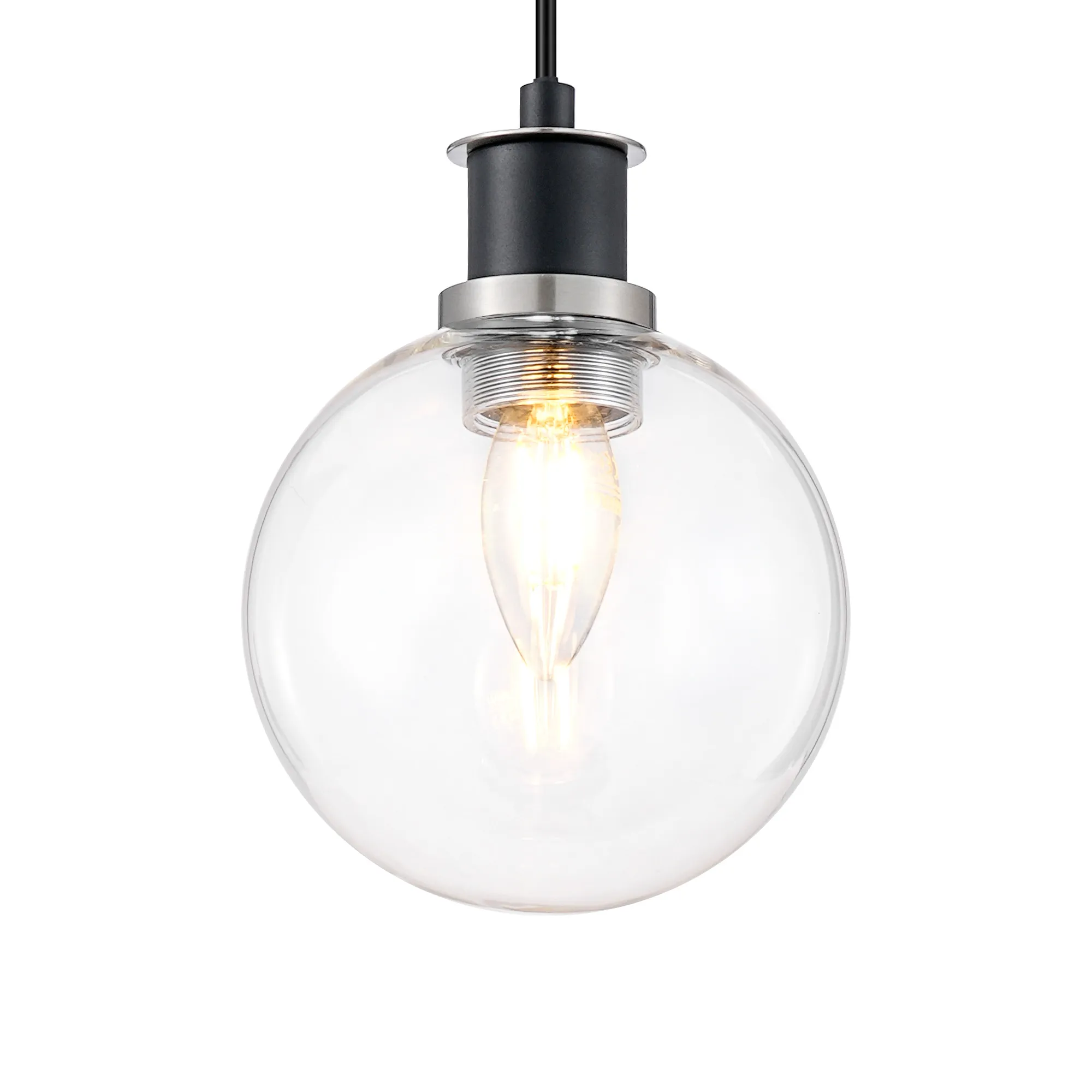 Fernie Table Lamp Touch Switch, 3 Light E14, With 15cm Round Glass Shade Satin Nickel, Clear, Satin Black