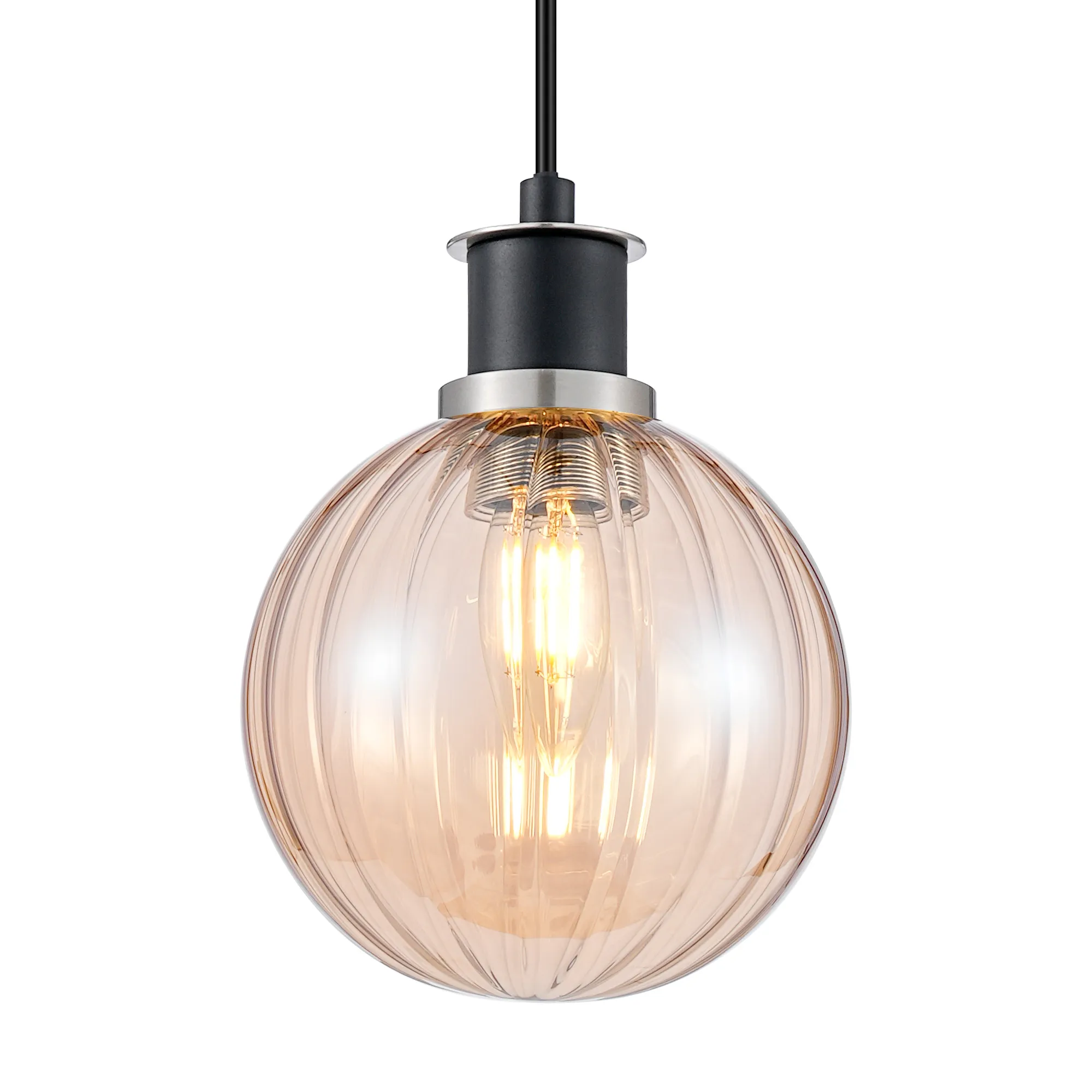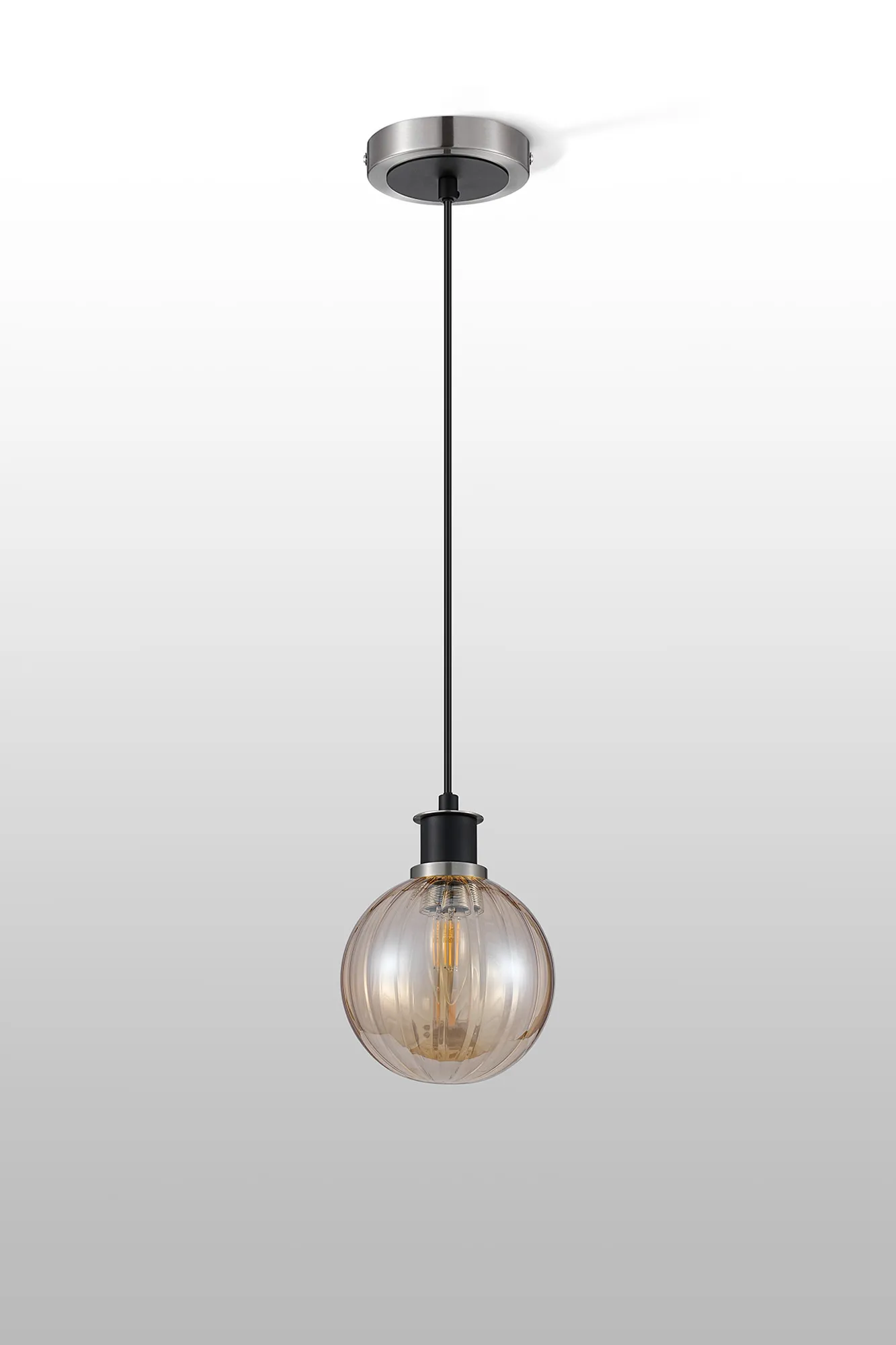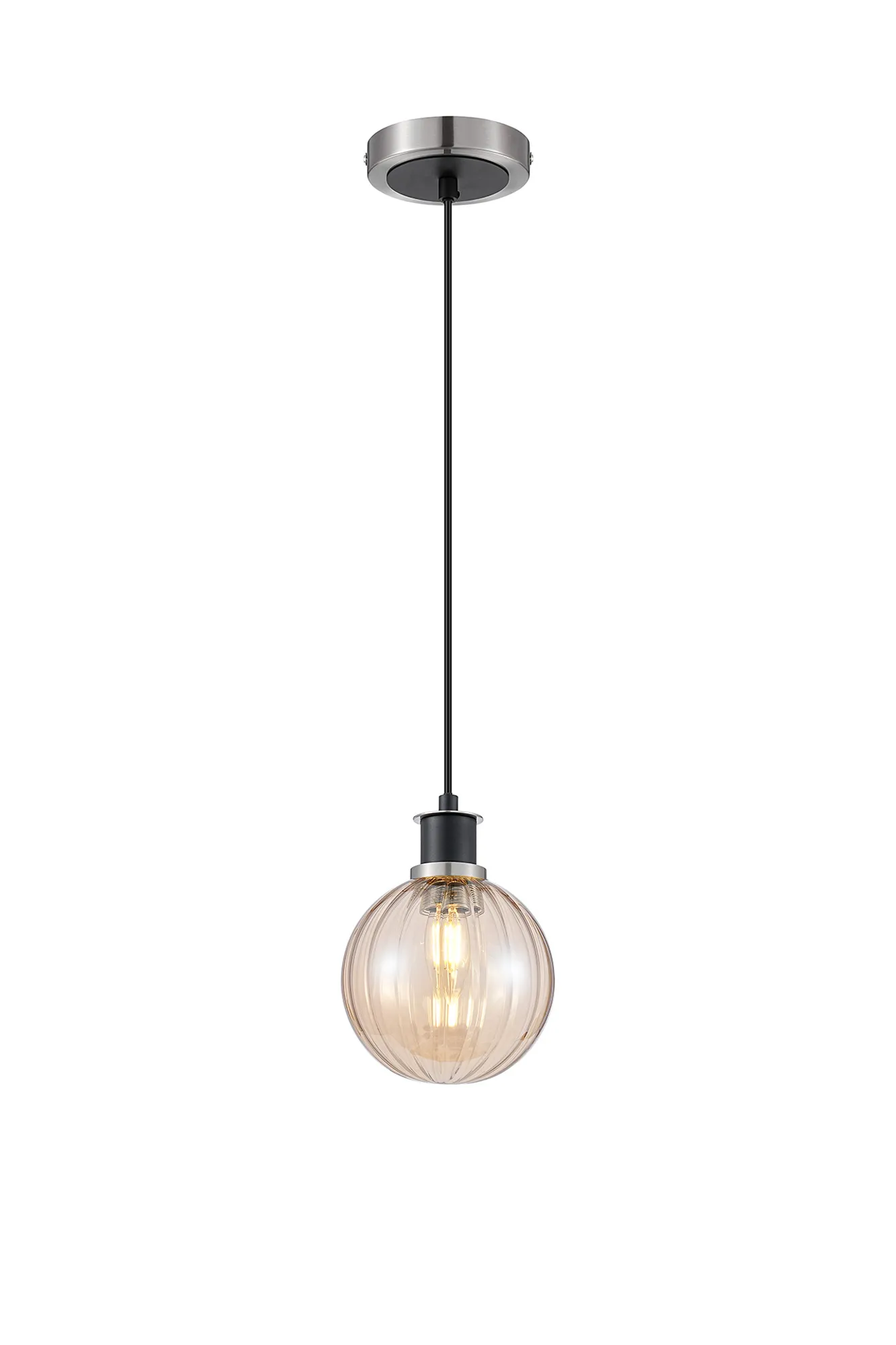 OTHER Fernie 1.3m Pendant, 1 x E14 With 15cm Round Segment Glass Shade, Satin Nickel, Amber Plated & Satin Black