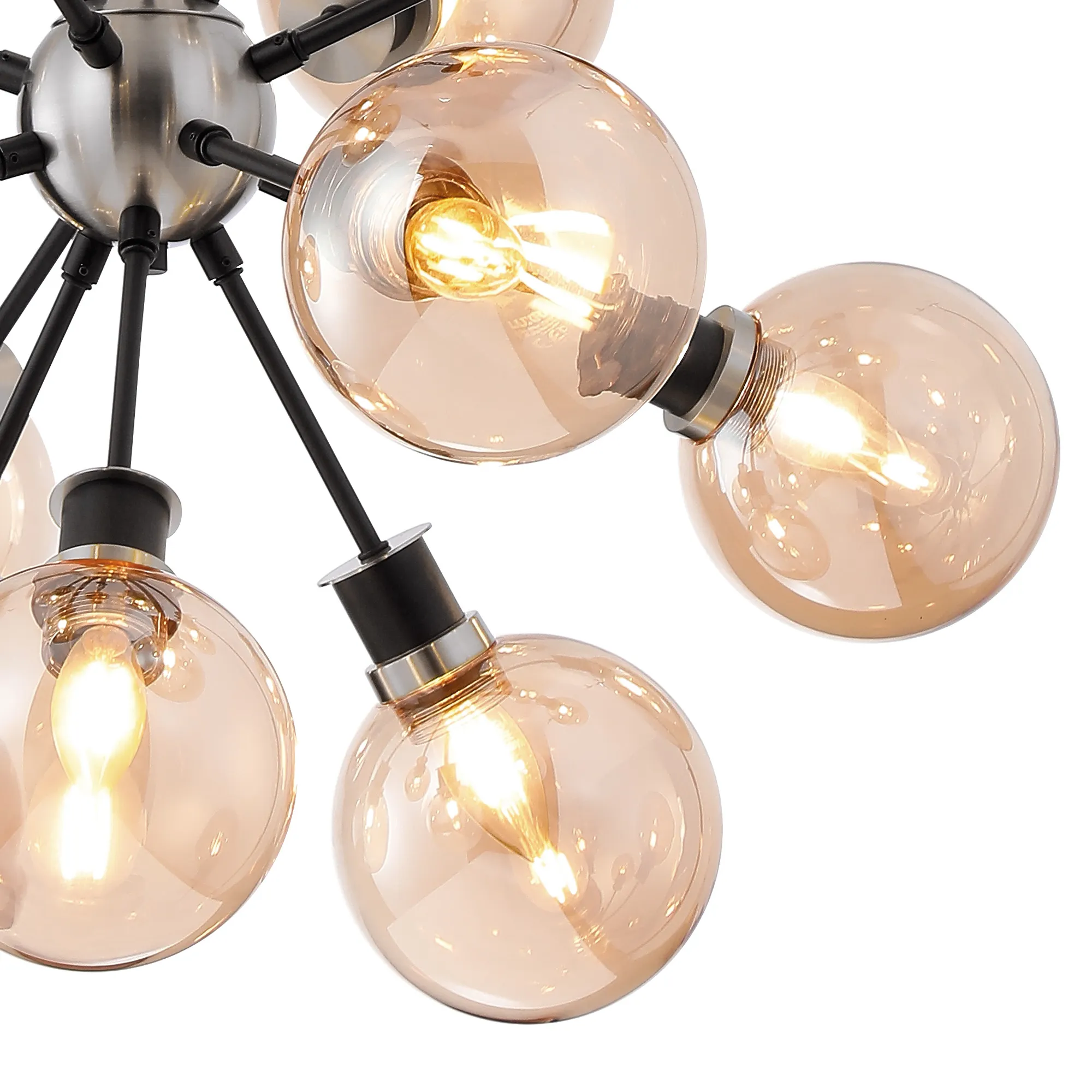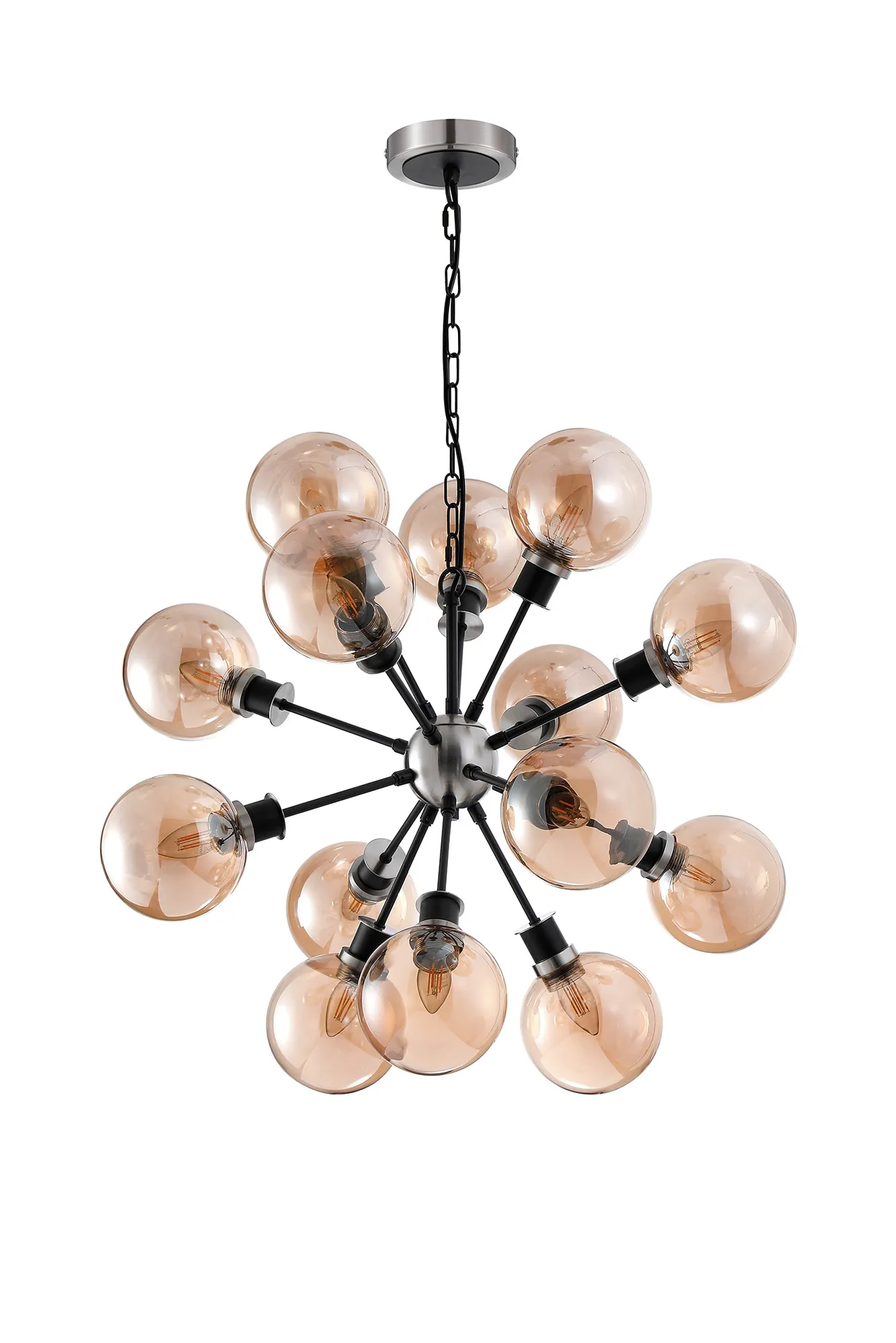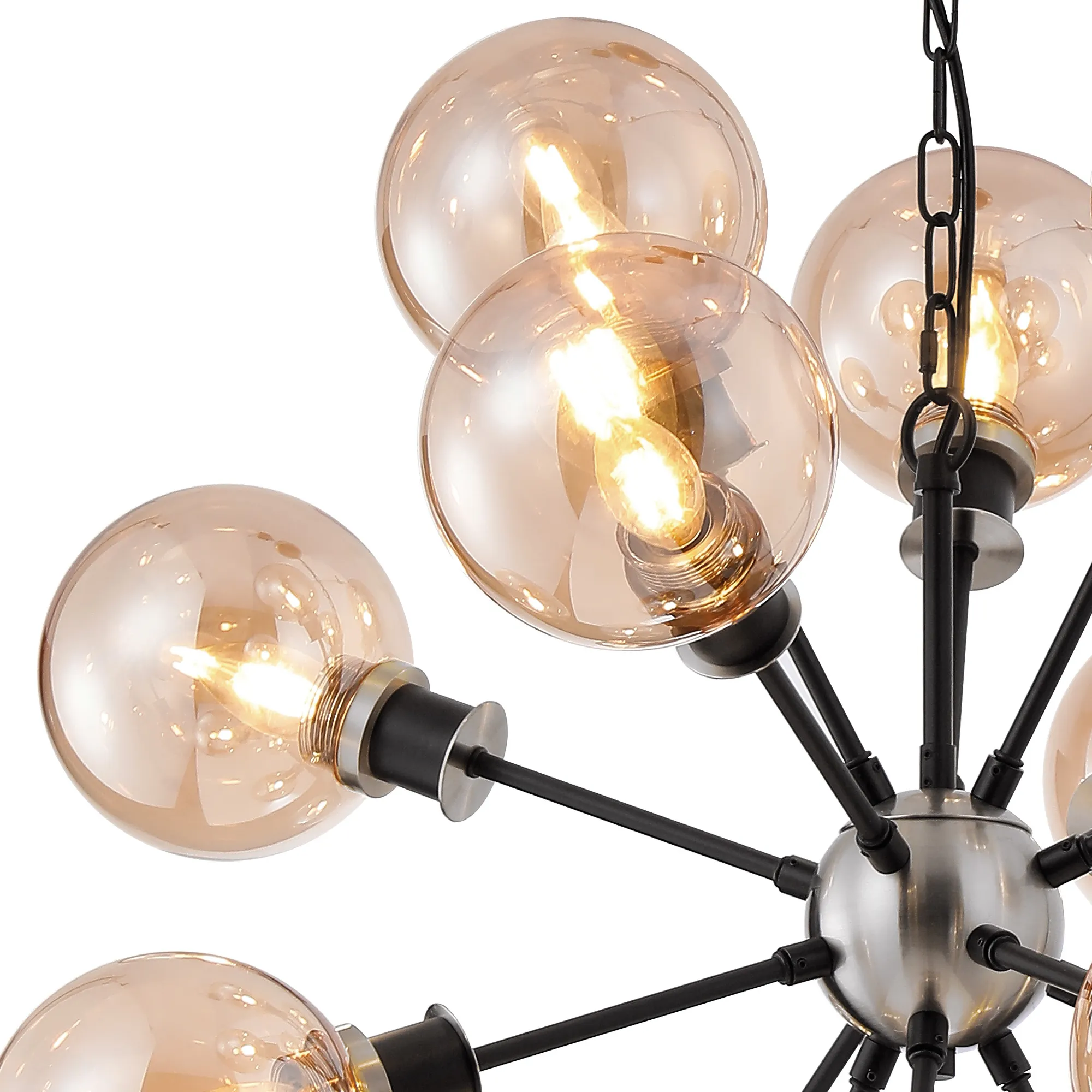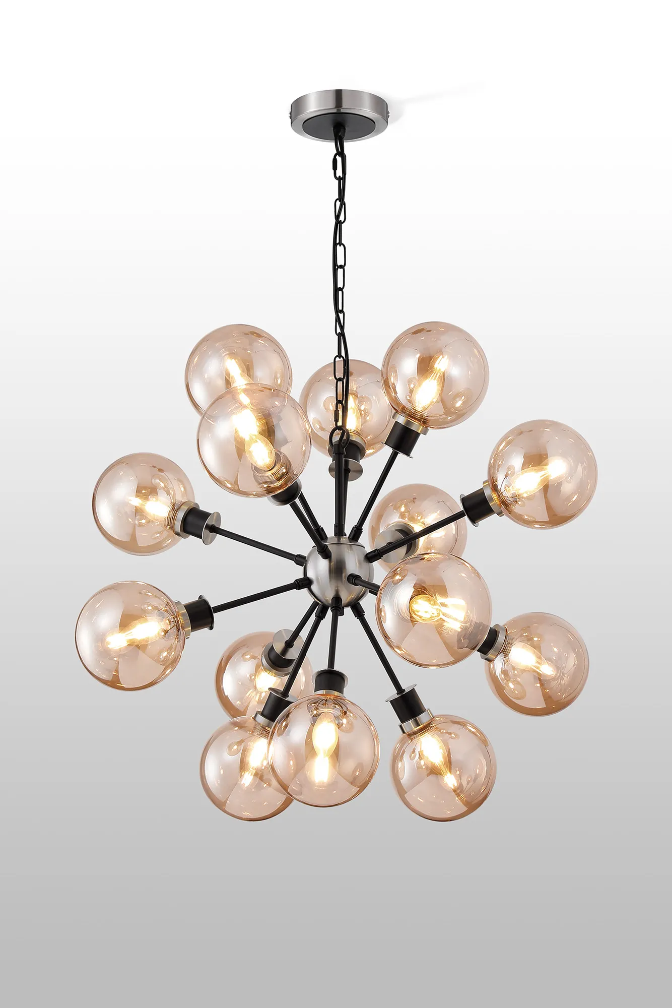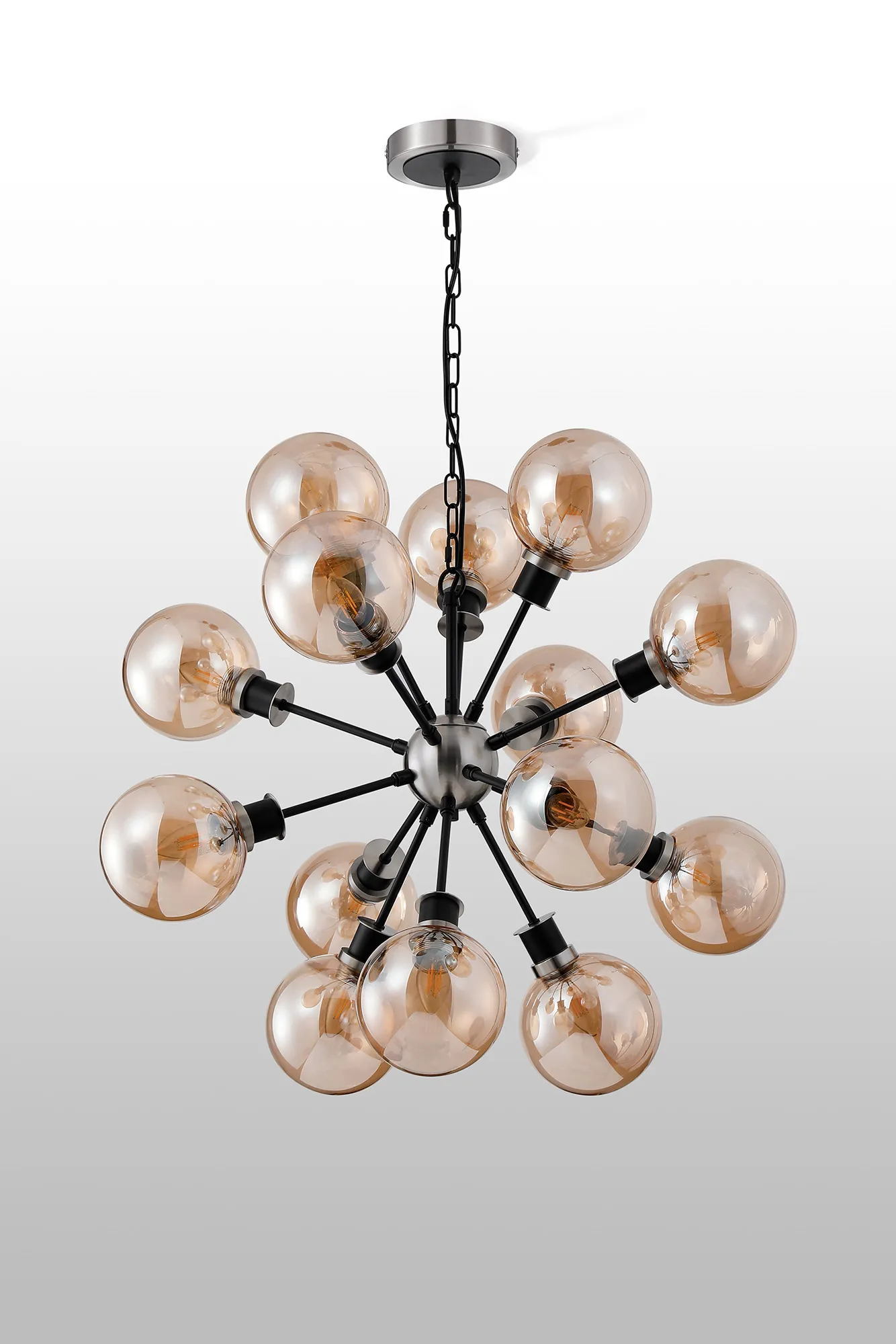 Fernie Table Lamp Touch Switch, 3 Light E14, With 15cm Round Glass Shade Satin Nickel, Amber Plated, Satin Black