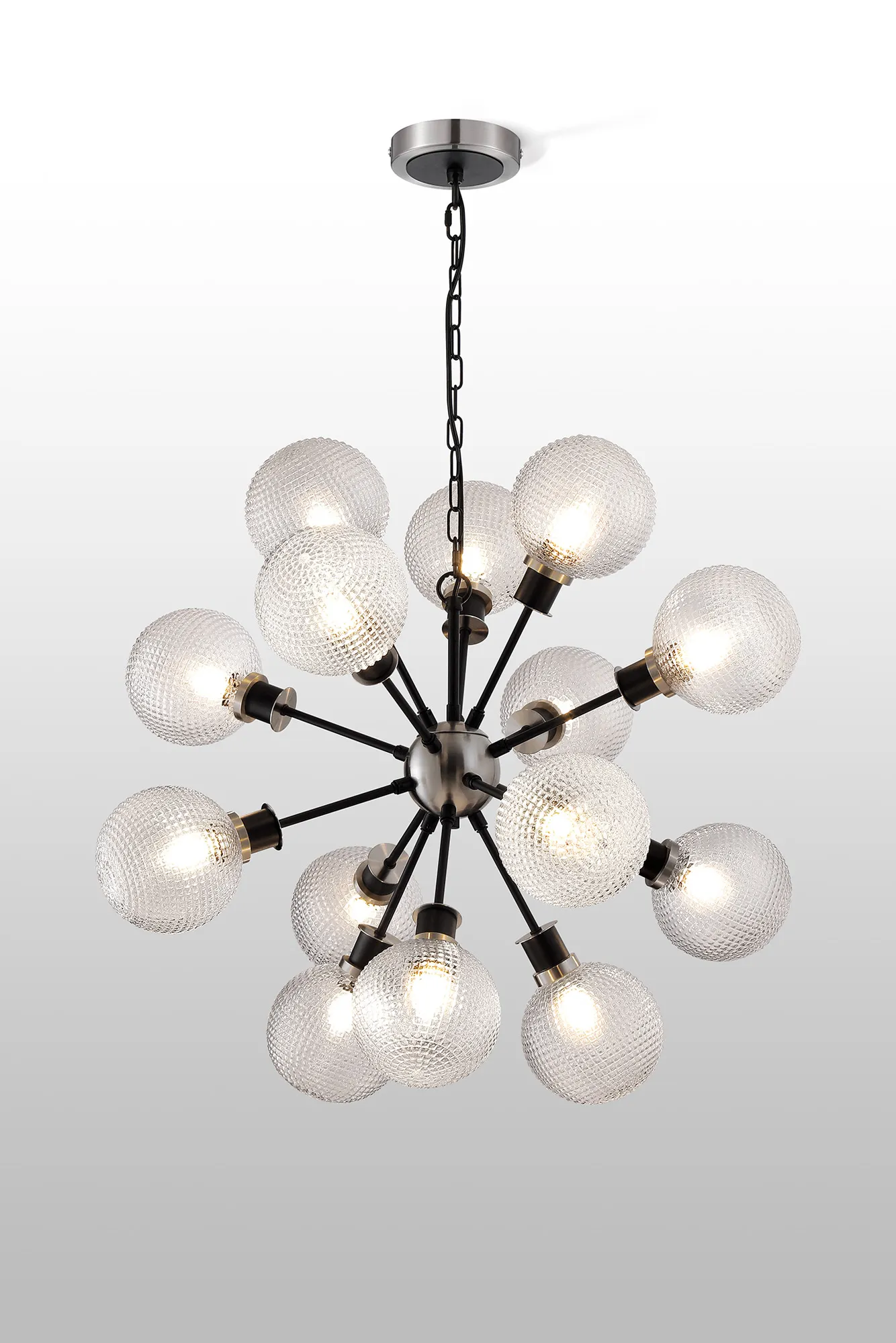 The Fernie collection offers a sophisticated range of E14 lighting options, distinguished by elegant dual-tone colour finishes. Designed with versatility in mind, the collection allows you to create a personalised lighting setup by pairing fixtures with a selection of carefully crafted Fernie glass shades. Each round glass piece features a unique pattern, showcasing finishes such as smooth marble, crackled surfaces, or crumpled textures that add visual interest and depth. The coordinated design between the fixtures and glass ensures a cohesive and customisable lighting solution, making it easy to tailor each piece to suit your individual style and space.