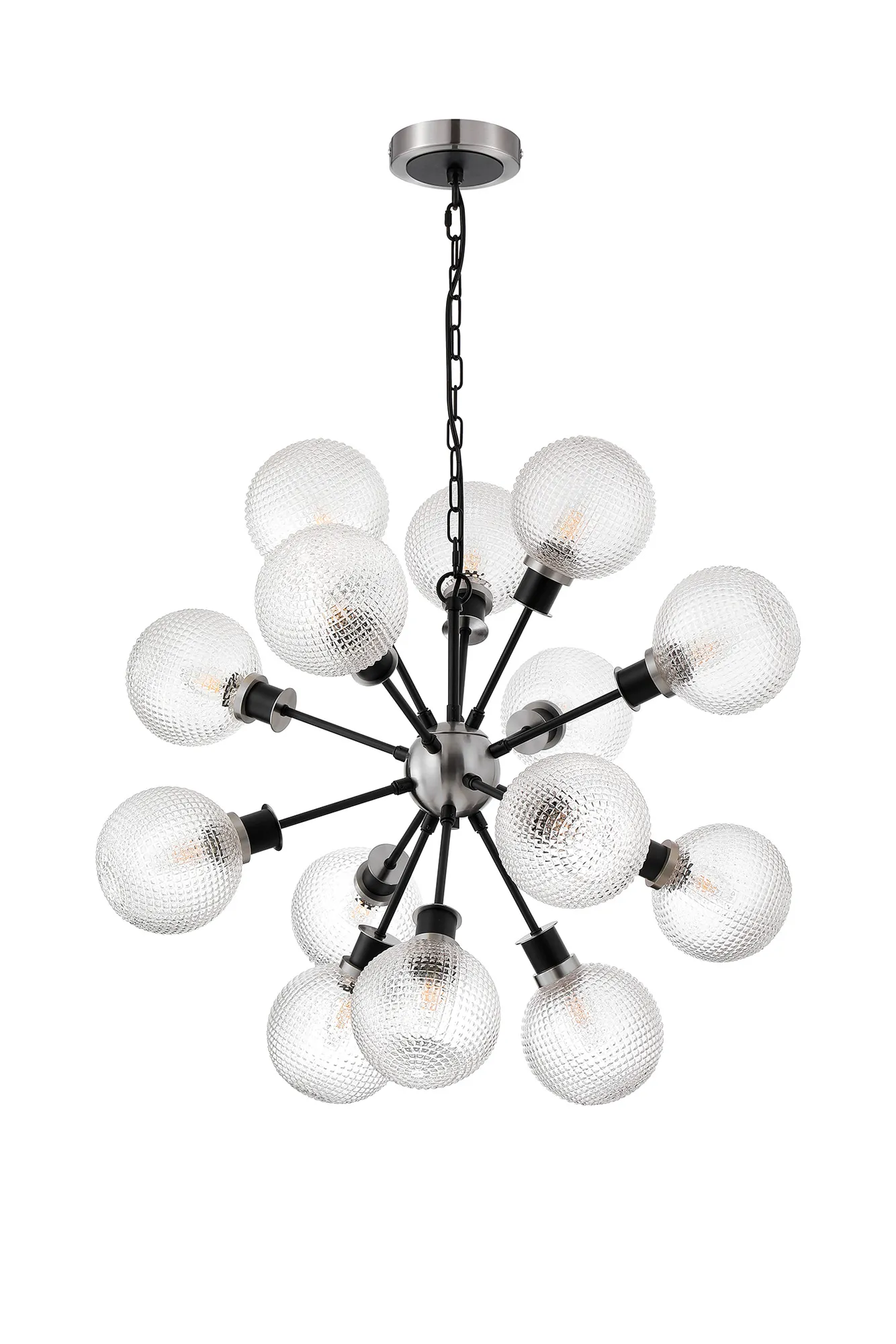 Fernie Table Lamp Touch Switch, 3 Light E14, With 15cm Round Textured Diamond Pattern Glass Shade Satin Nickel, Clear, Satin Black