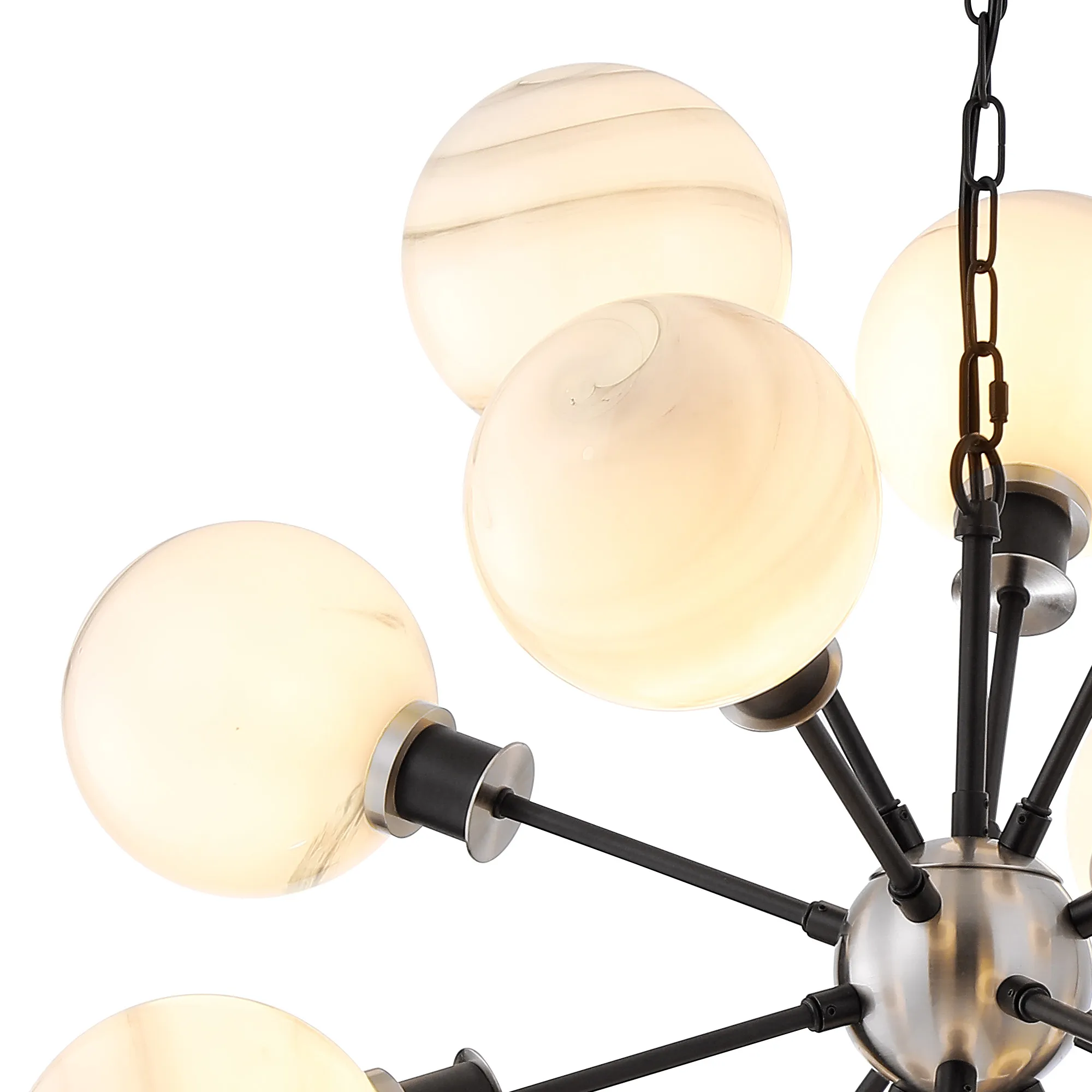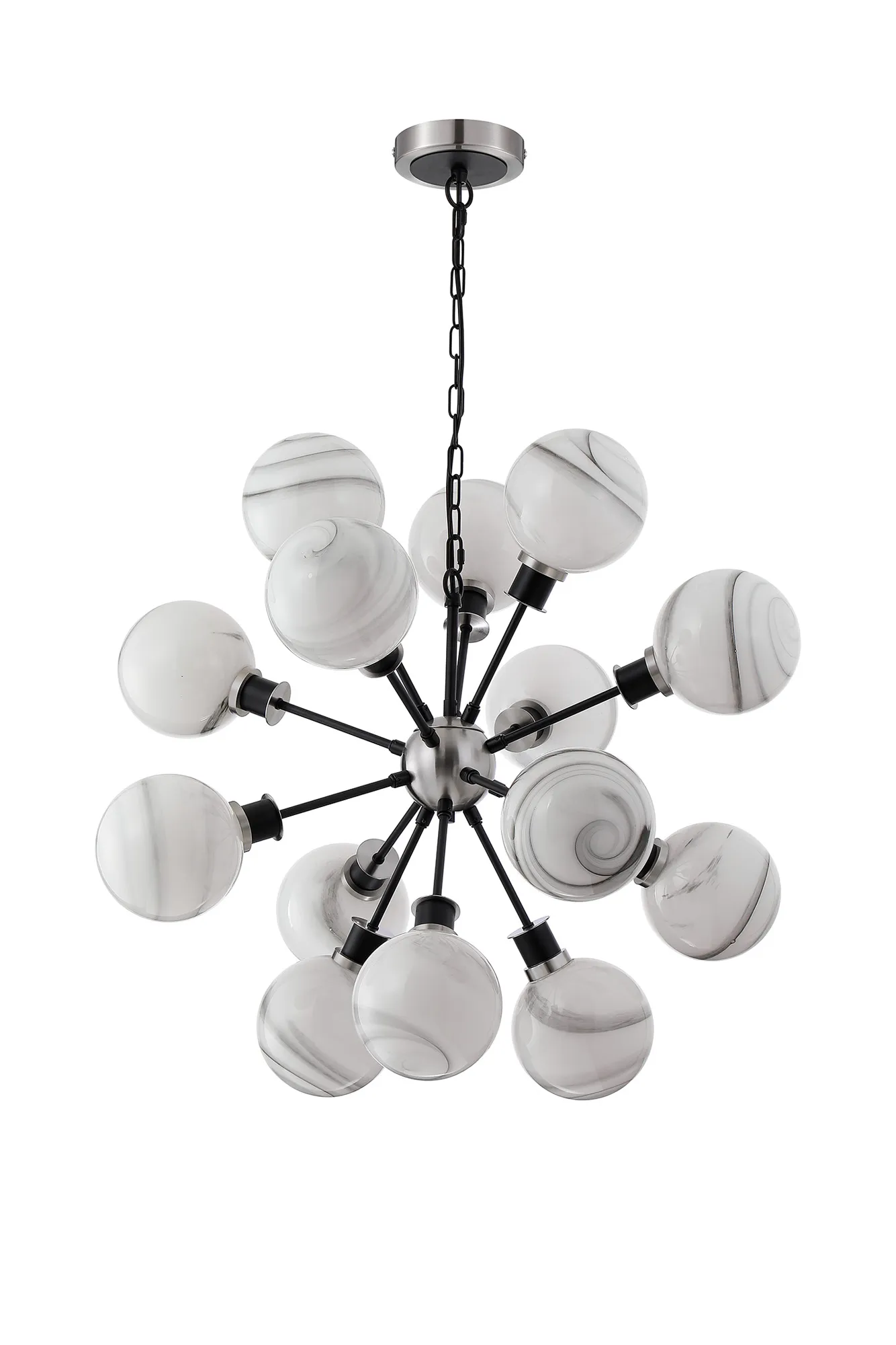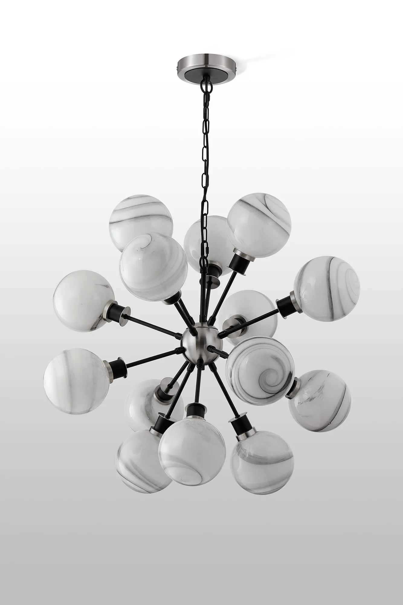 Fernie Table Lamp Touch Switch, 3 Light E14, With 15cm Round Marble Effect Glass Shade Satin Nickel, White, Satin Black
