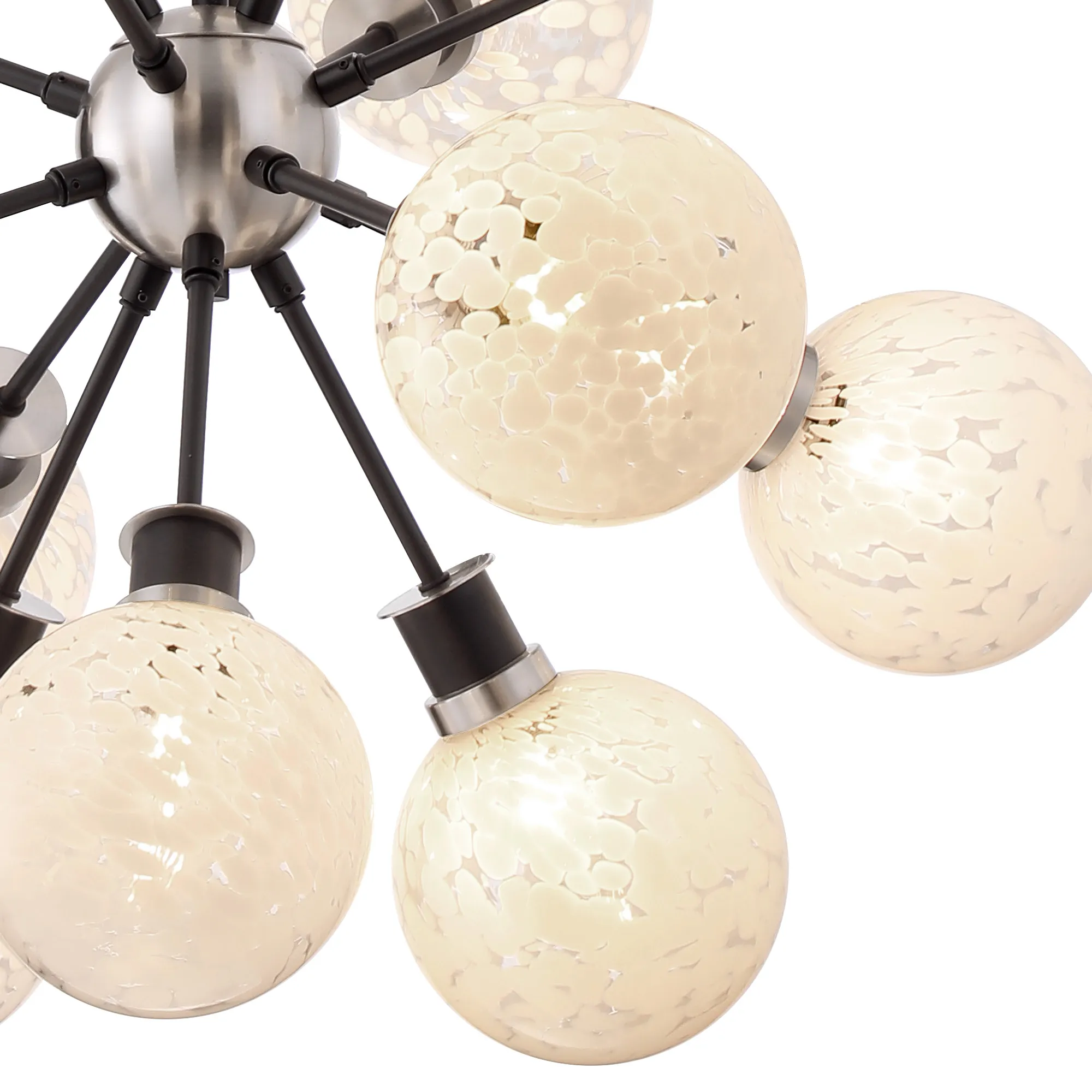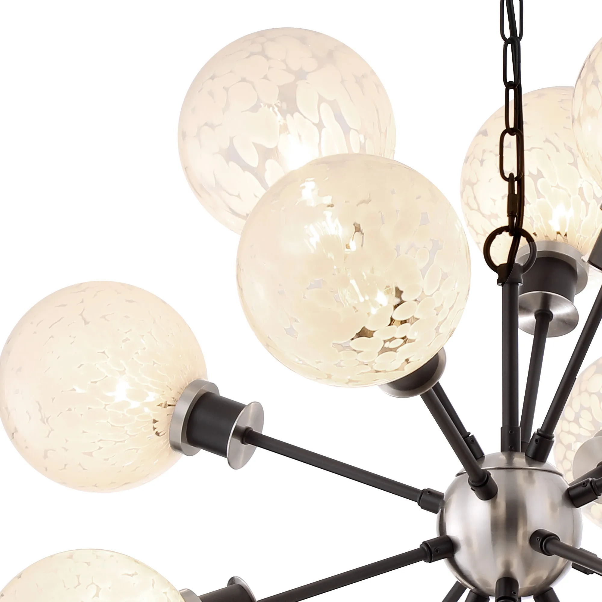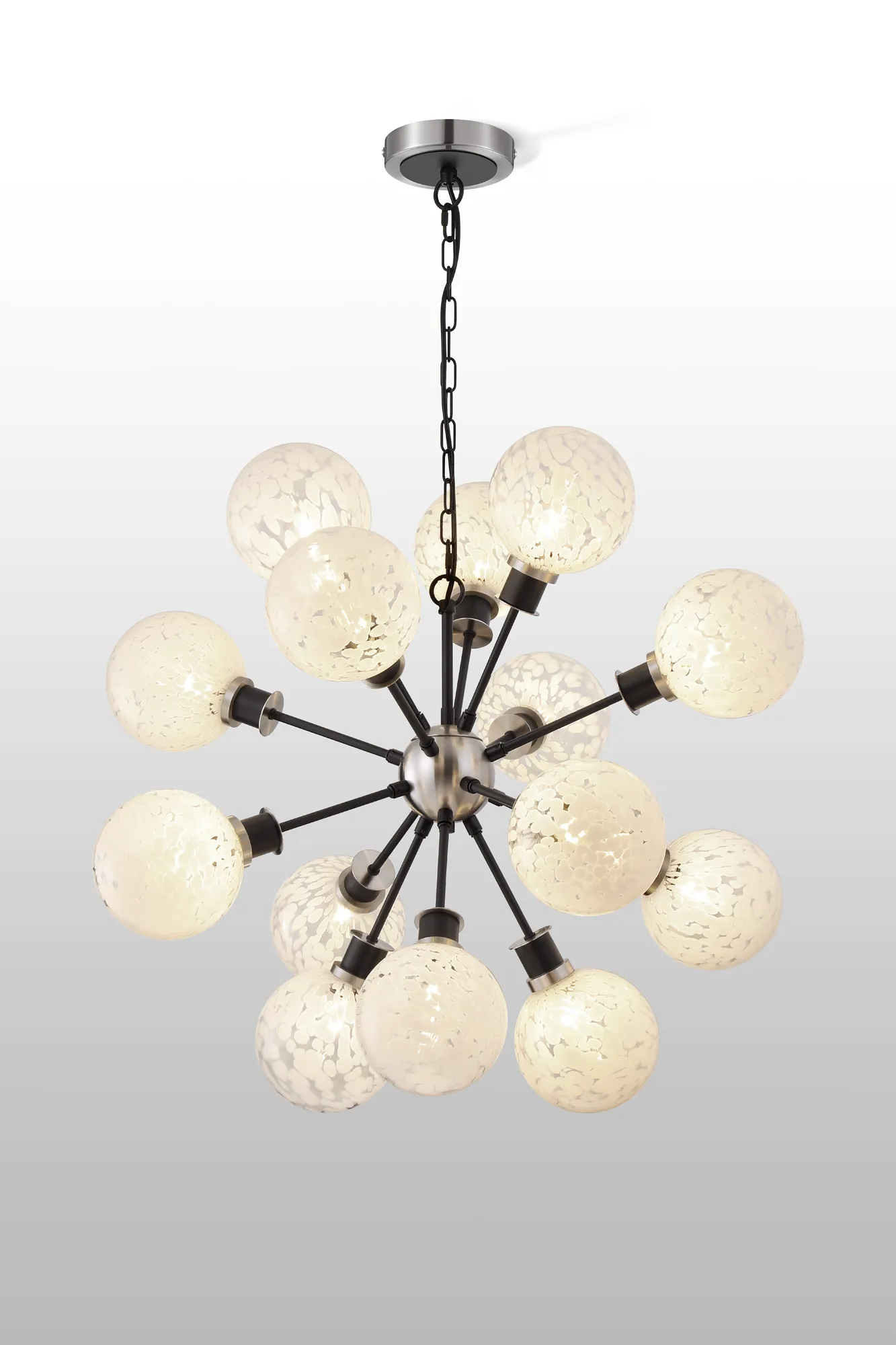 Fernie Table Lamp Touch Switch, 3 Light E14, With 15cm Round Speckled Glass Shade Satin Nickel, White, Satin Black