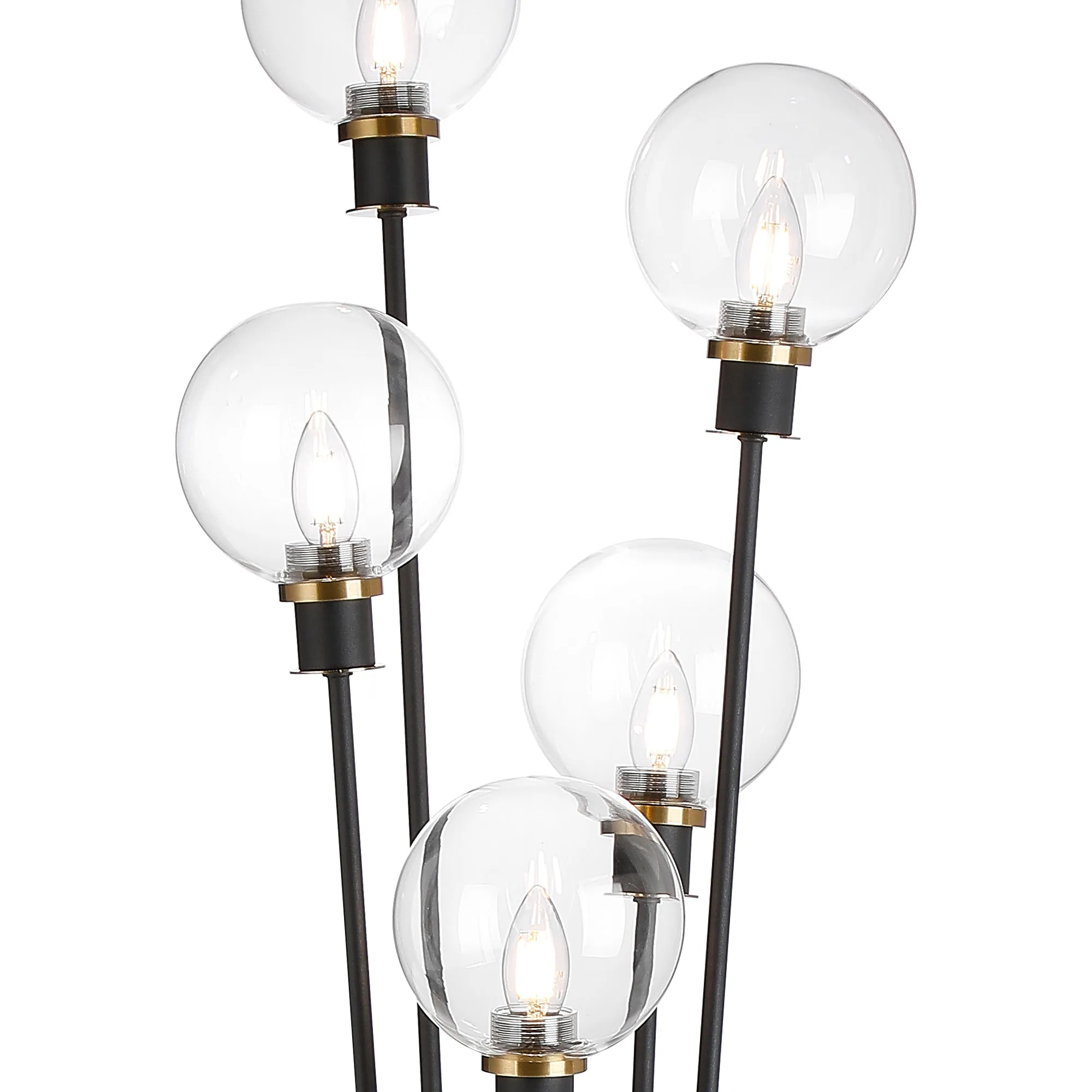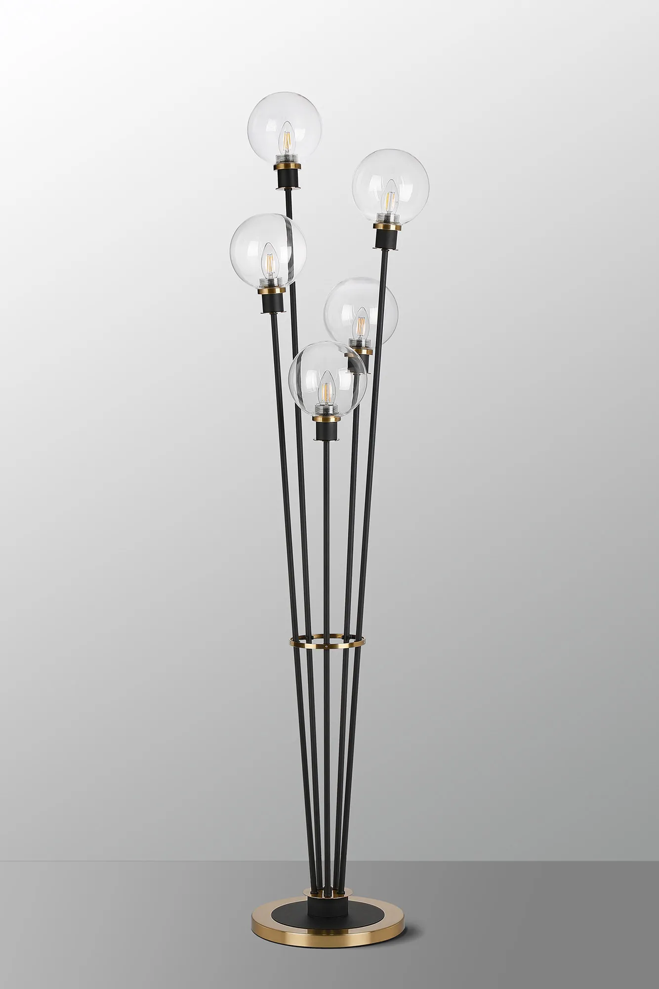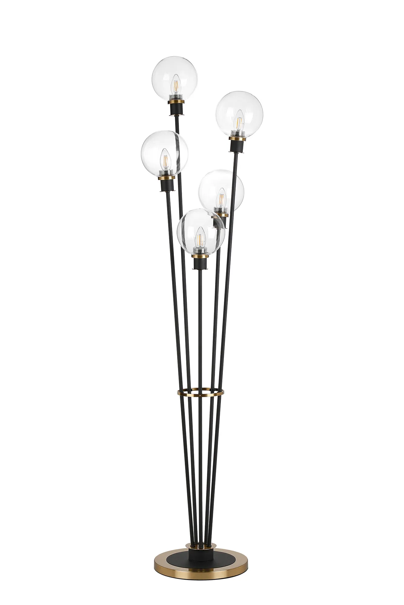 Fernie Table Lamp Touch Switch, 3 Light E14, With 15cm Round Glass Shade Brass, Clear, Satin Black