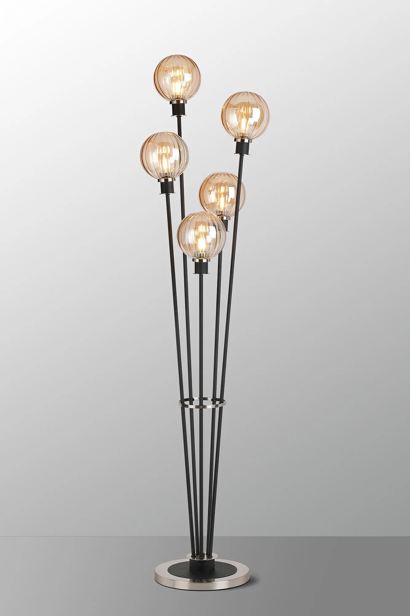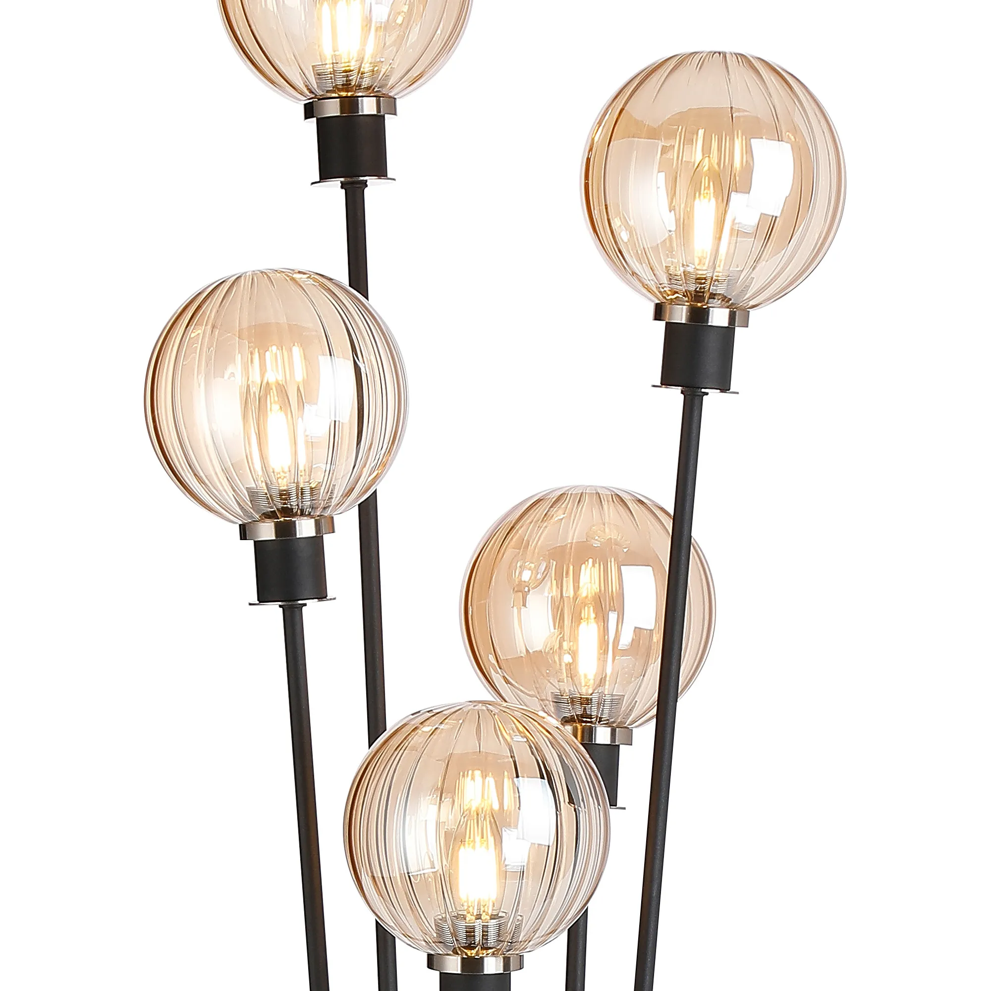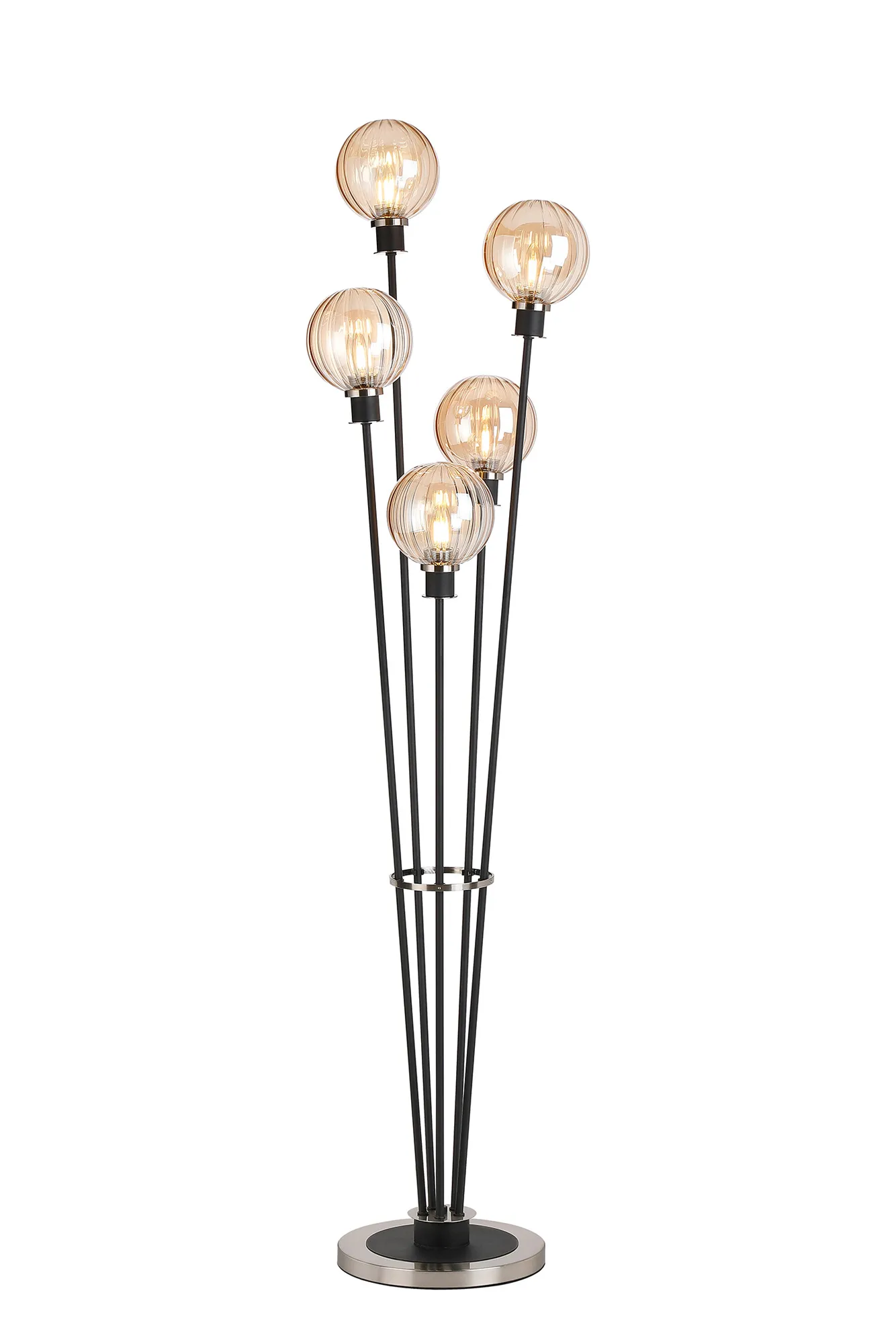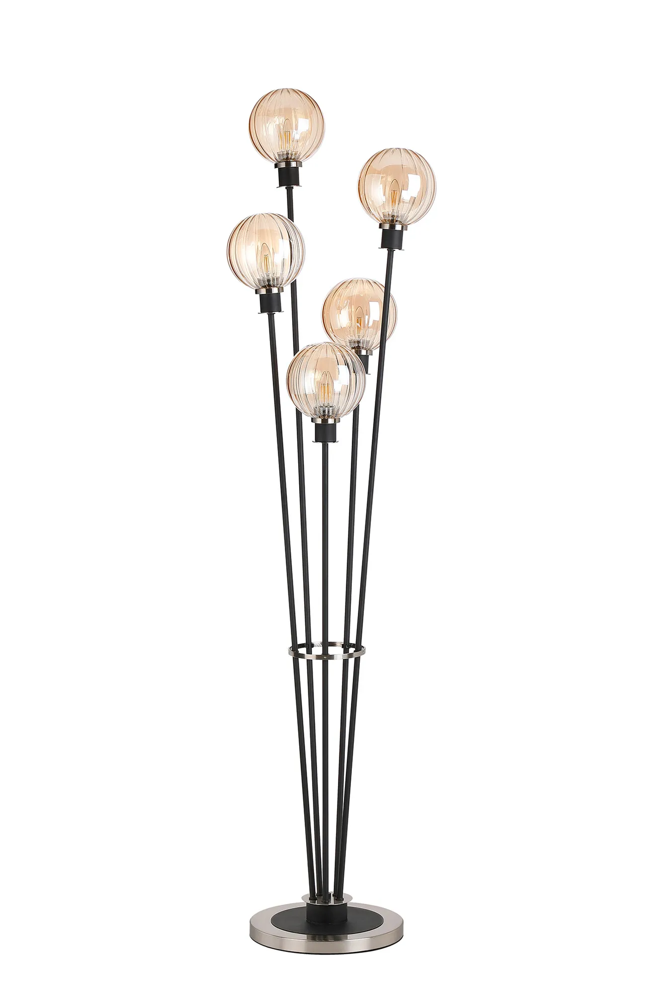OTHER Fernie Floor Lamp, 5 Light E14, With 15cm Round Segment Glass Shade Satin Nickel, Amber Plated, Satin Black