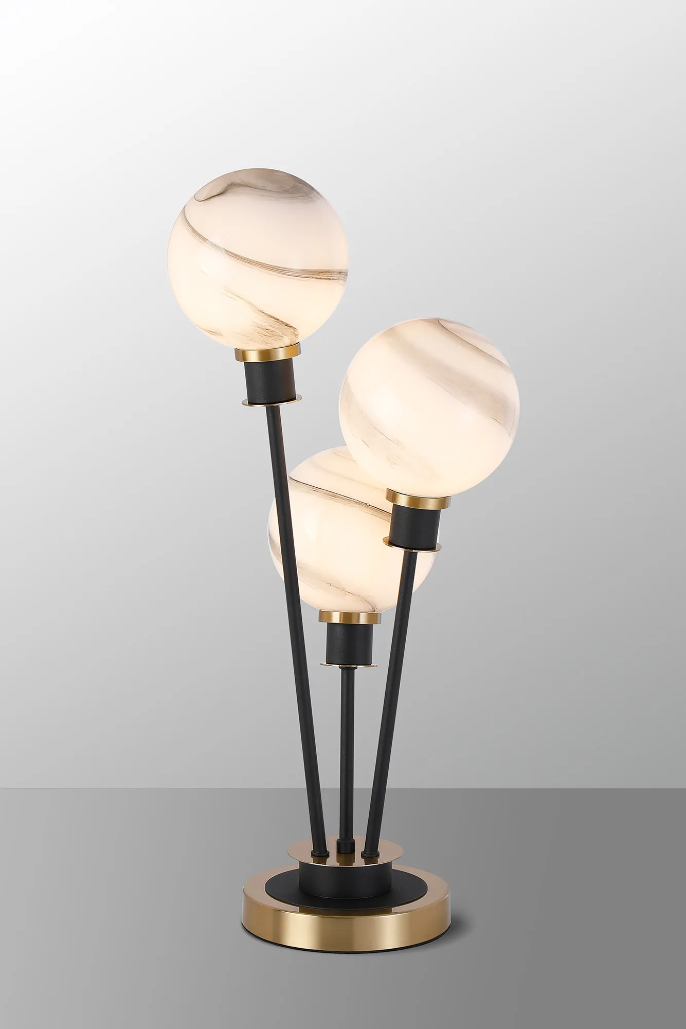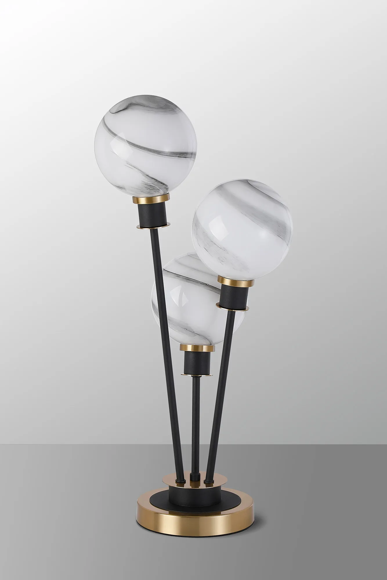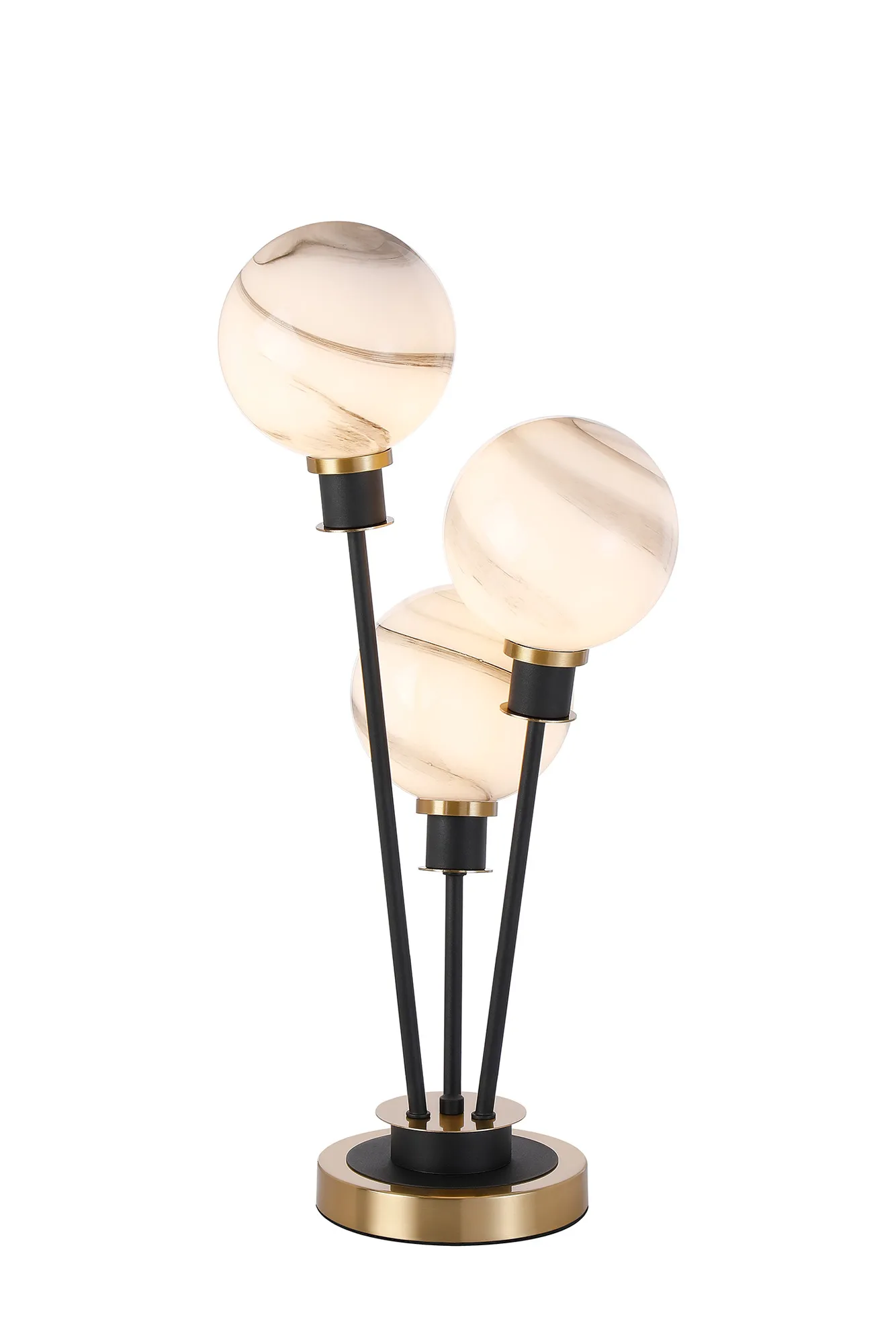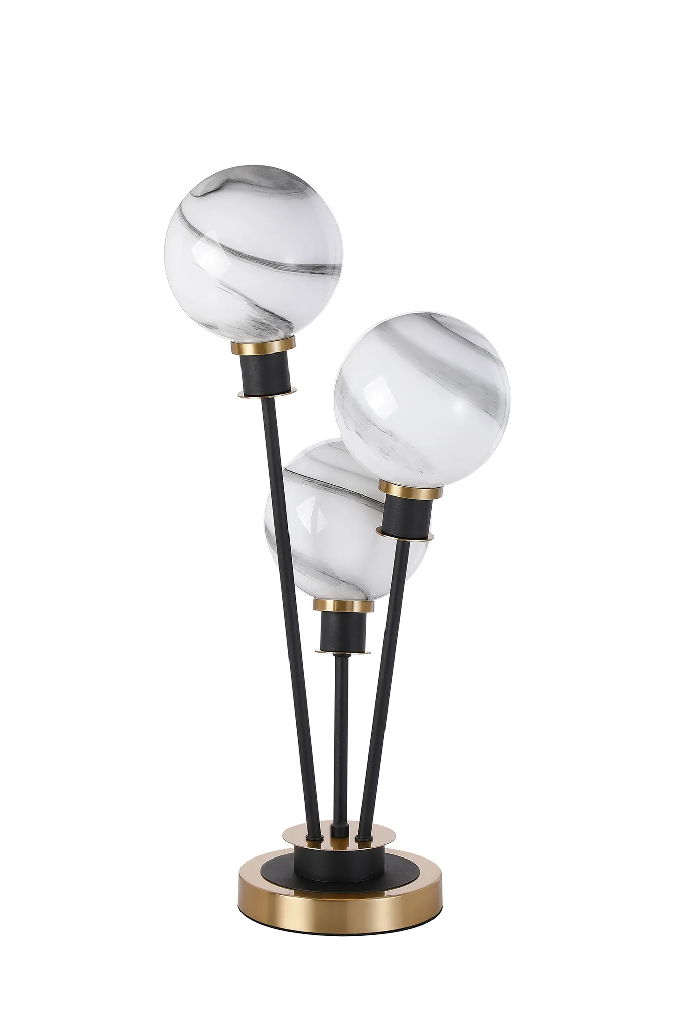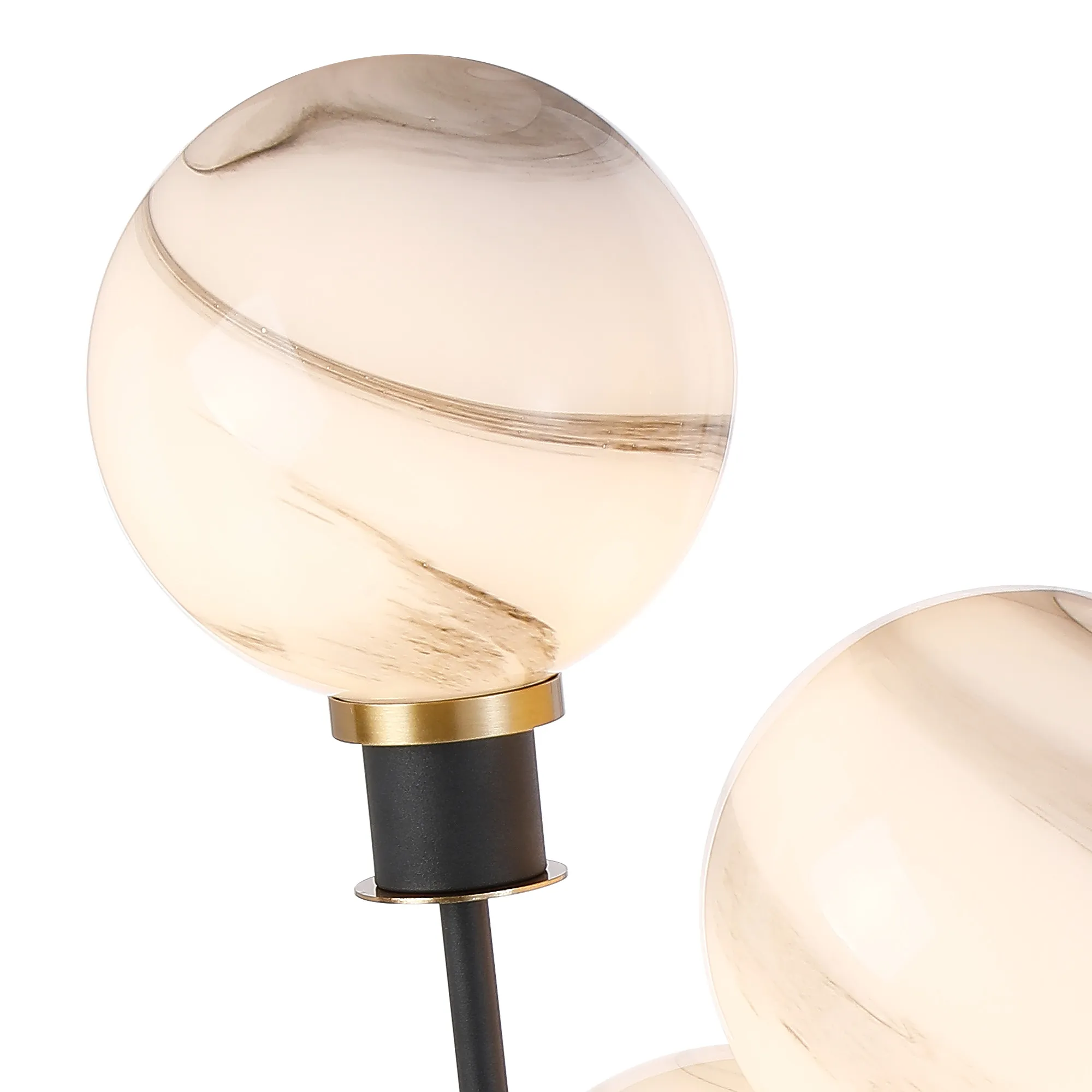 Fernie Floor Lamp, 5 Light E14, With 15cm Round Marble Effect Glass Shade Brass, White, Satin Black