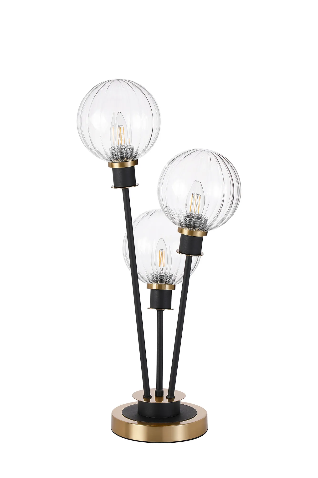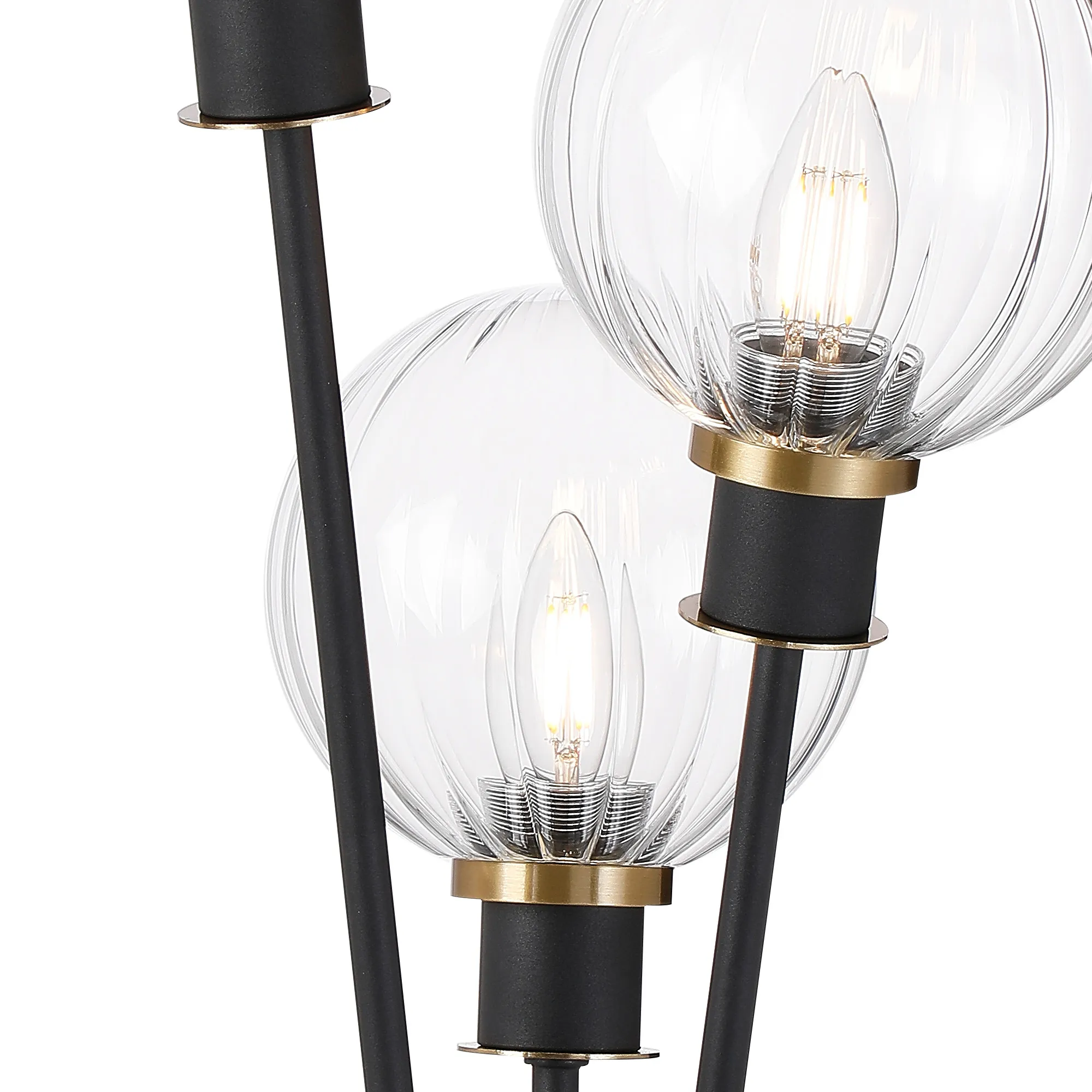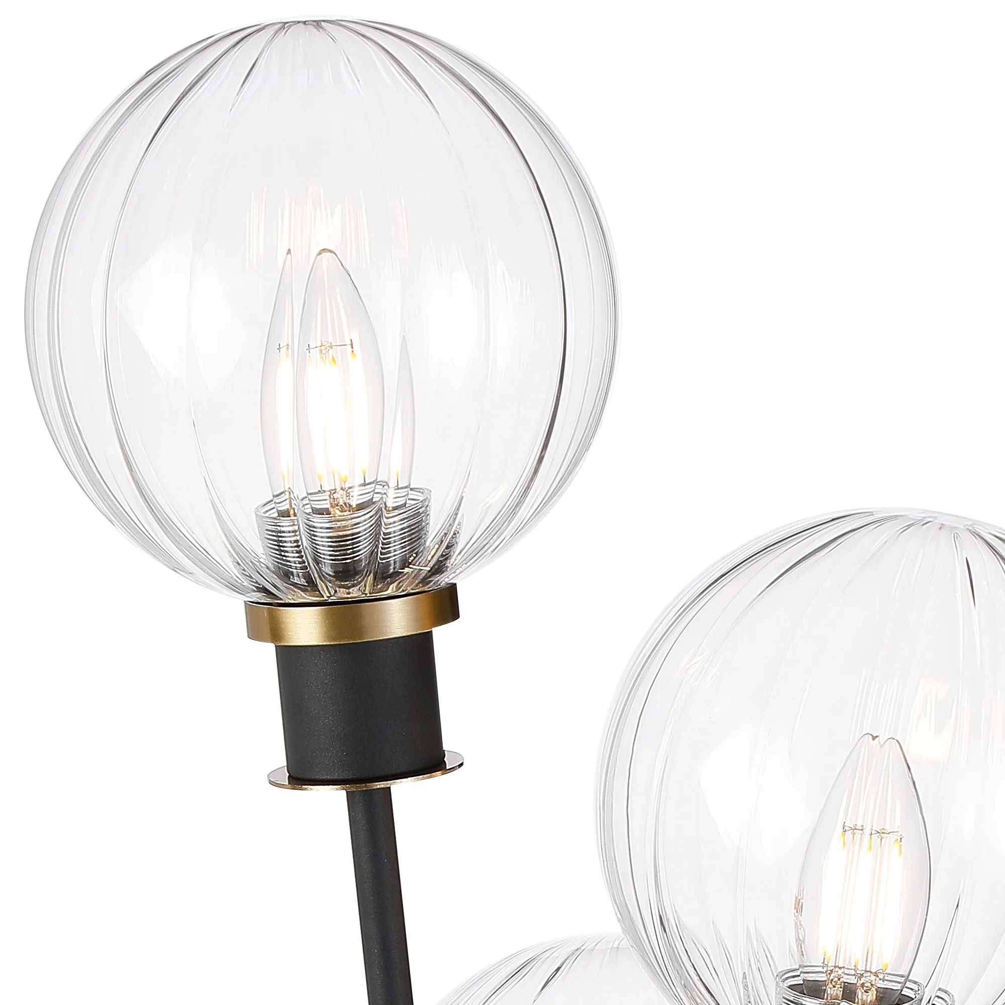 Fernie Floor Lamp, 5 Light E14, With 15cm Round Segment Glass Shade Brass, Clear, Satin Black