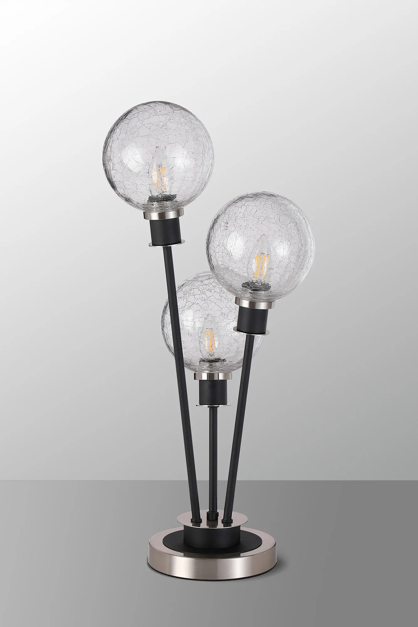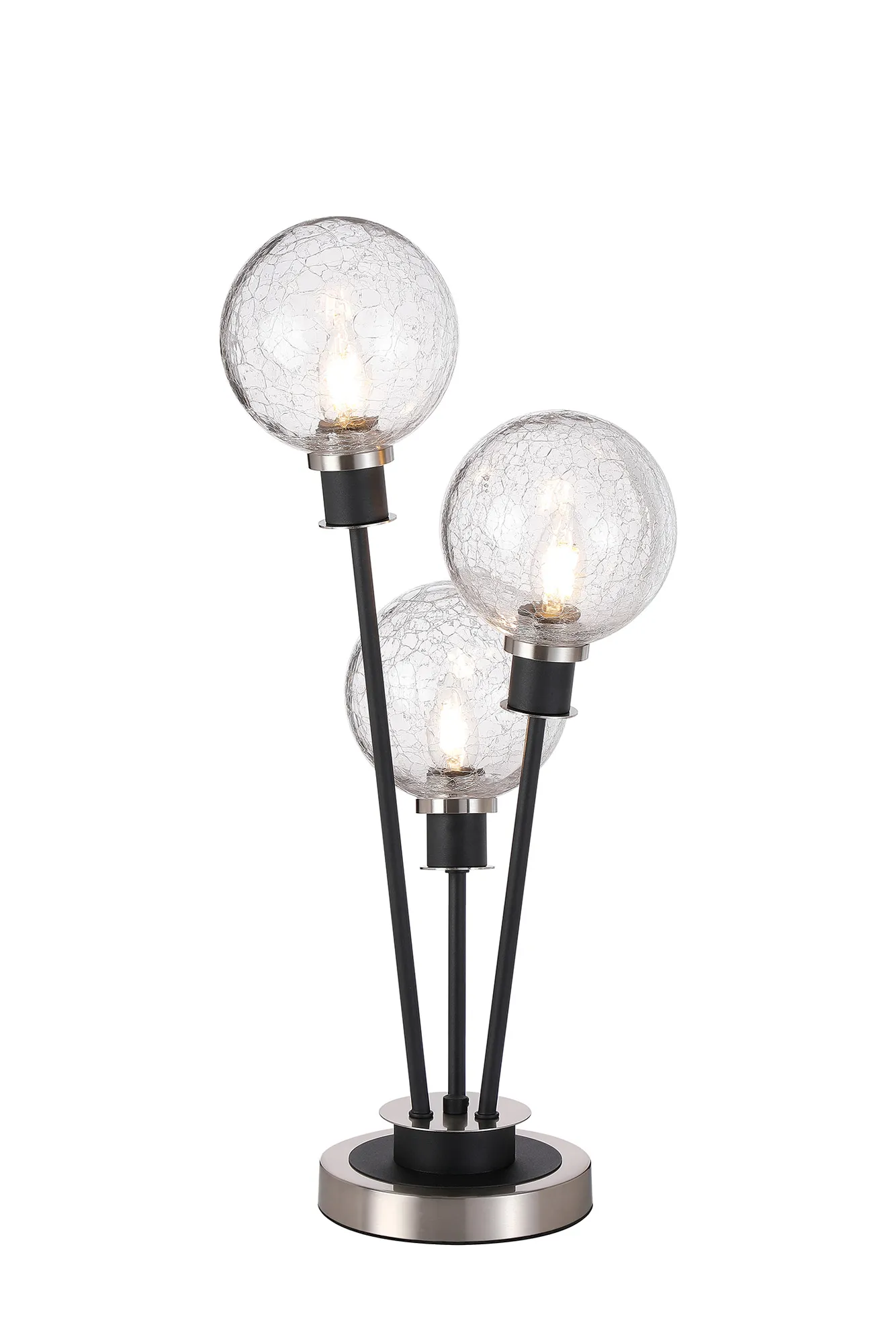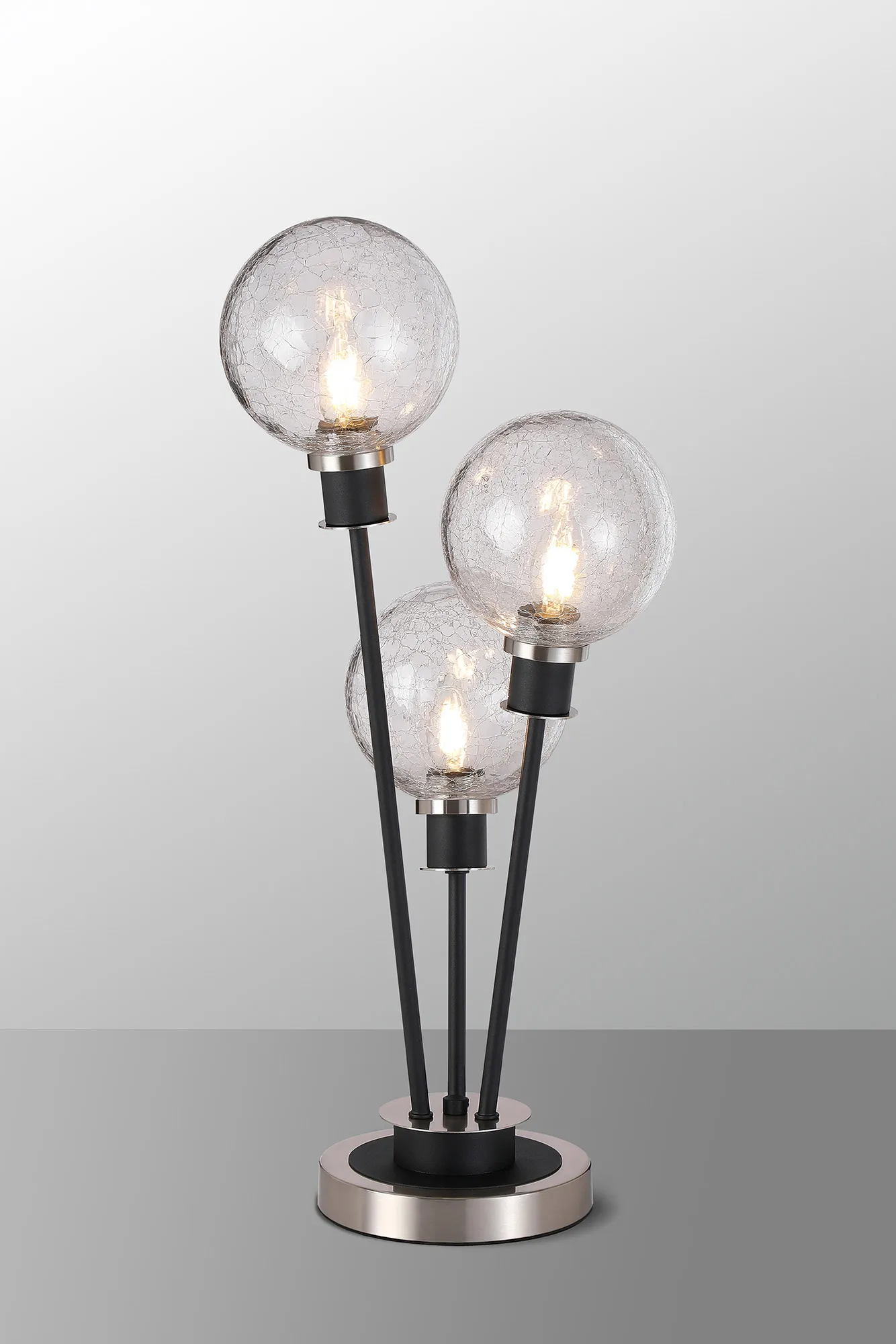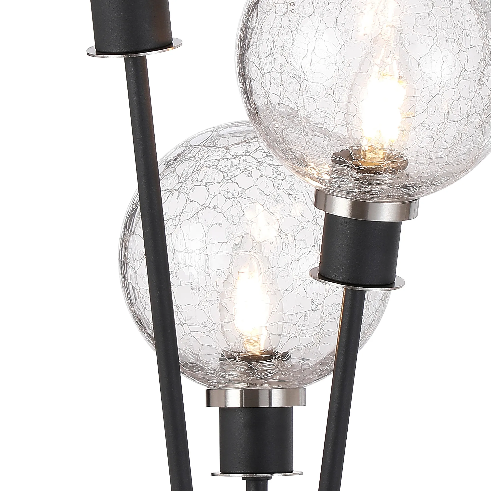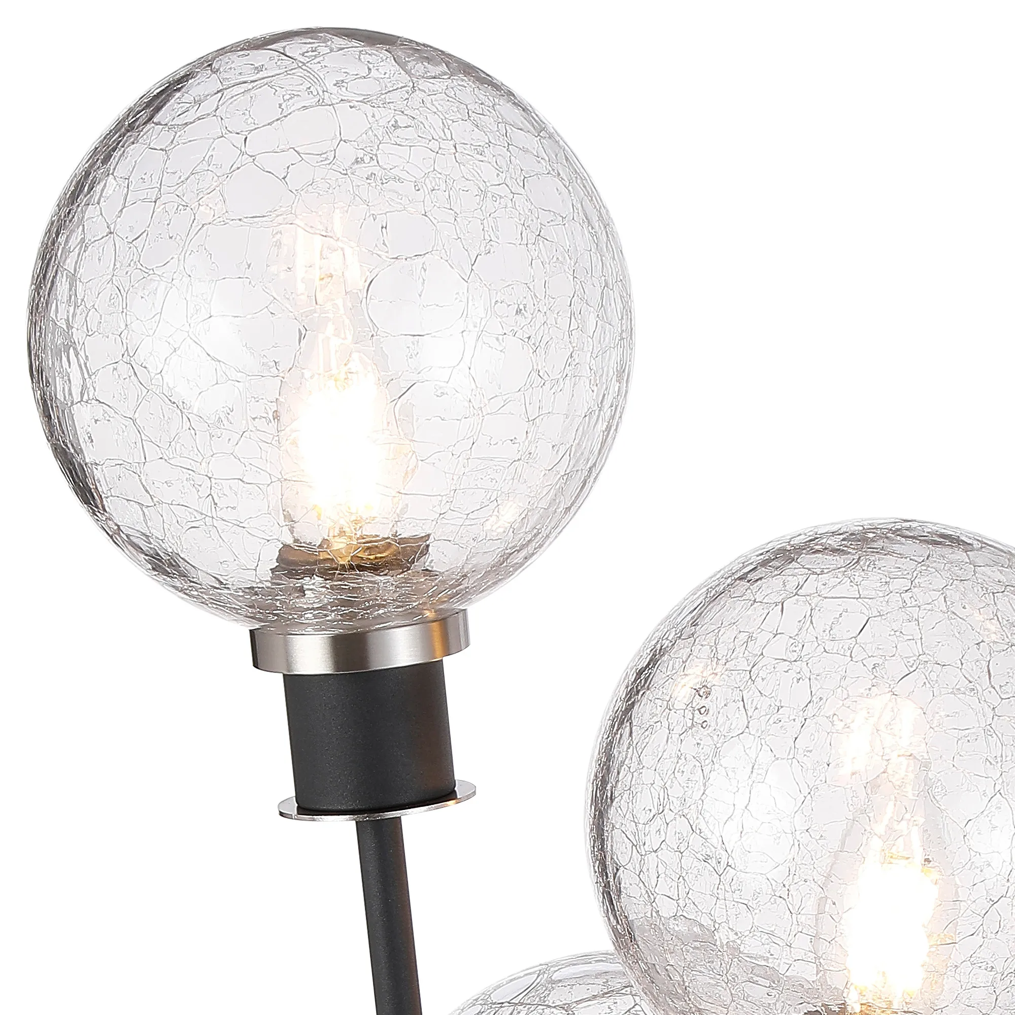 Fernie Floor Lamp, 5 Light E14, With 15cm Round Crackled Glass Shade Satin Nickel, Clear, Satin Black