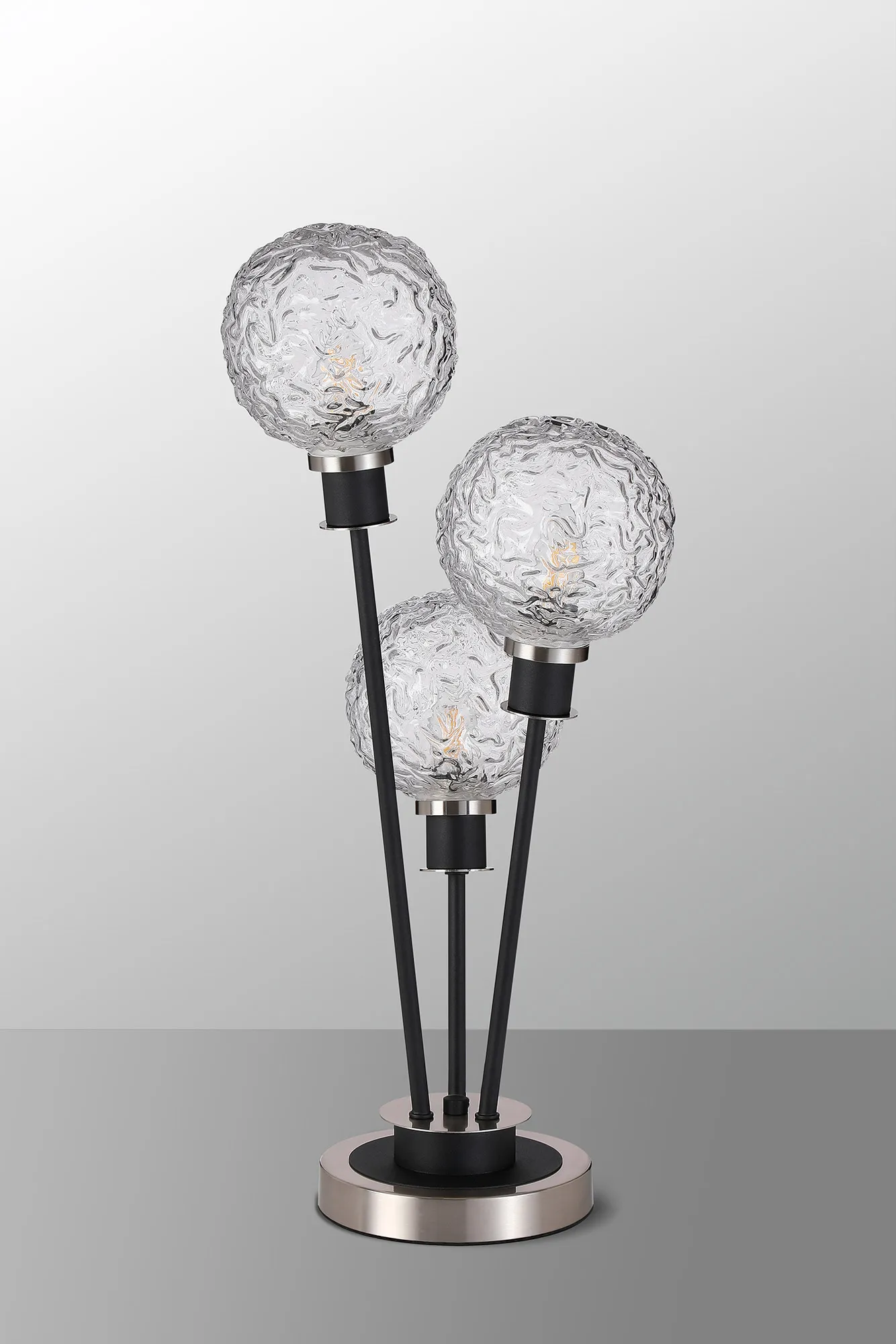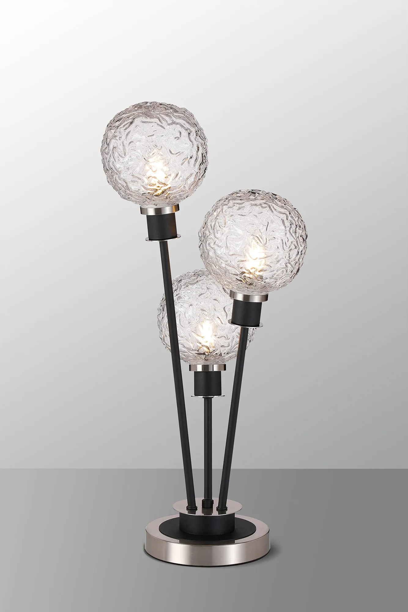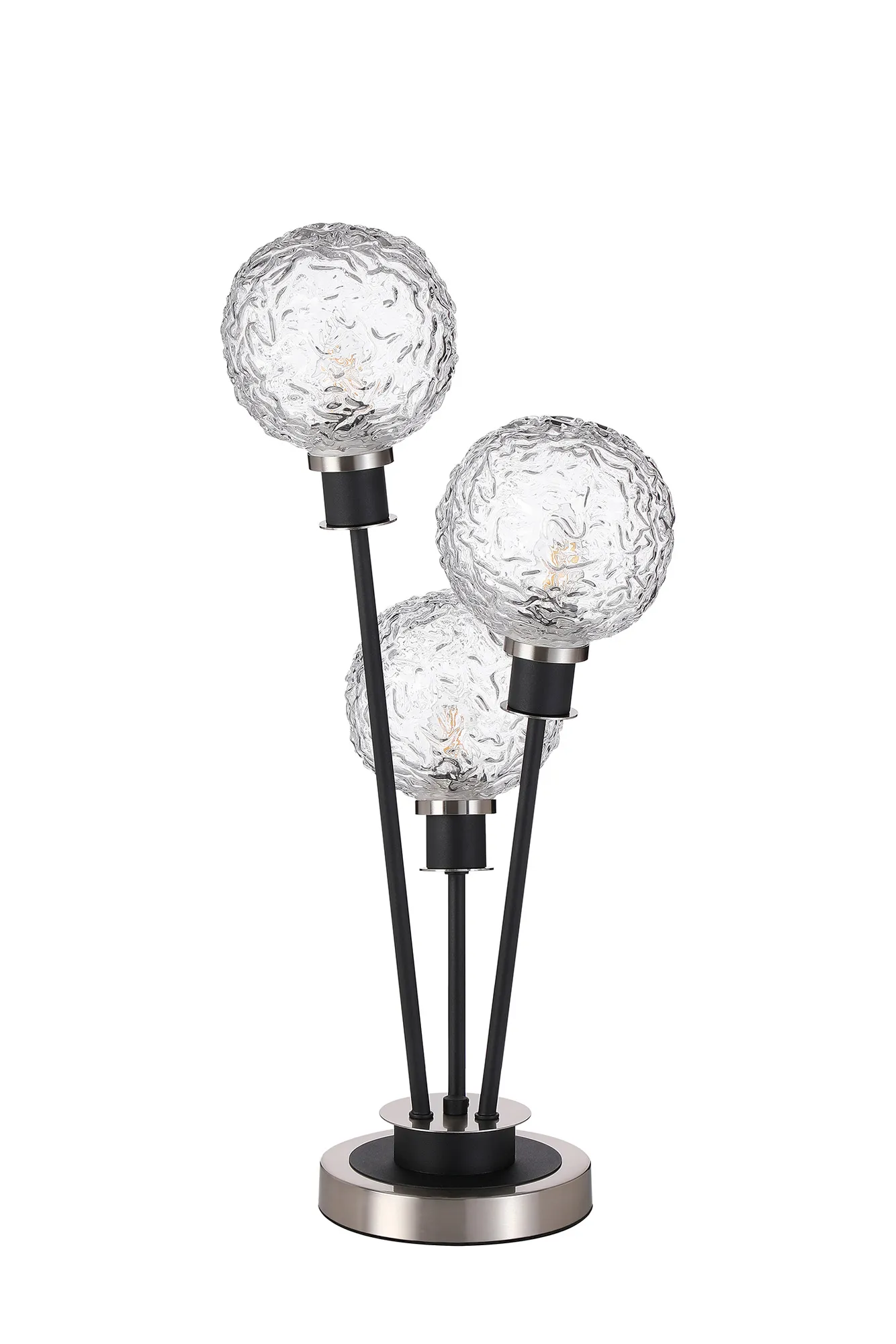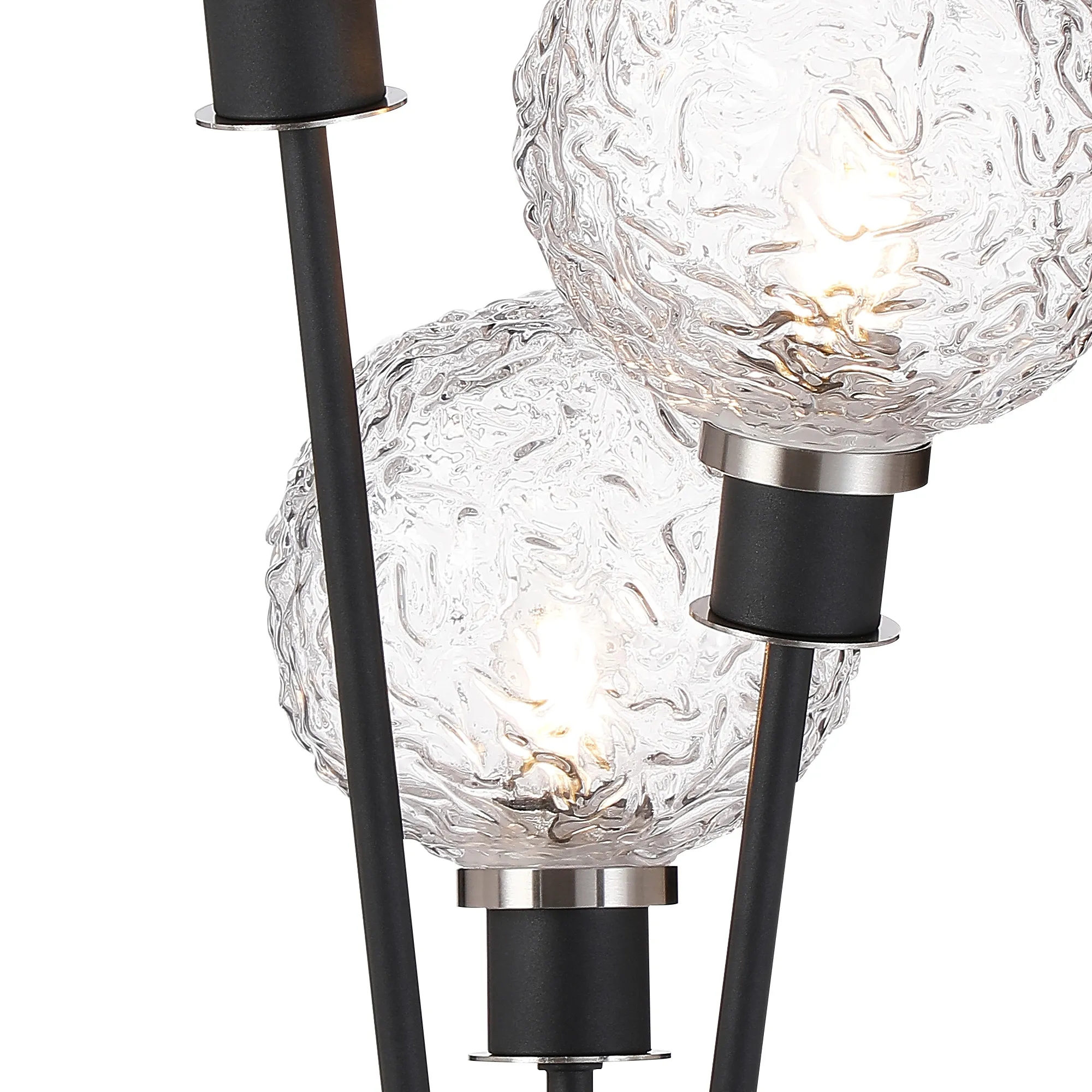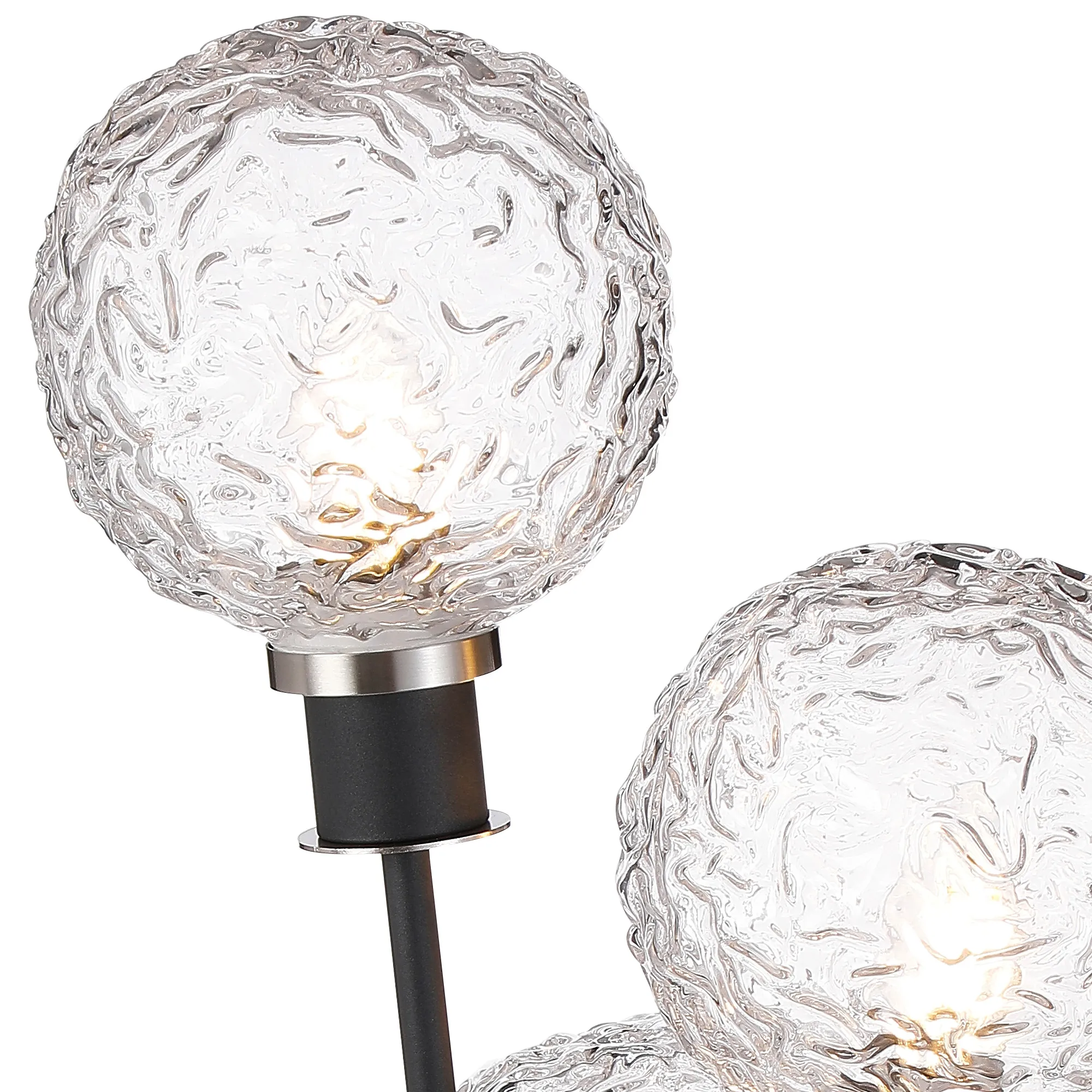 Fernie Floor Lamp, 5 Light E14, With 15cm Round Textured Crumple Glass Shade Satin Nickel, Clear, Satin Black
