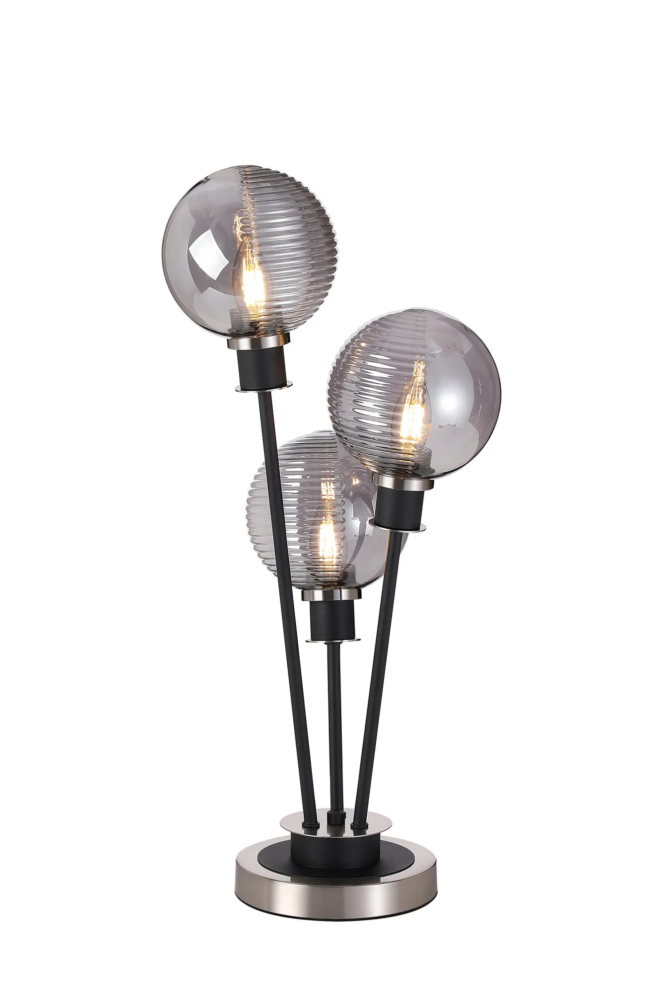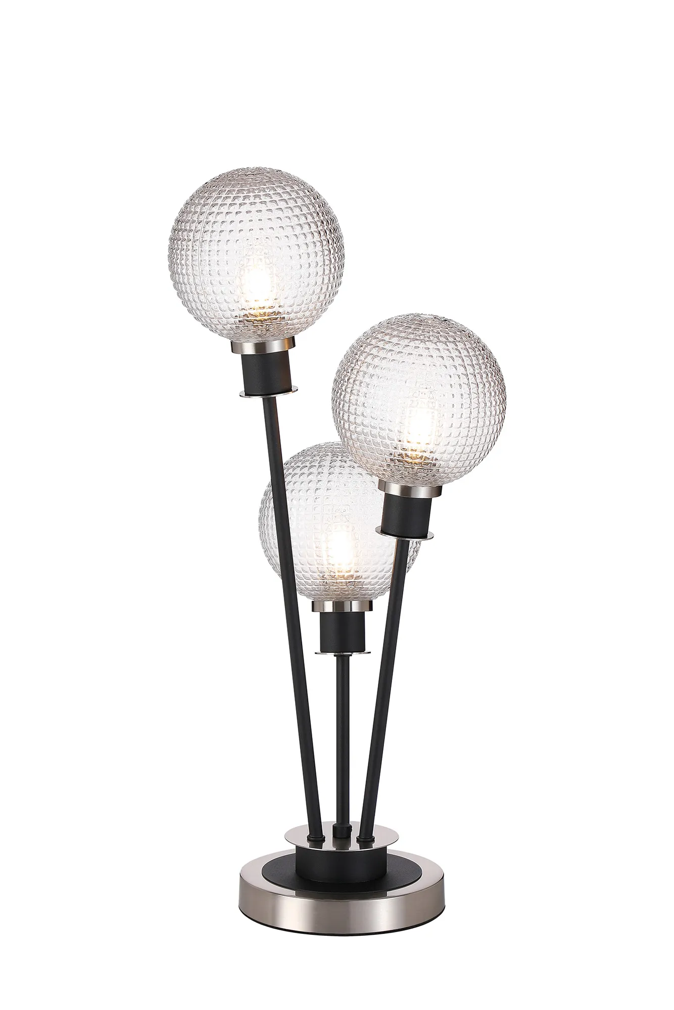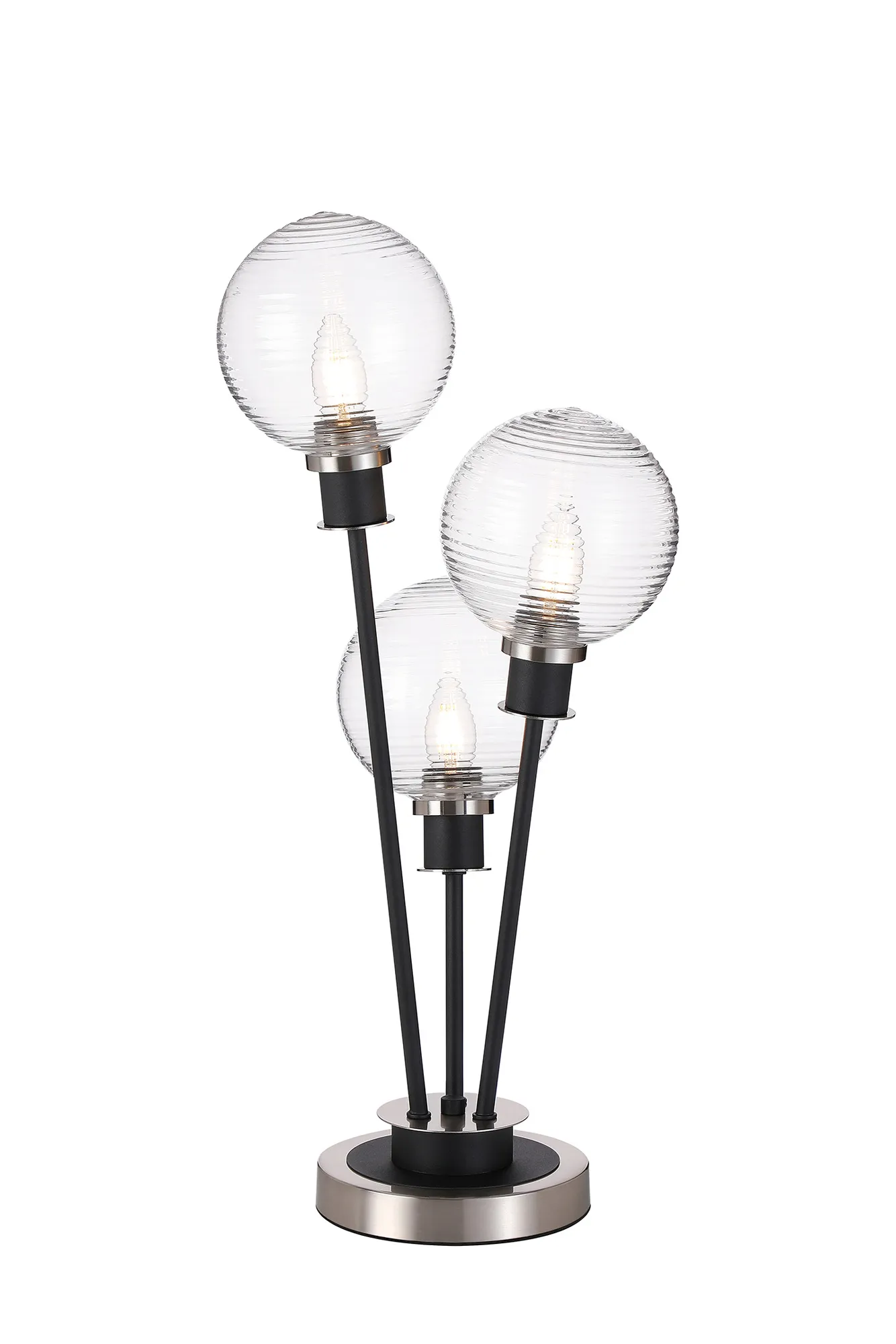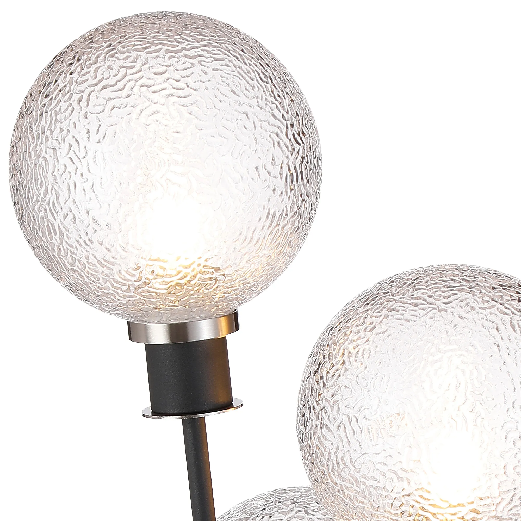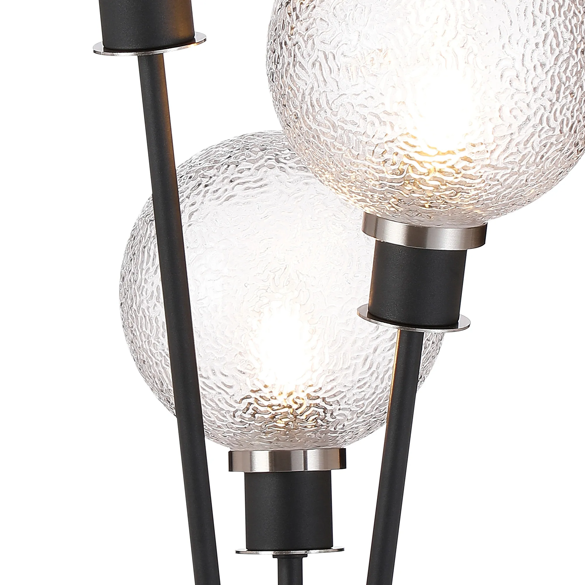 Fernie Floor Lamp, 5 Light E14, With 15cm Round Dimpled Glass Shade Satin Nickel, Clear, Satin Black