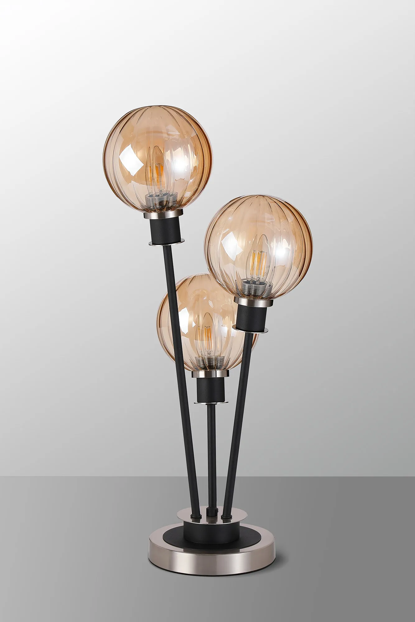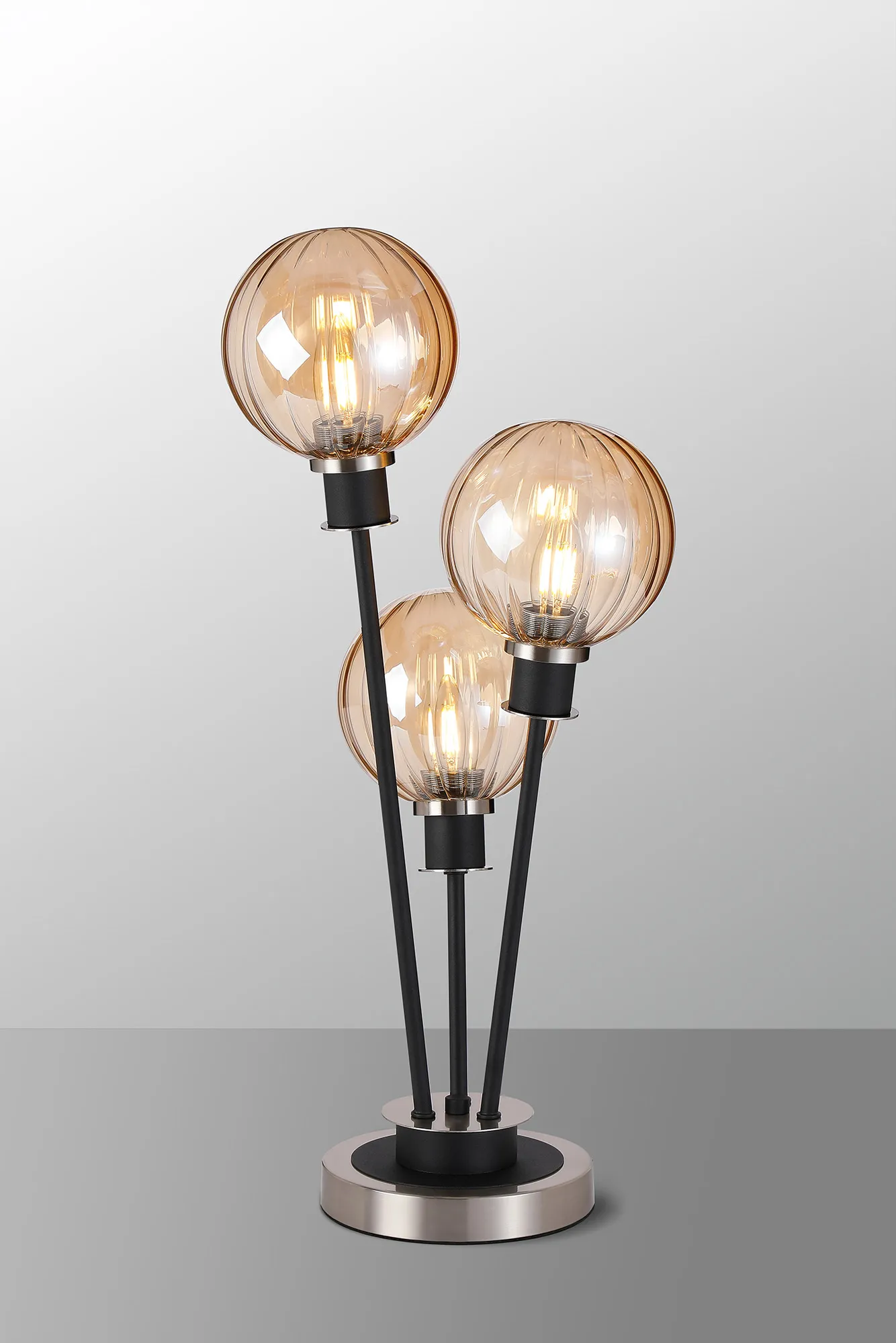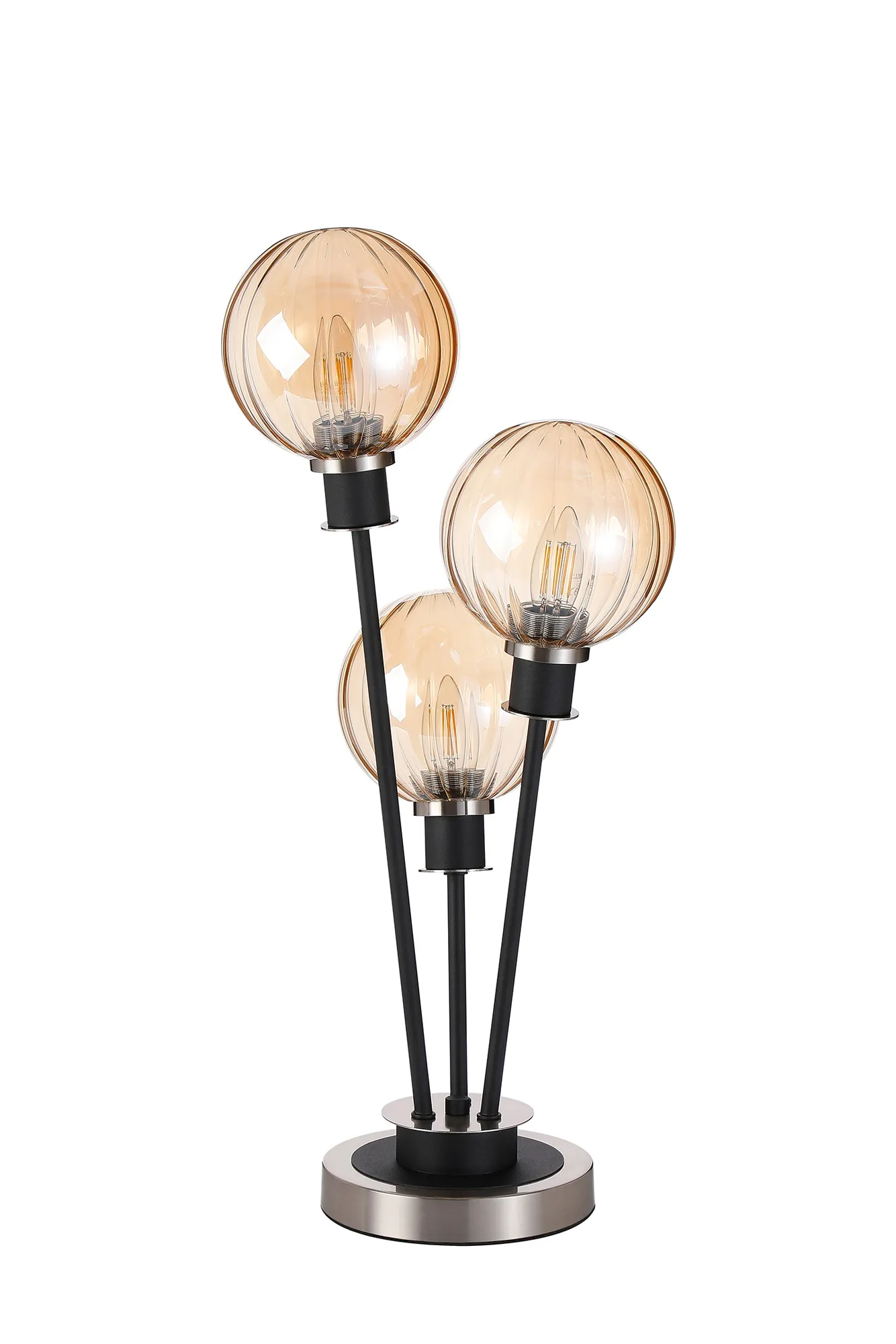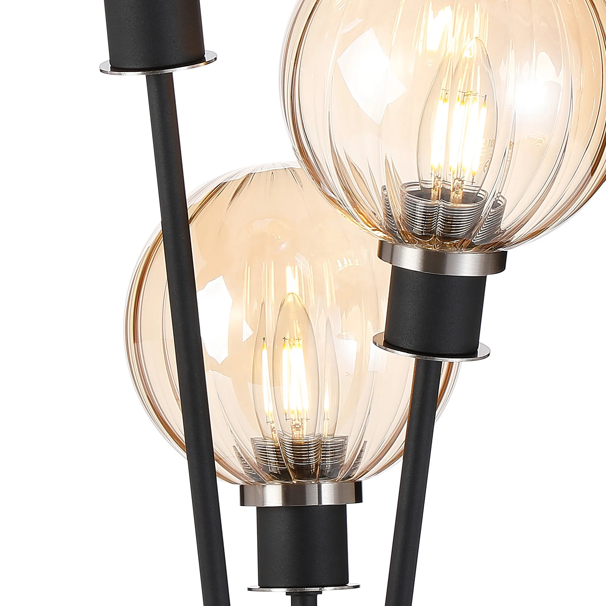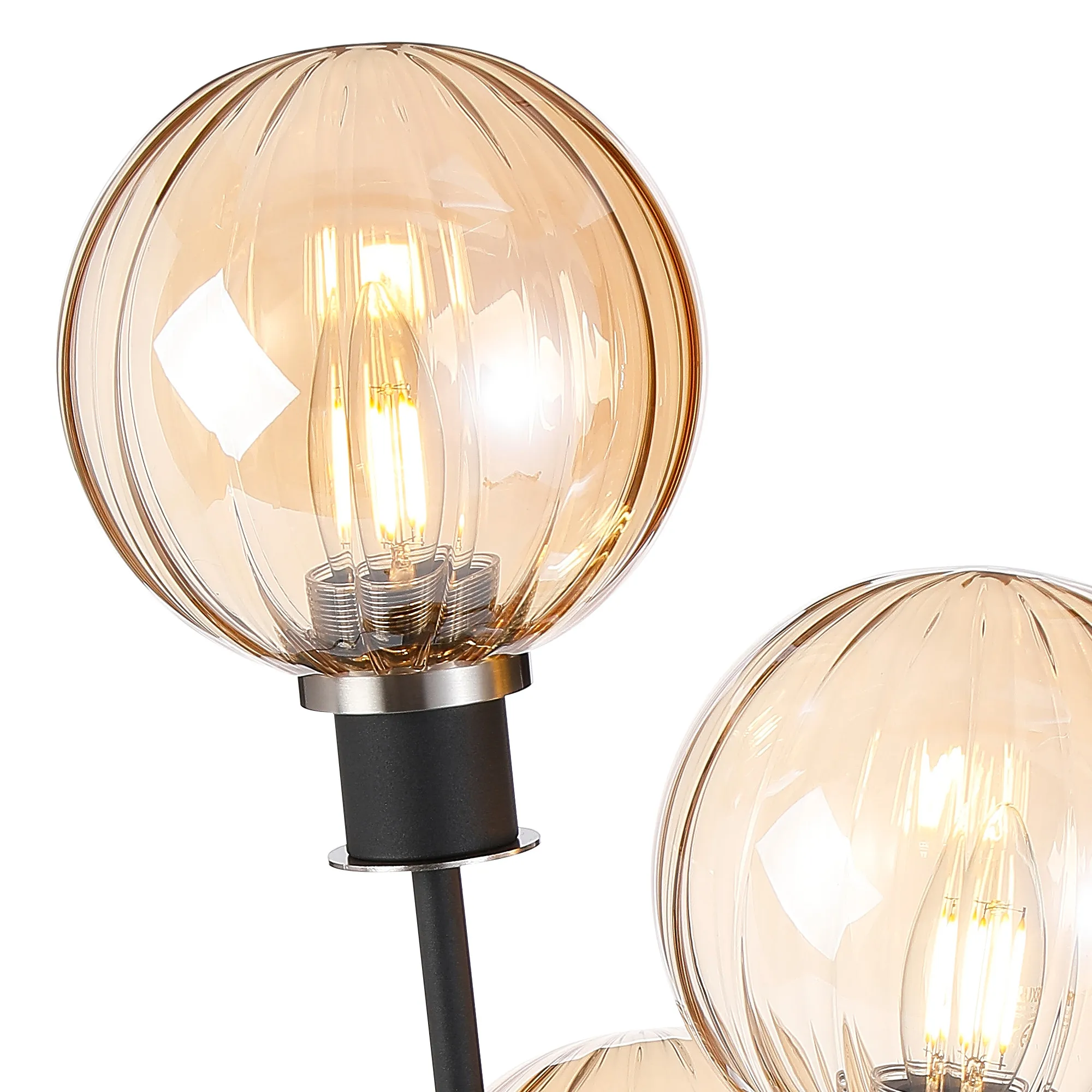 Fernie Floor Lamp, 5 Light E14, With 15cm Round Segment Glass Shade Satin Nickel, Amber Plated, Satin Black