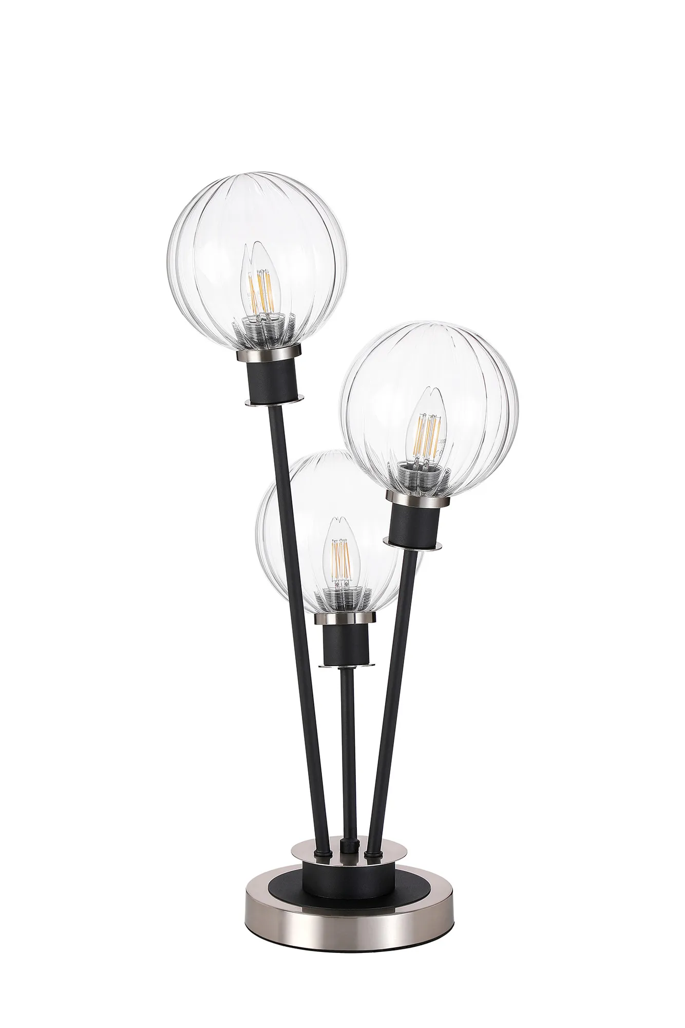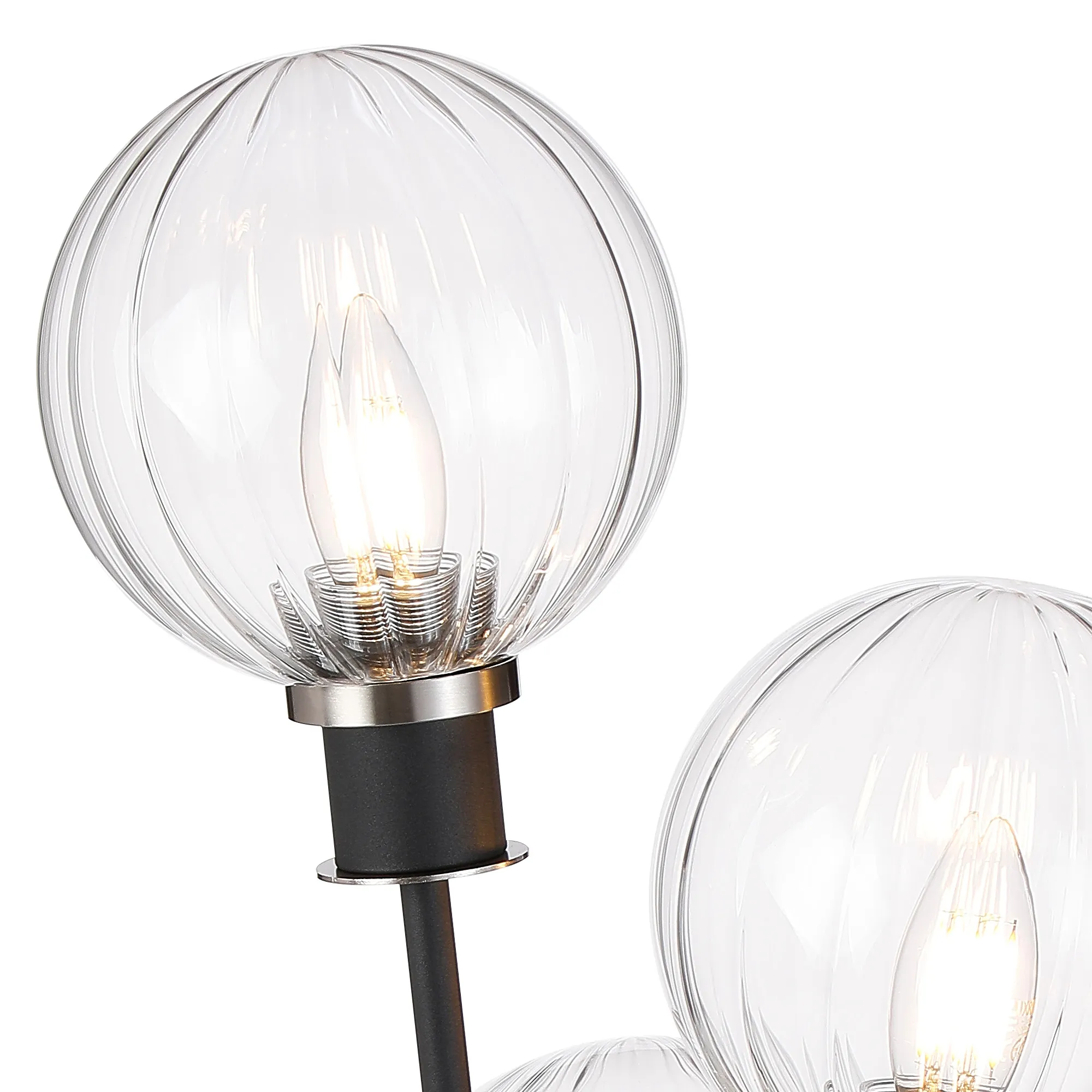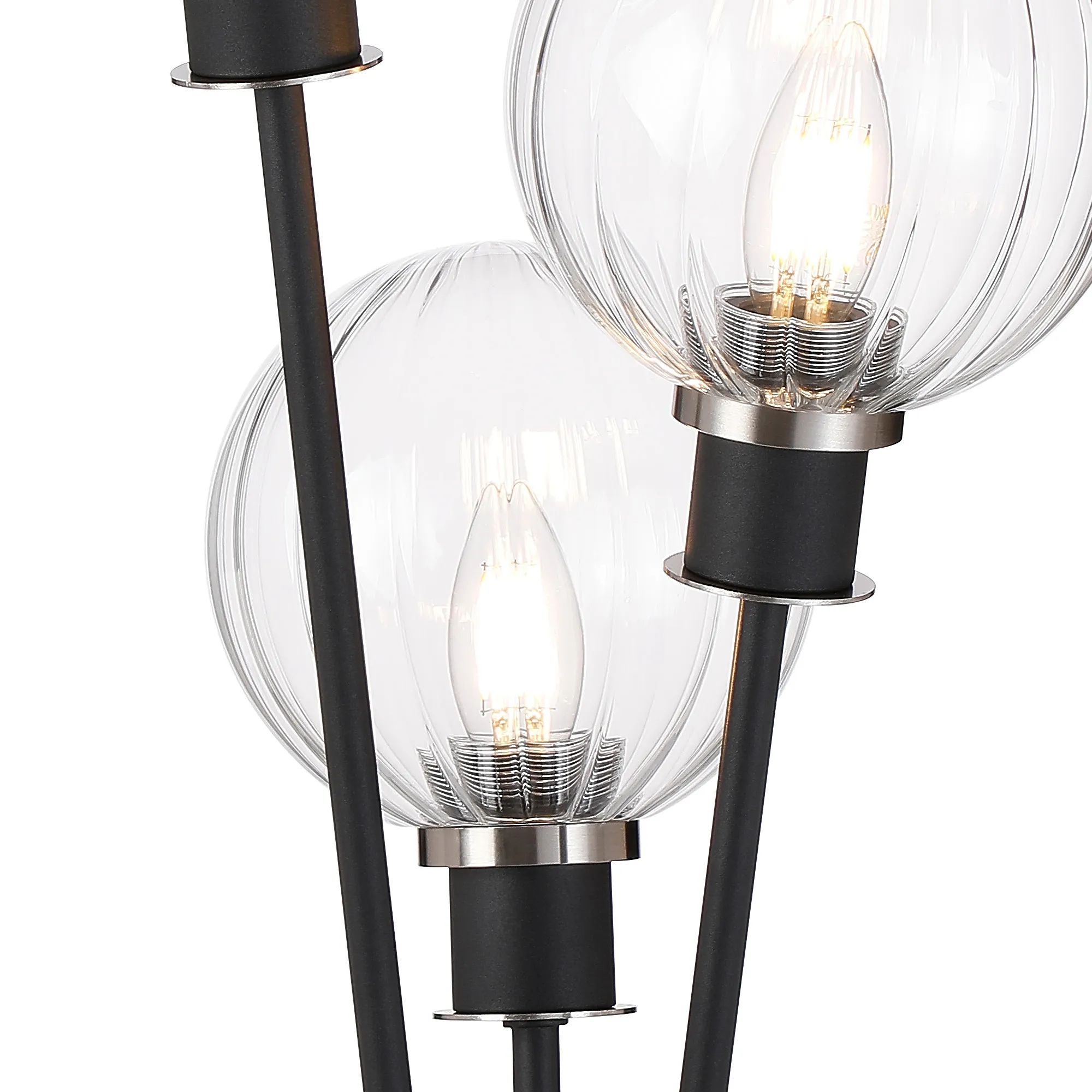 Fernie Floor Lamp, 5 Light E14, With 15cm Round Segment Glass Shade Satin Nickel, Clear, Satin Black