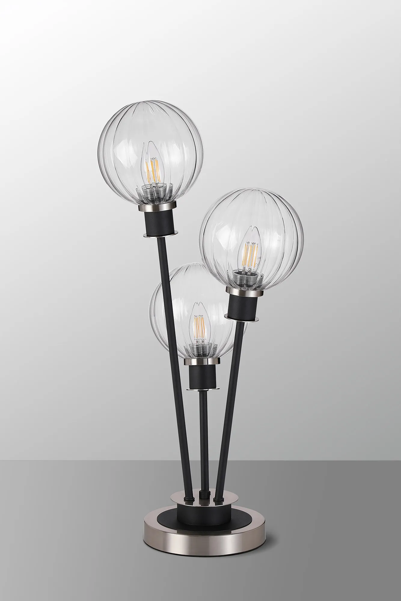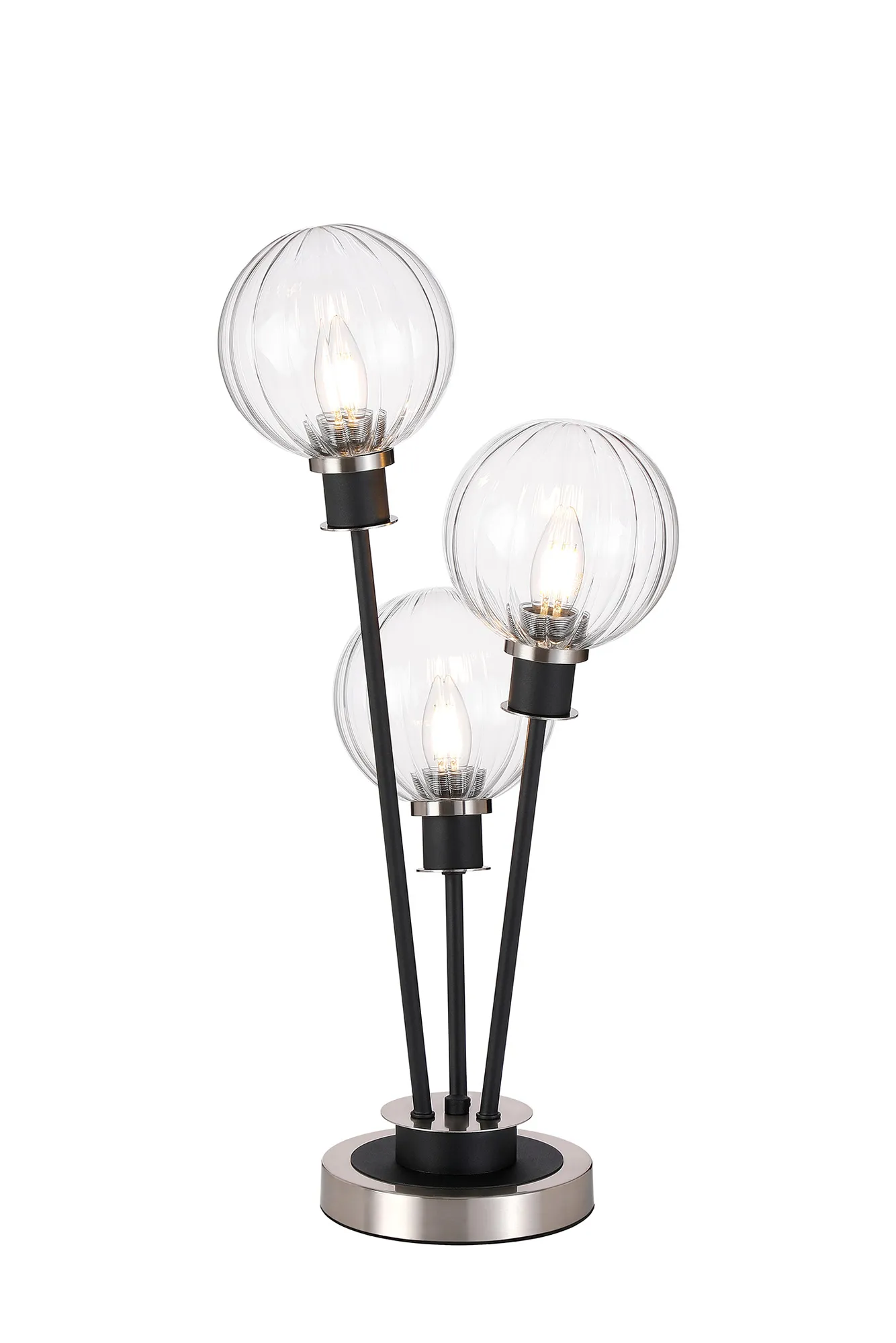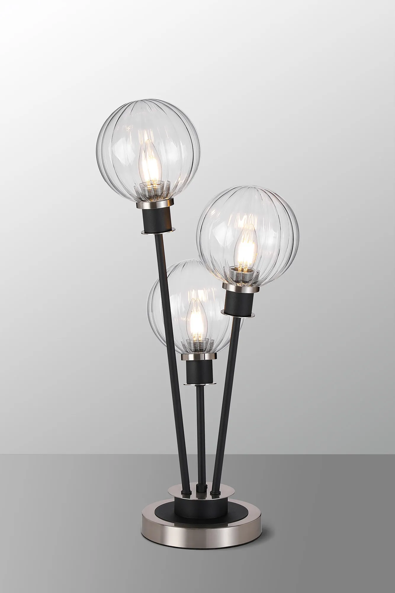 Fernie Floor Lamp, 5 Light E14, With 15cm Round Segment Glass Shade Satin Nickel, Clear, Satin Black