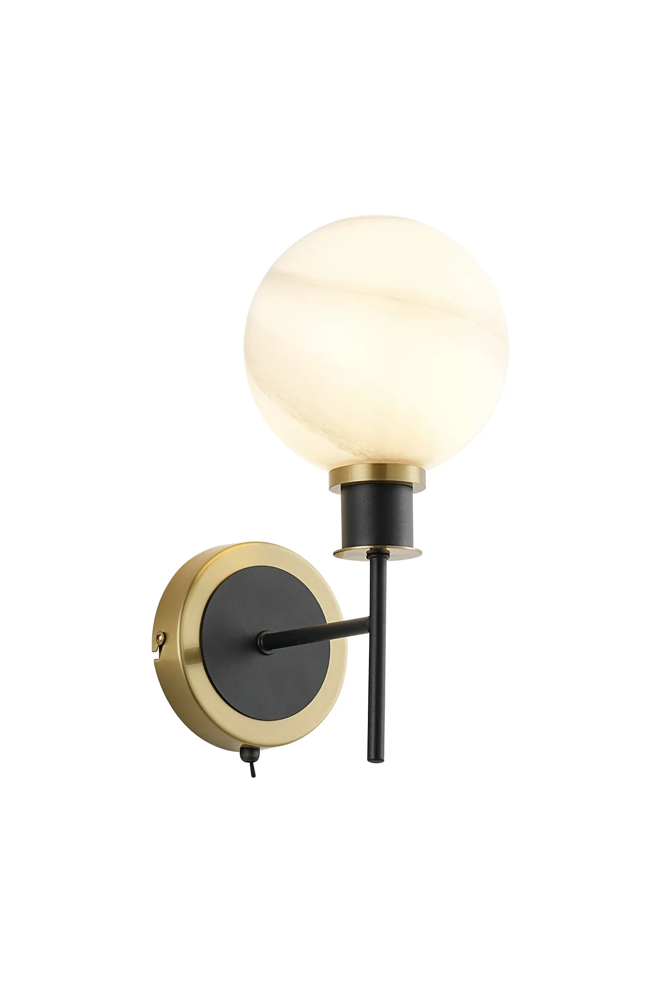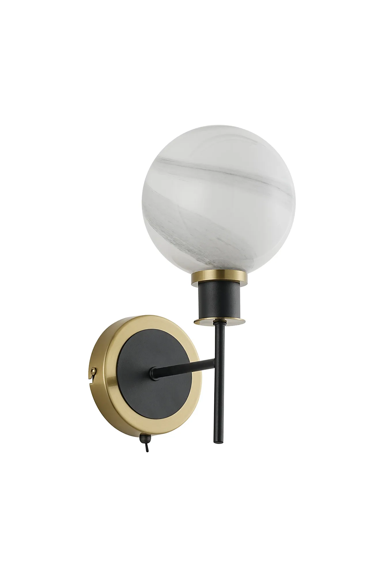 Fernie Table Lamp Touch Switch, 3 Light E14, With 15cm Round Marble Effect Glass Shade Brass, White, Satin Black
