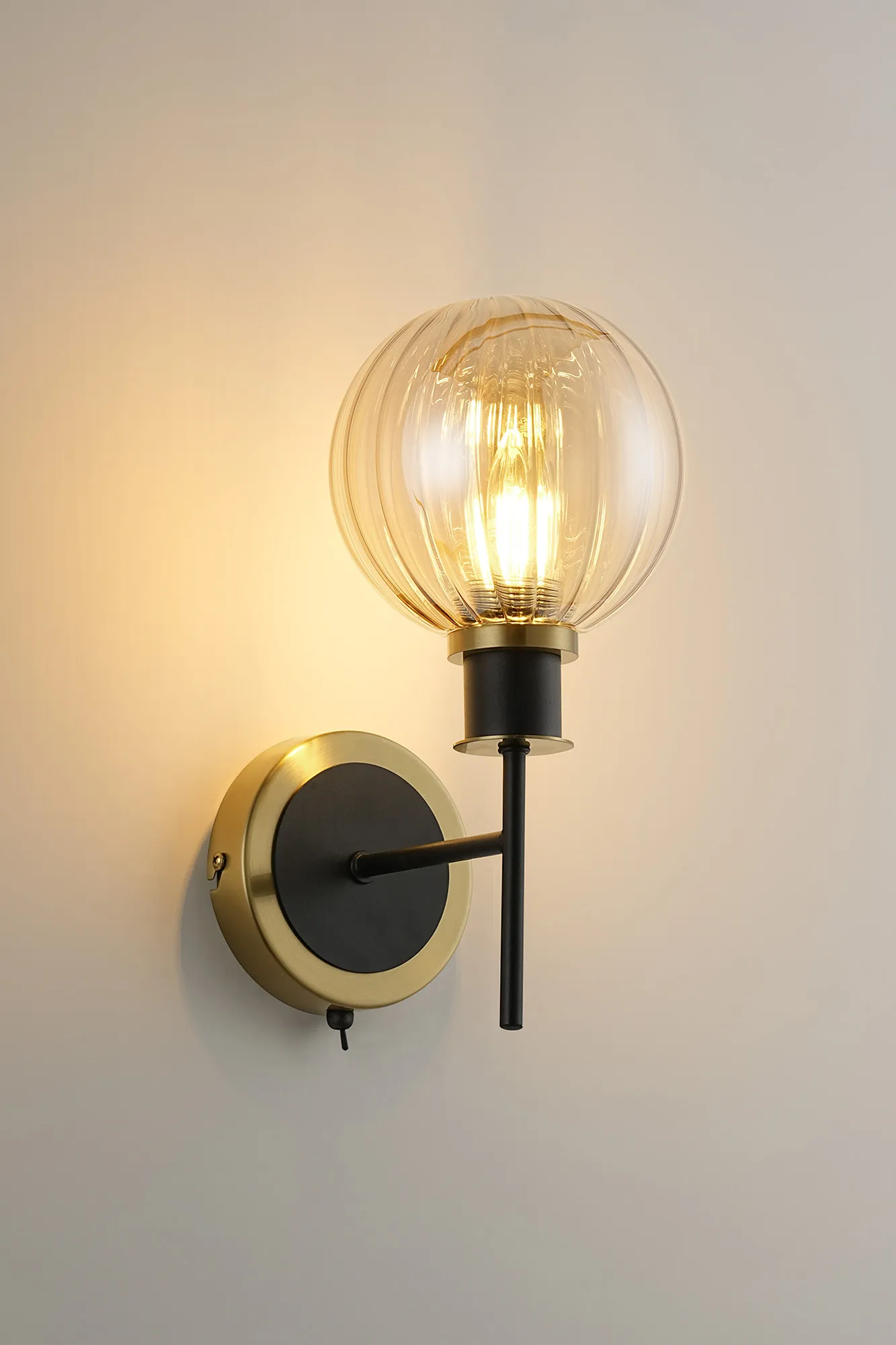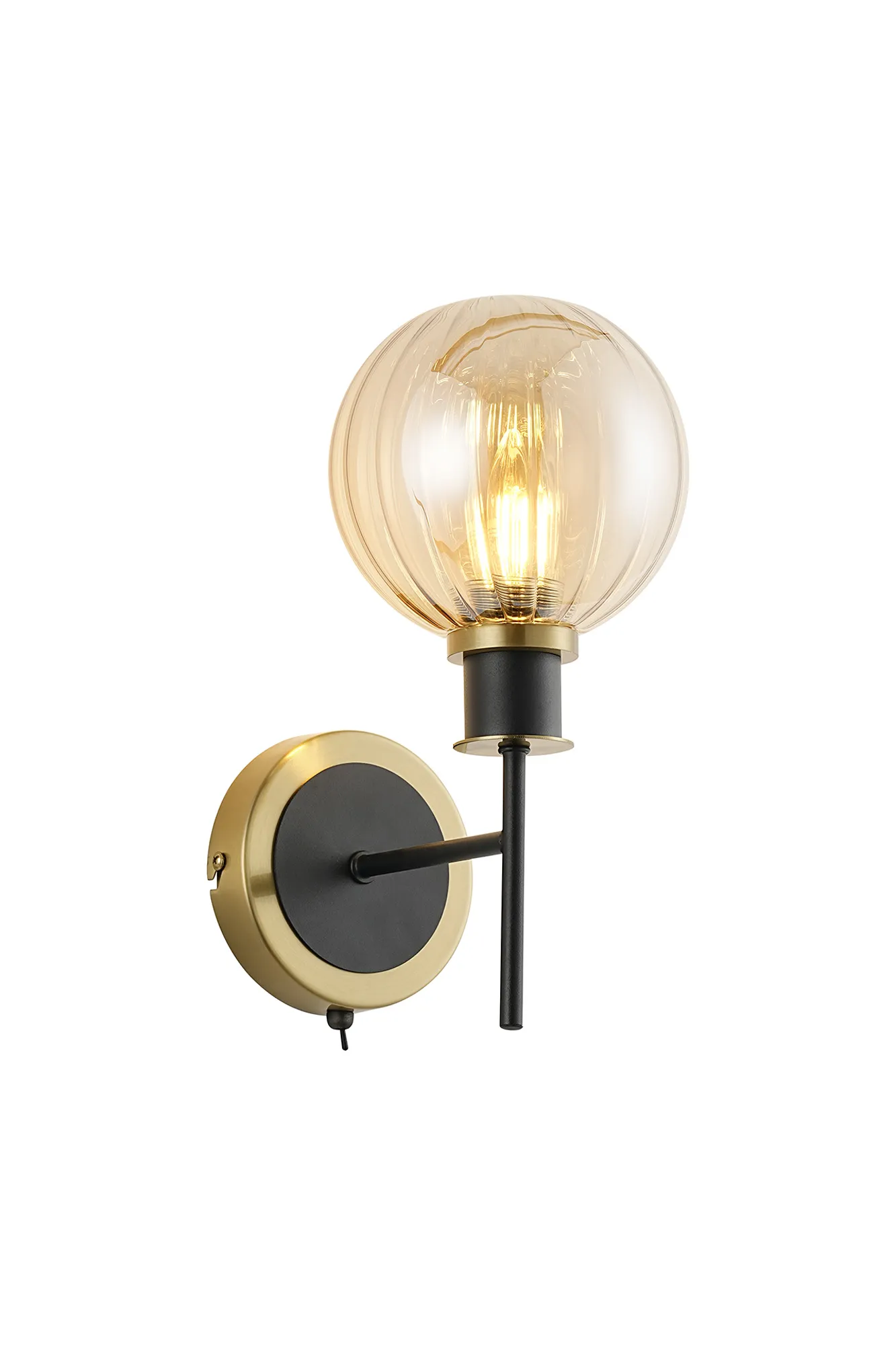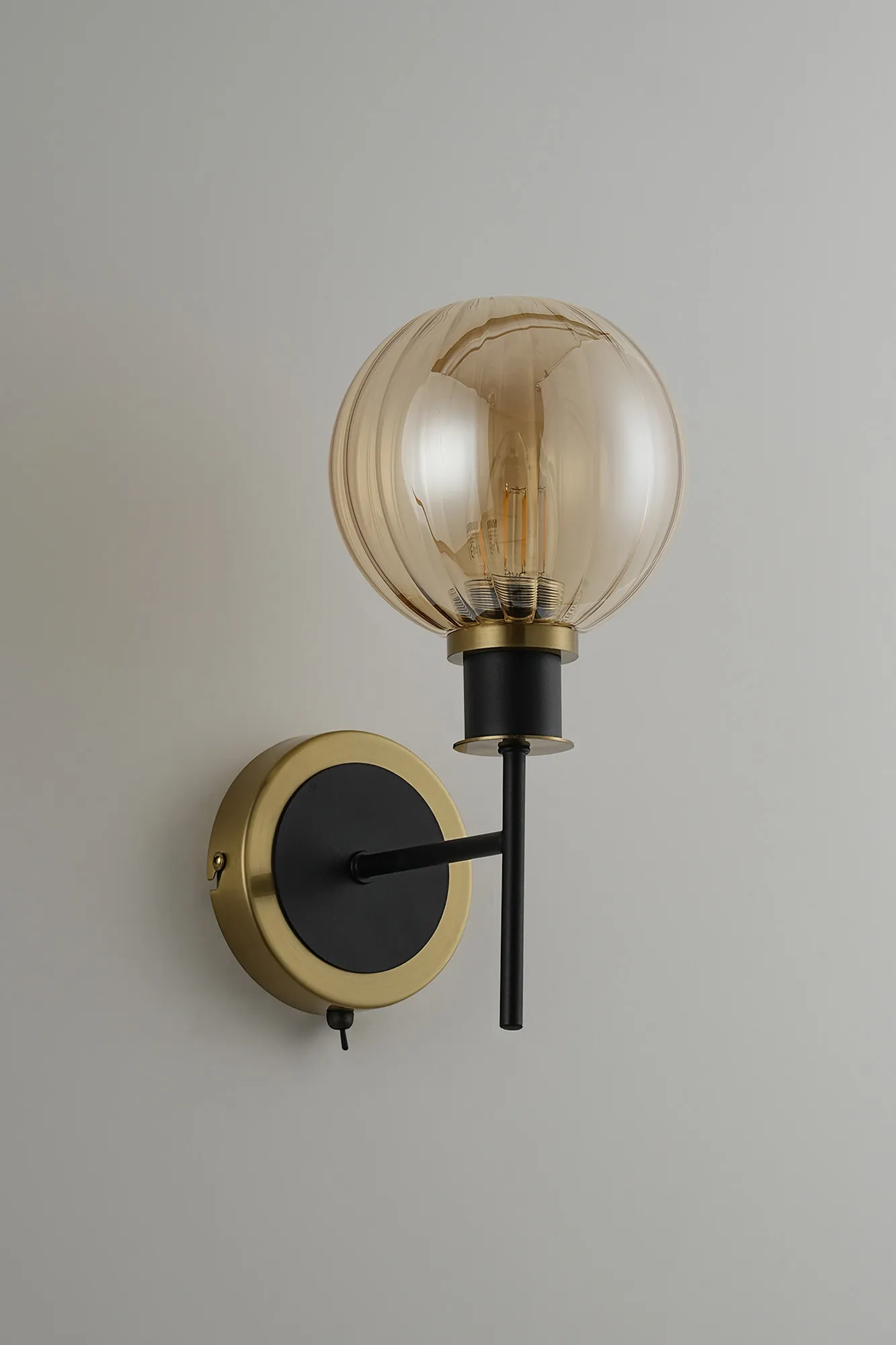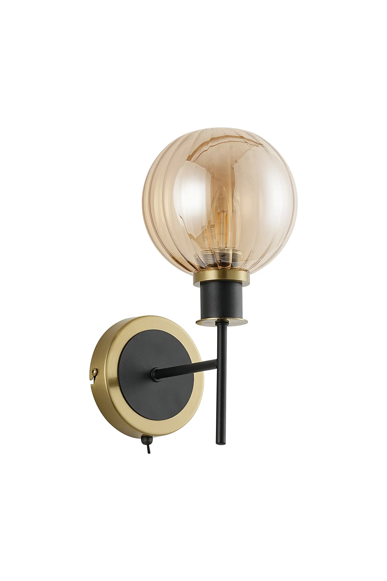 OTHER Fernie Switched Wall Light, 1 x E14 With 15cm Round Segment Glass Shade, Brass, Amber Plated & Satin Black