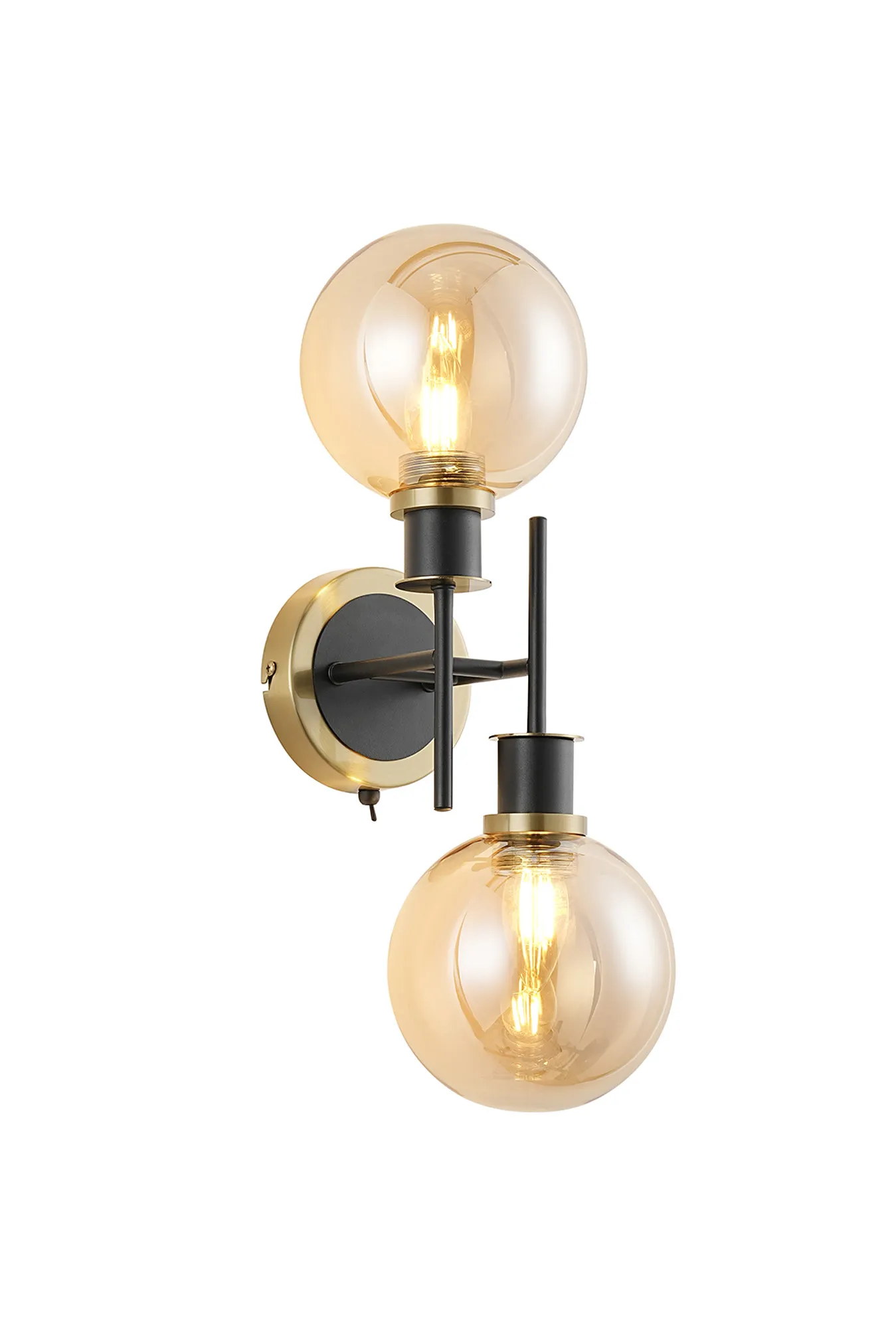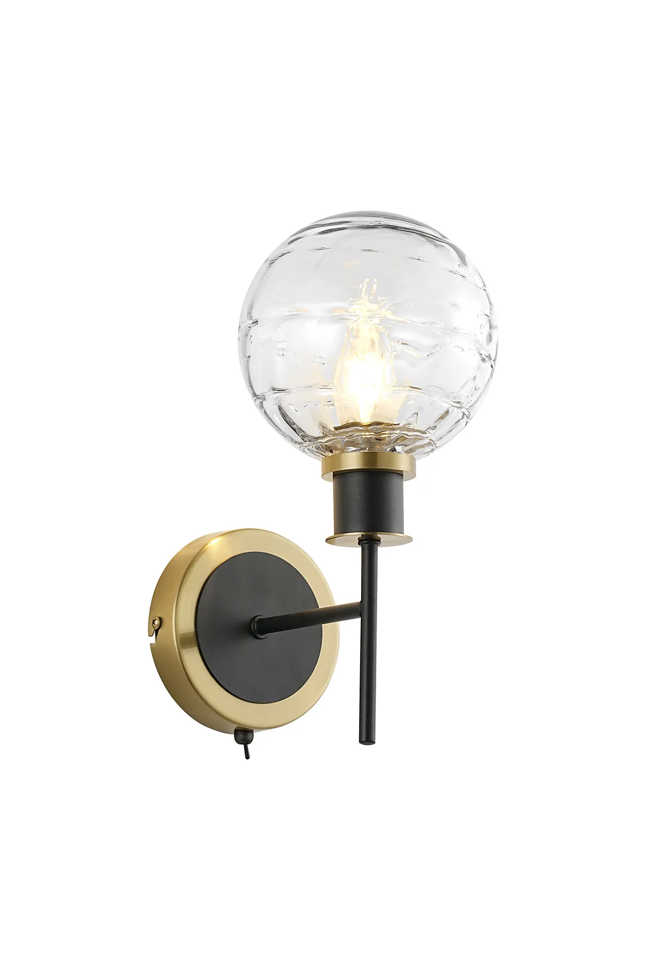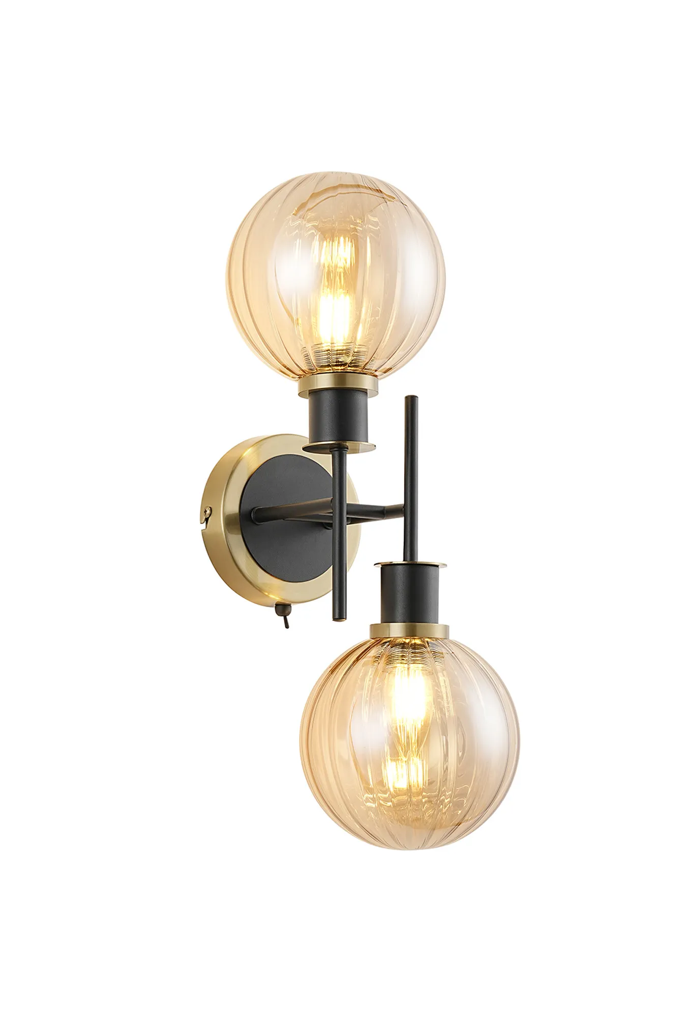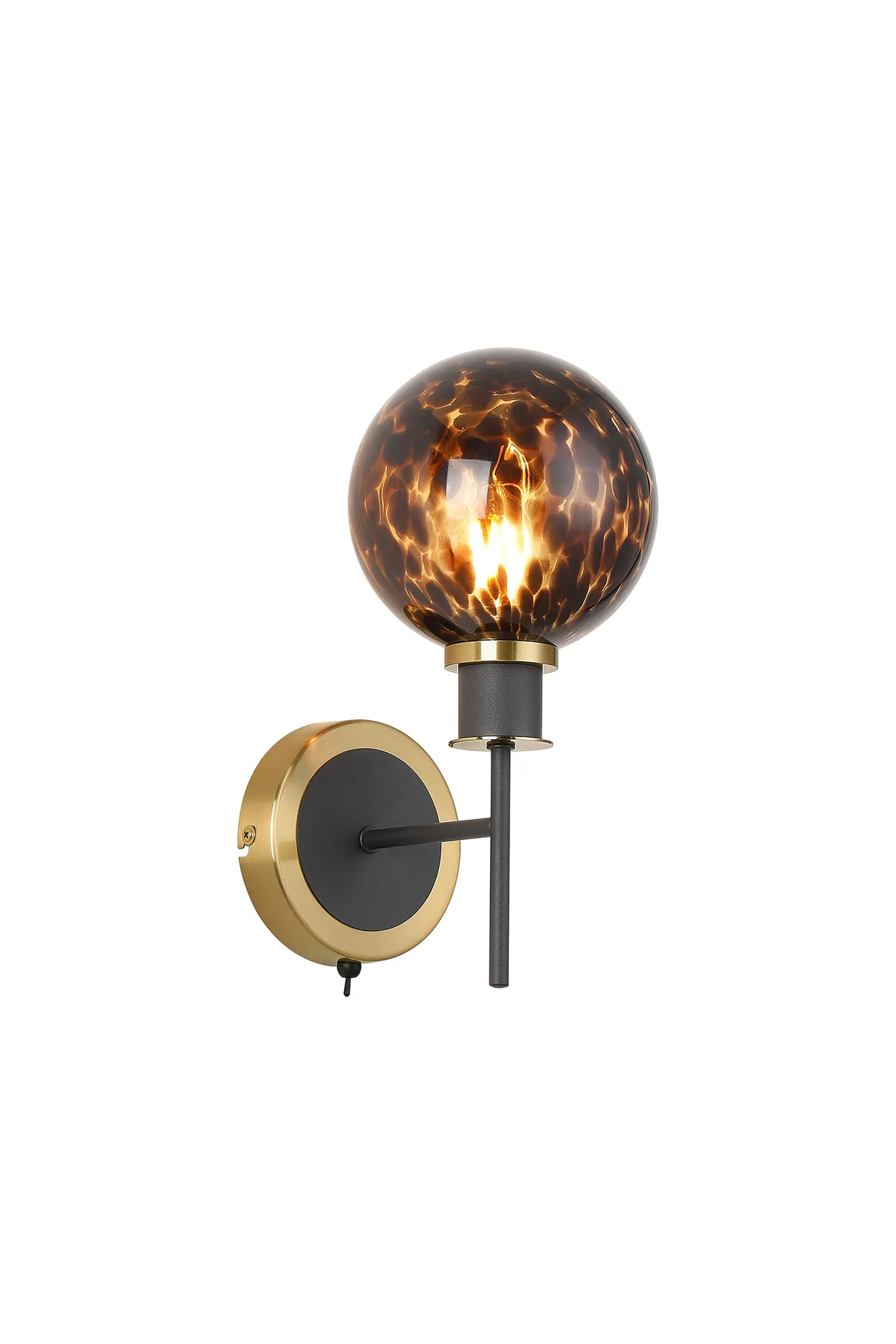 OTHER Fernie Switched Wall Light, 1 x E14 With 15cm Round Segment Glass Shade, Brass, Amber Plated & Satin Black