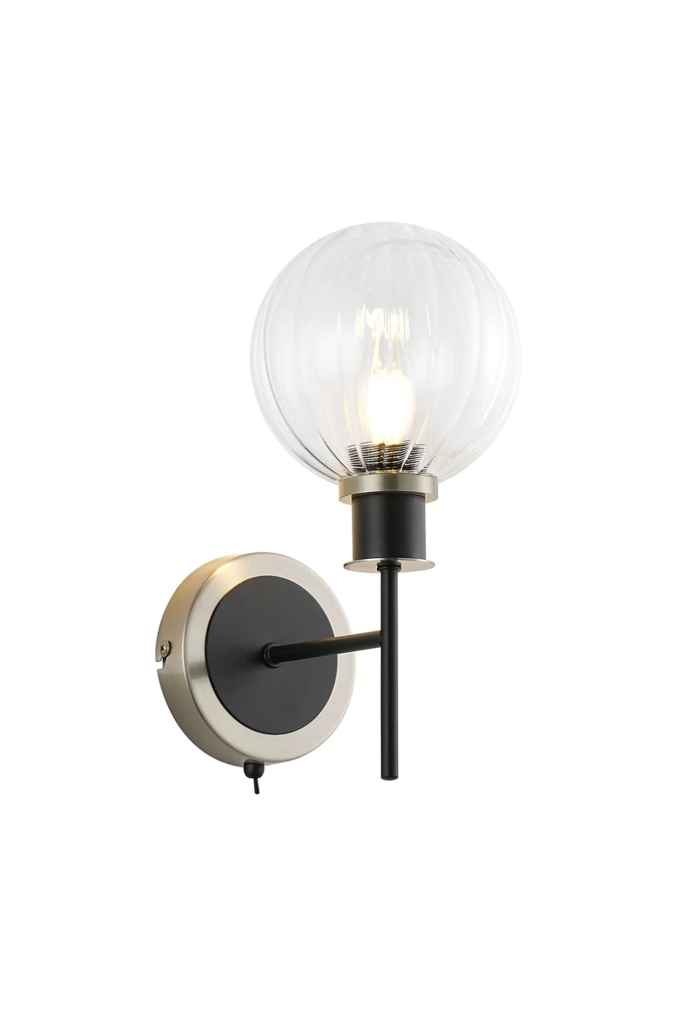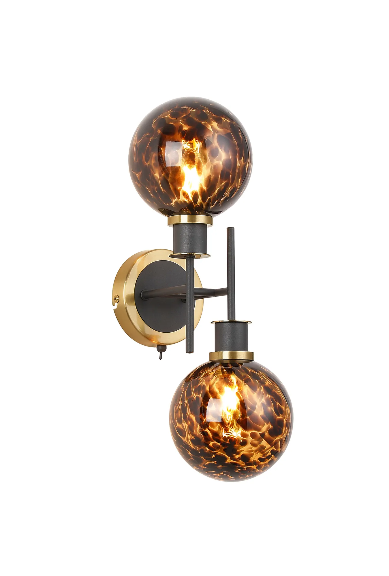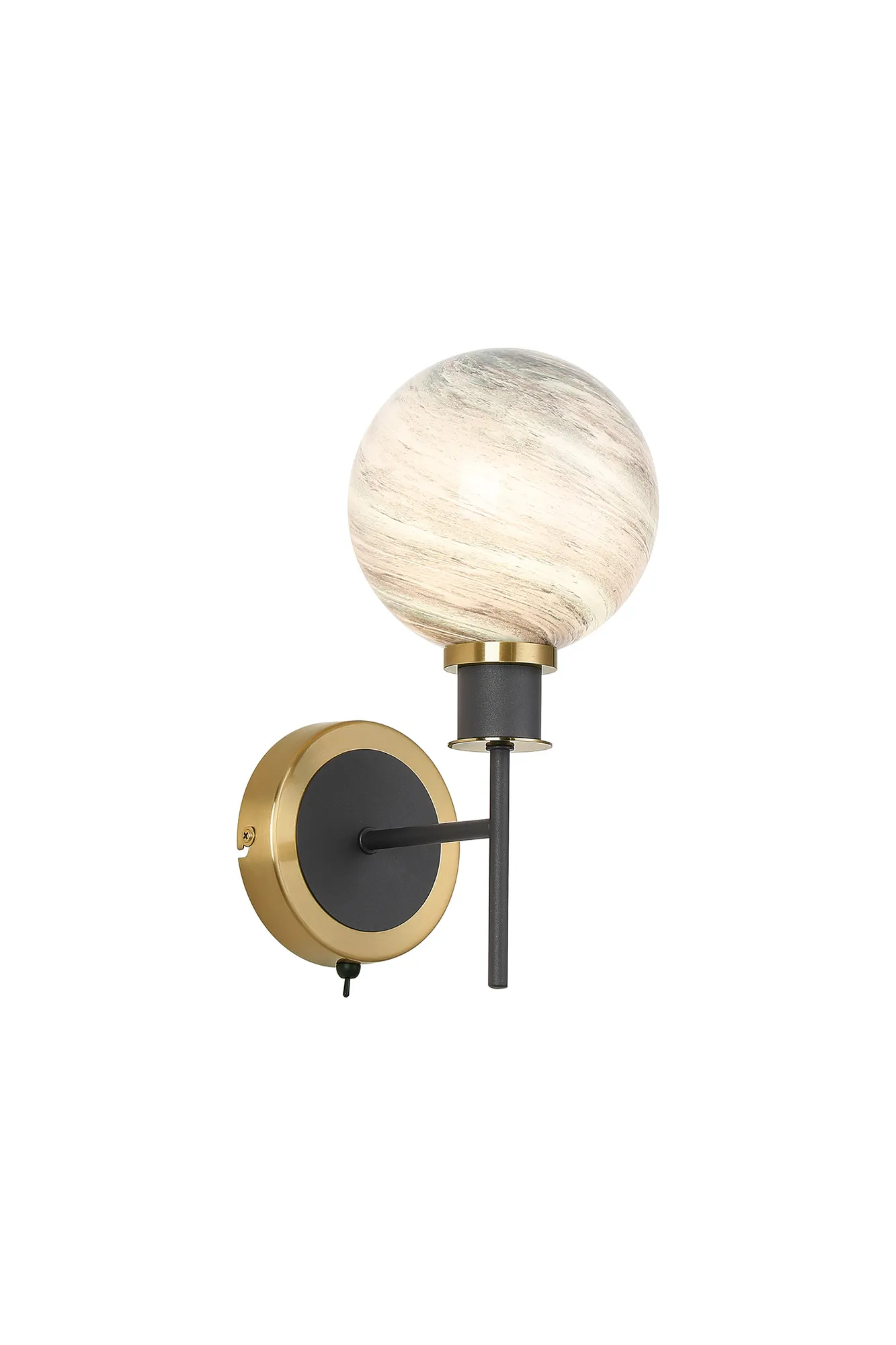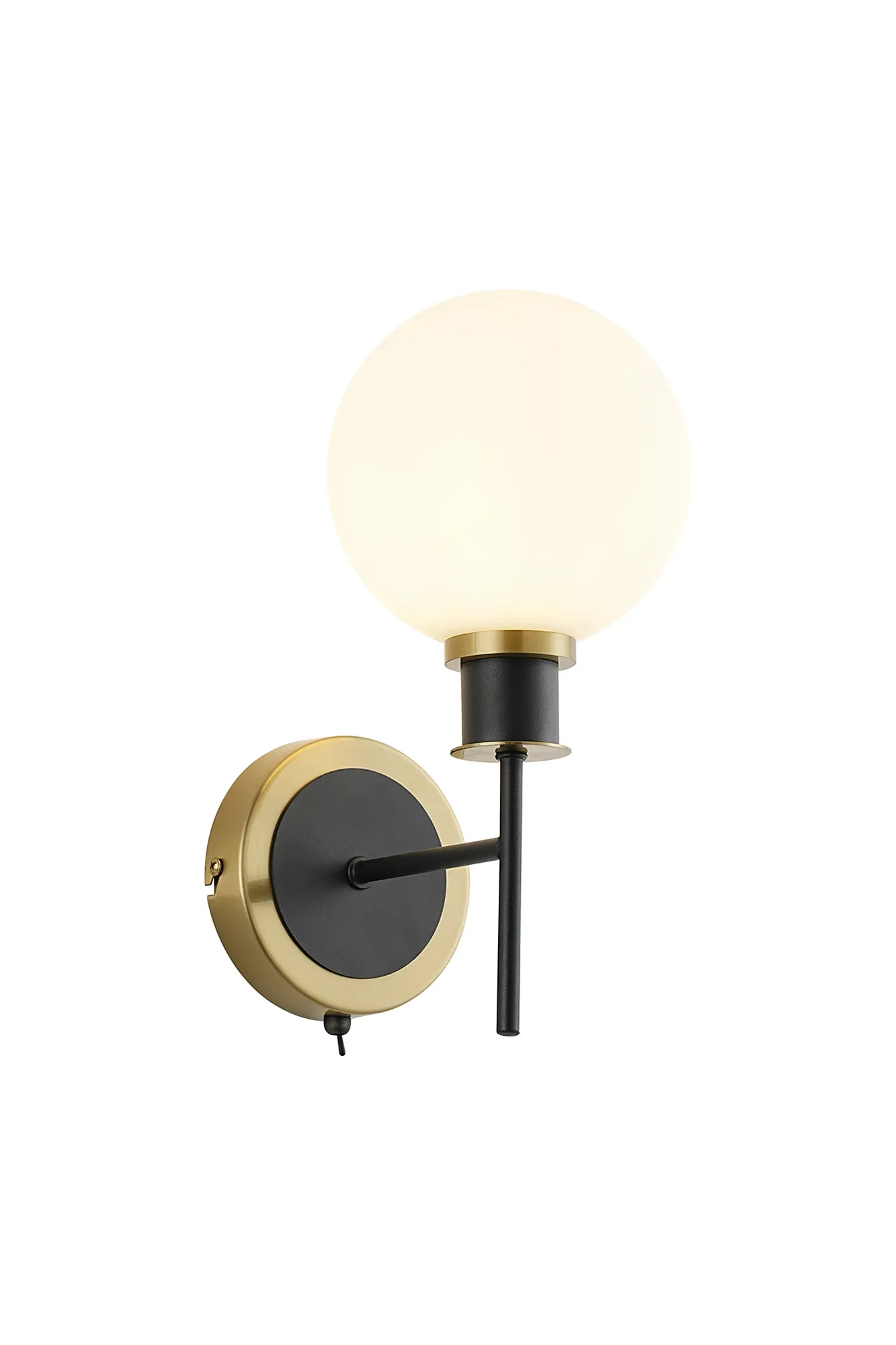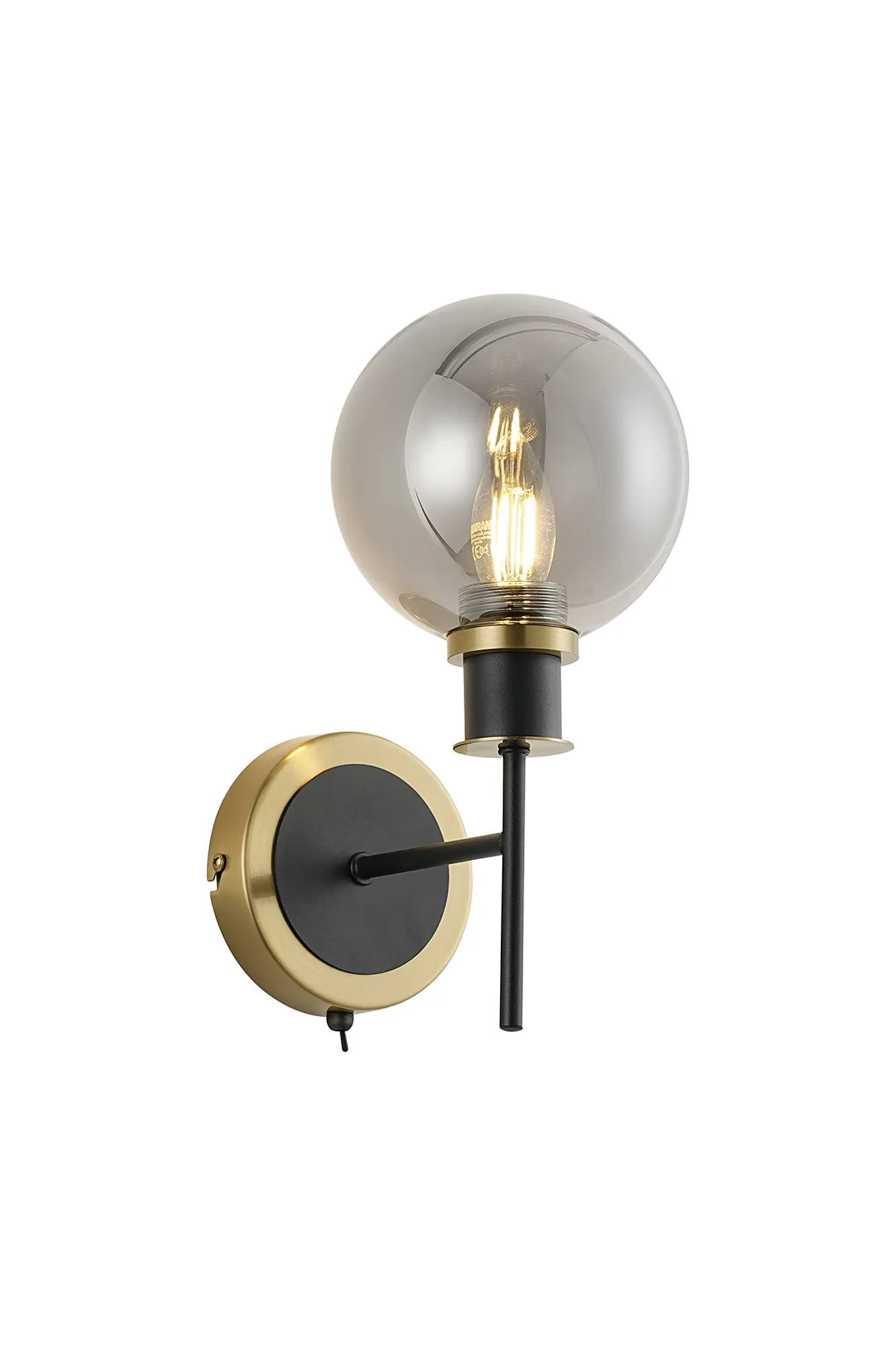 OTHER Fernie Switched Wall Light, 1 x E14 With 15cm Round Segment Glass Shade, Brass, Amber Plated & Satin Black