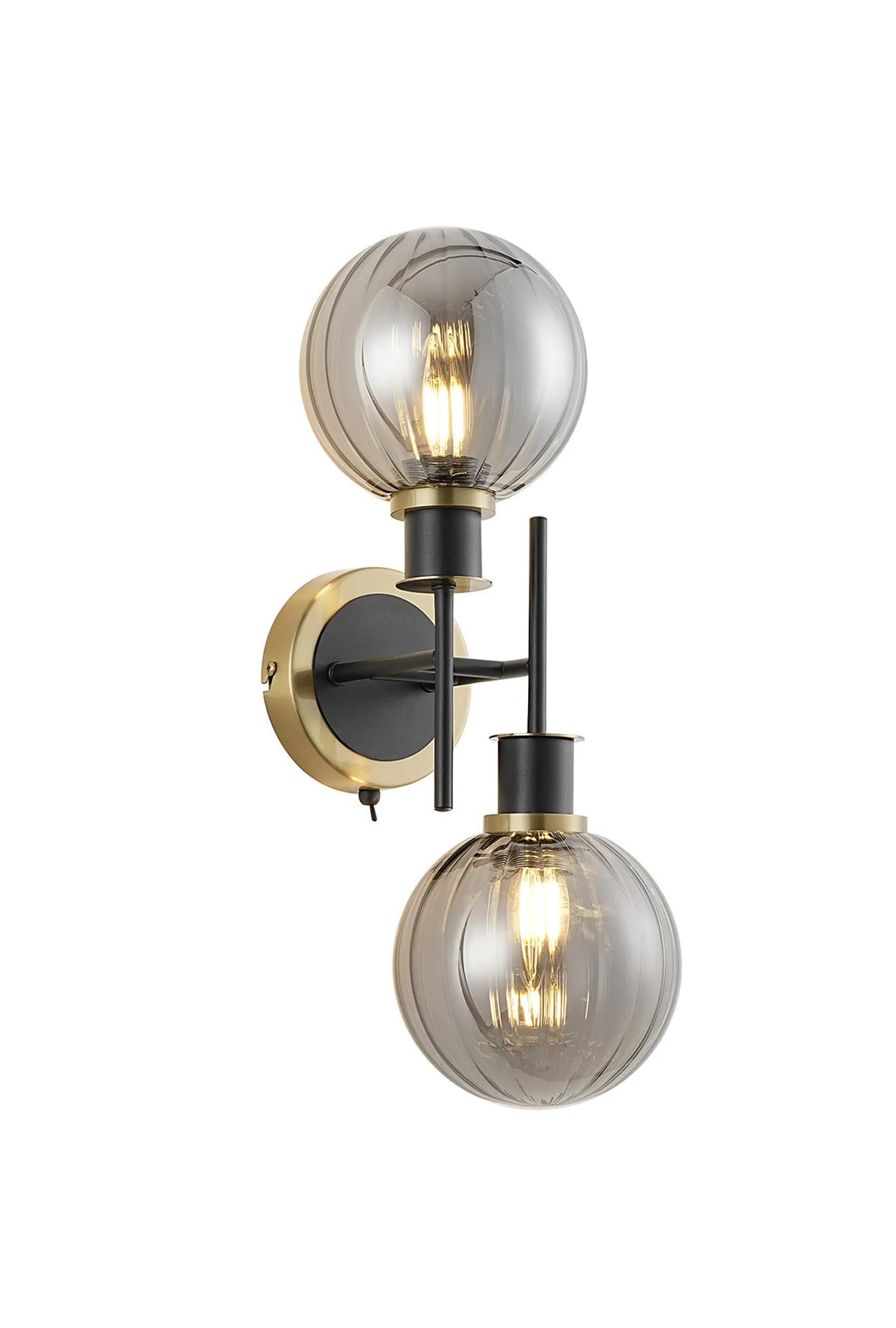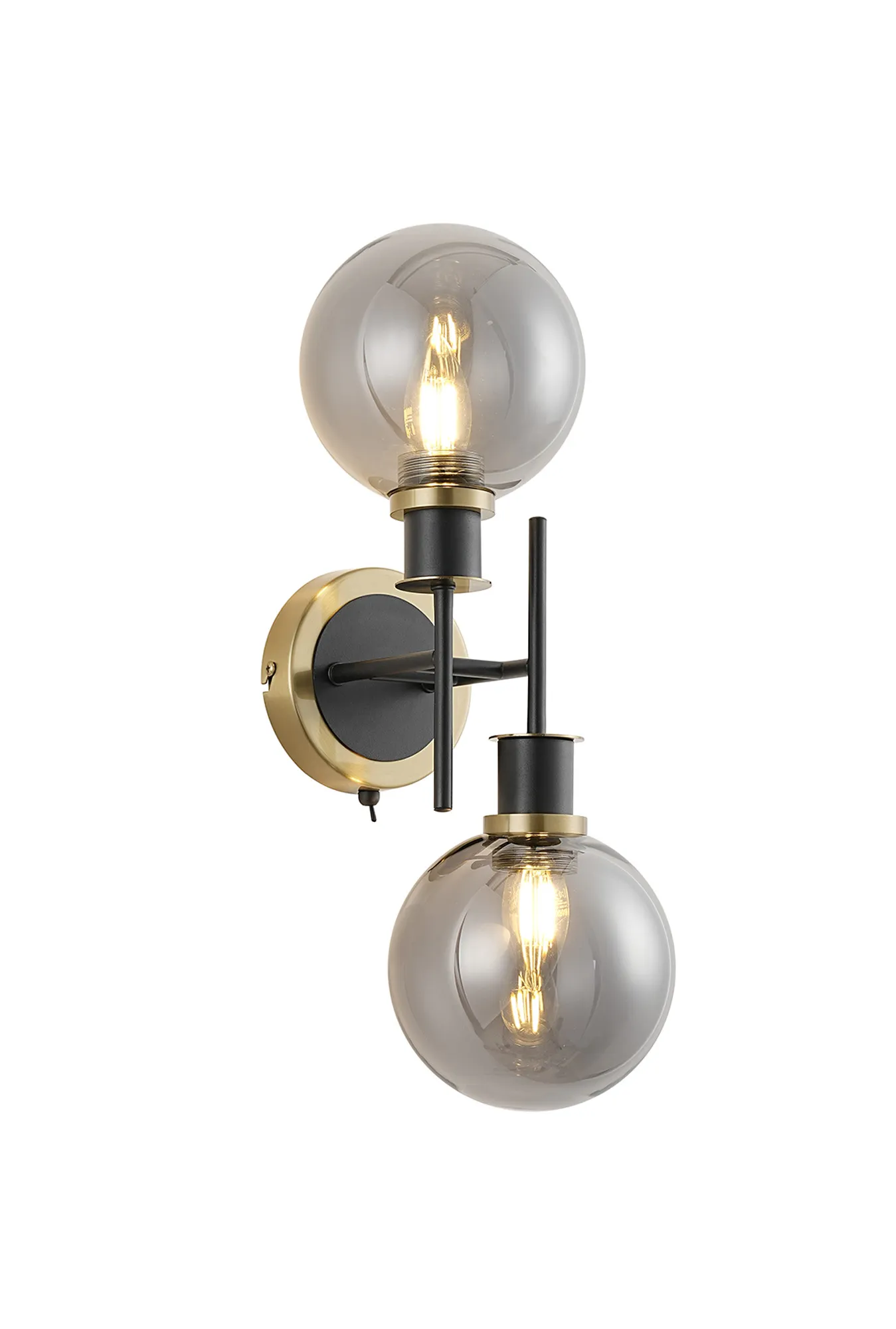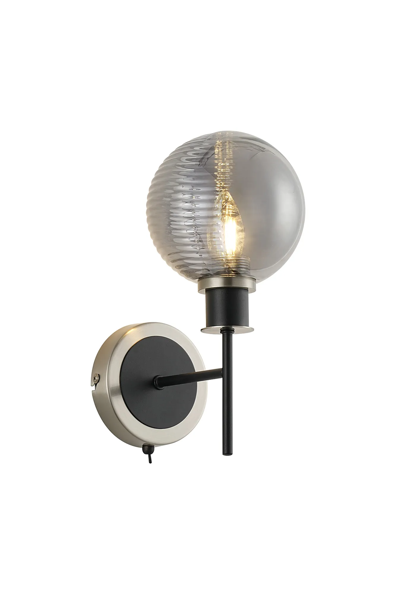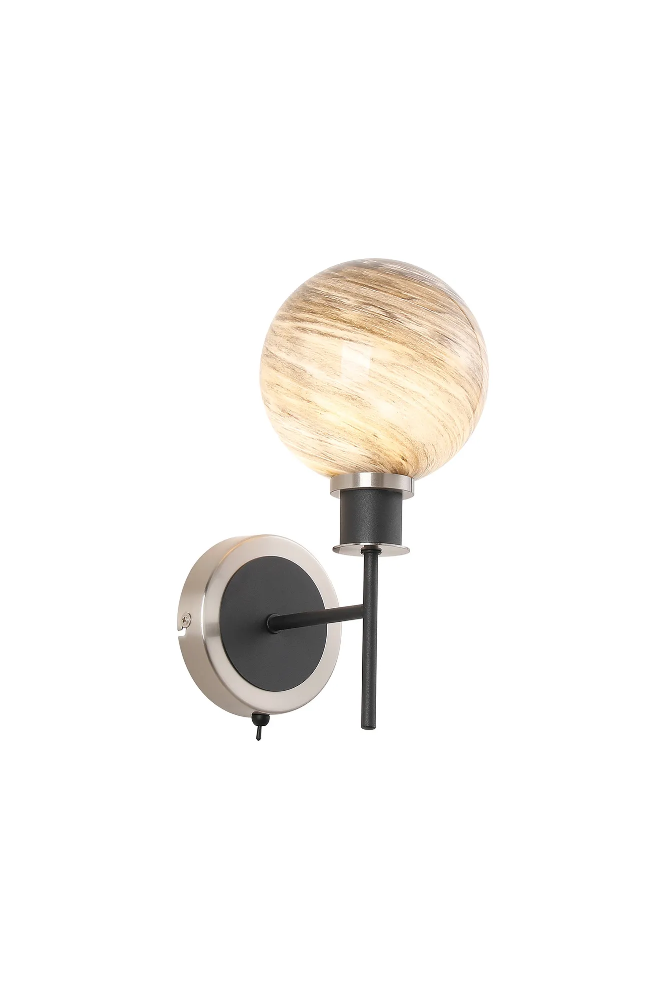 OTHER Fernie Switched Wall Light, 1 x E14 With 15cm Round Segment Glass Shade, Brass, Amber Plated & Satin Black