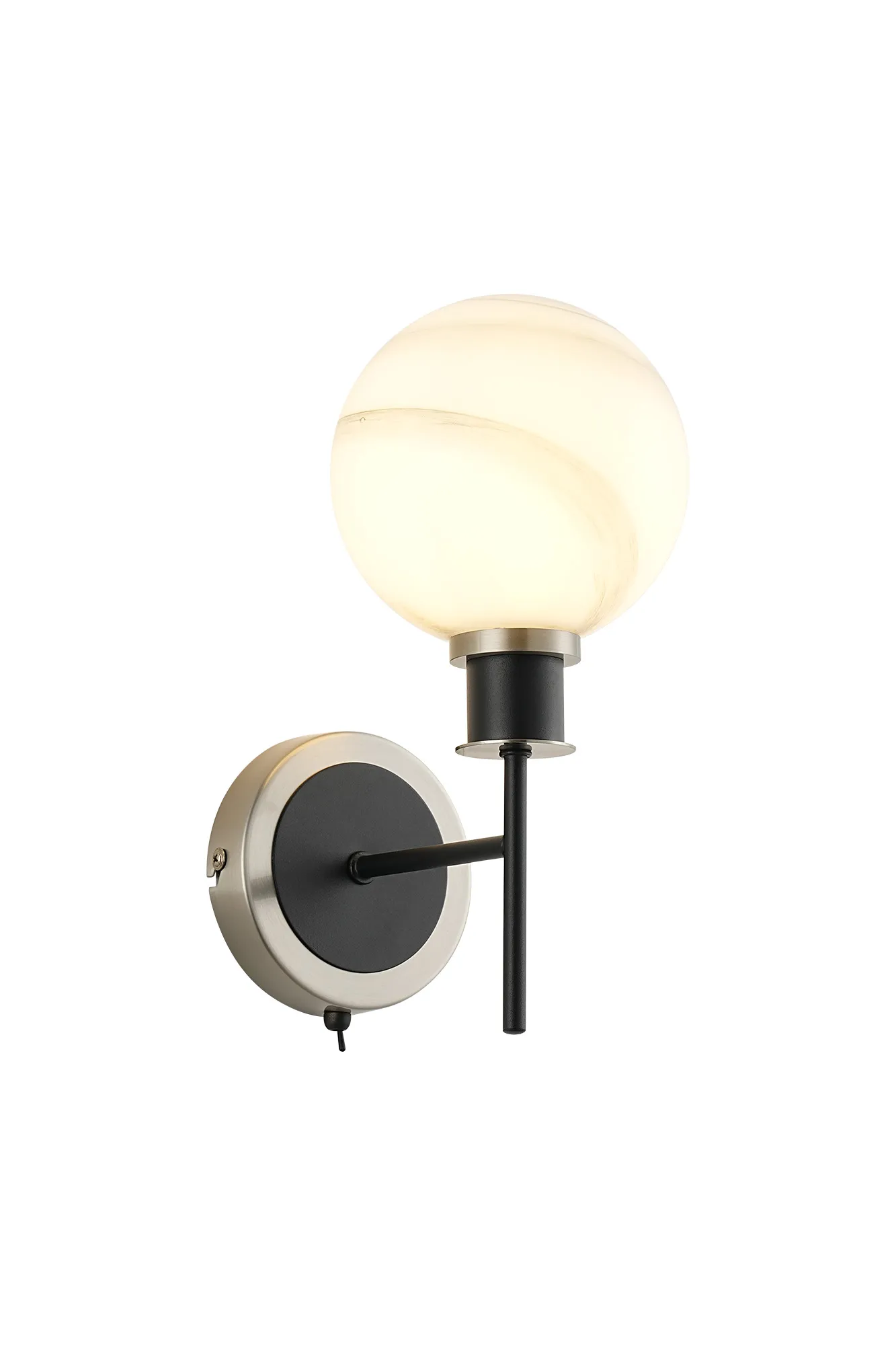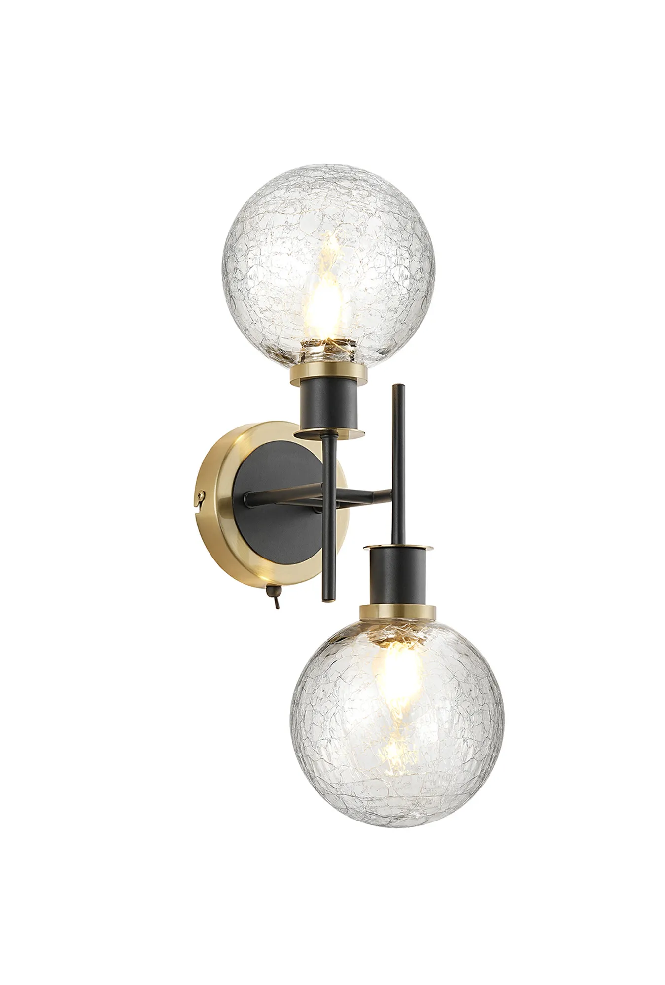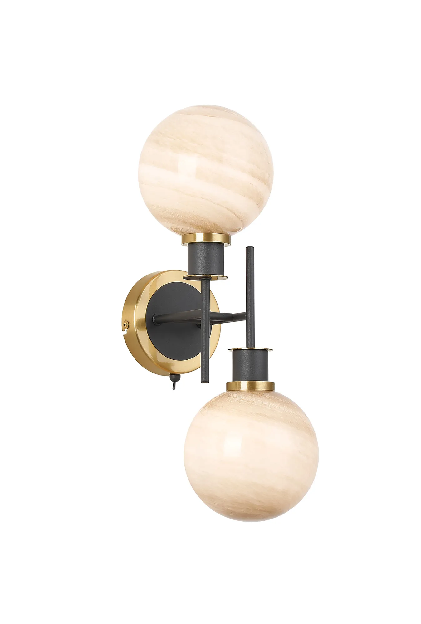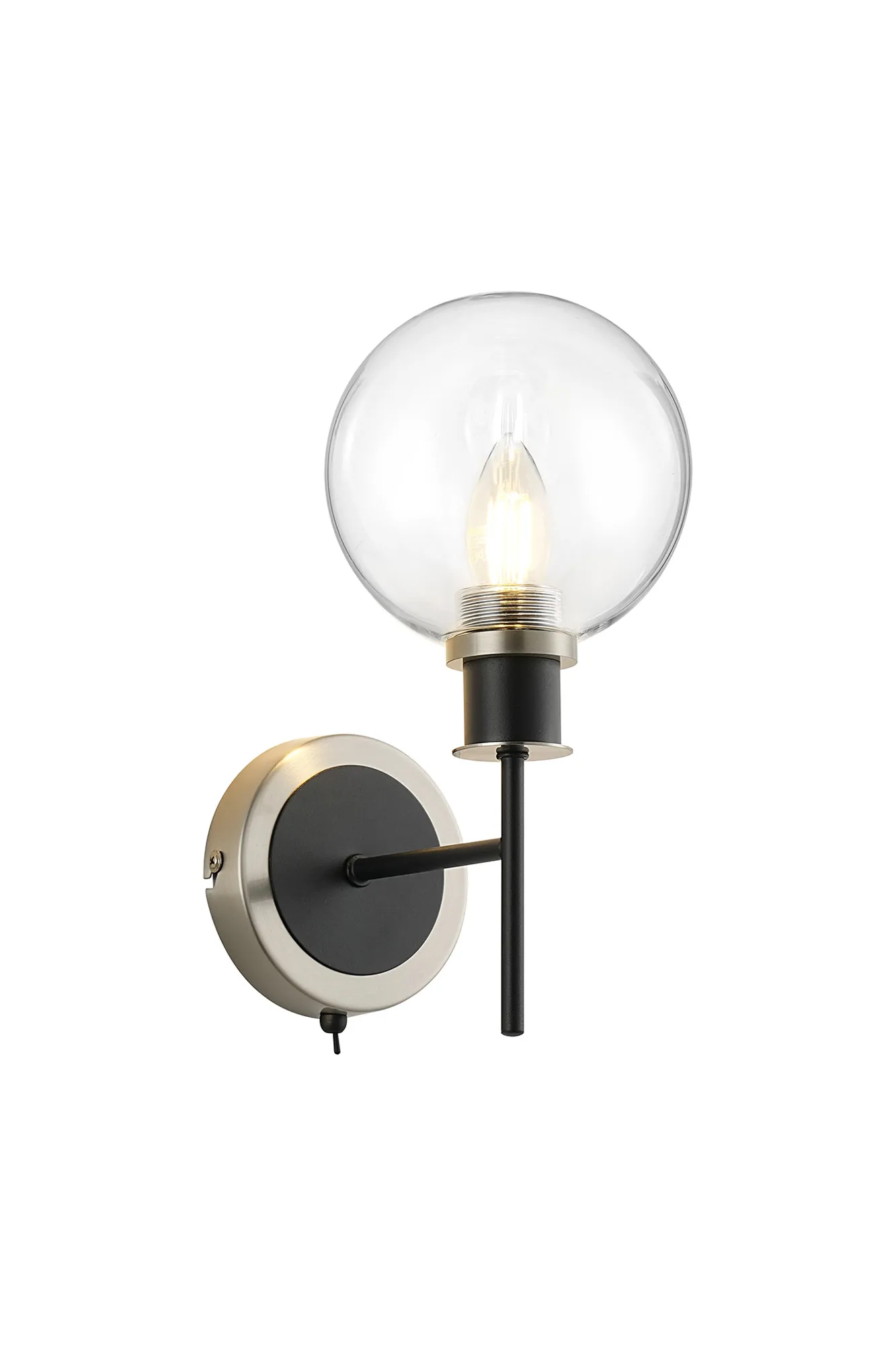 OTHER Fernie Switched Wall Light, 1 x E14 With 15cm Round Segment Glass Shade, Brass, Amber Plated & Satin Black