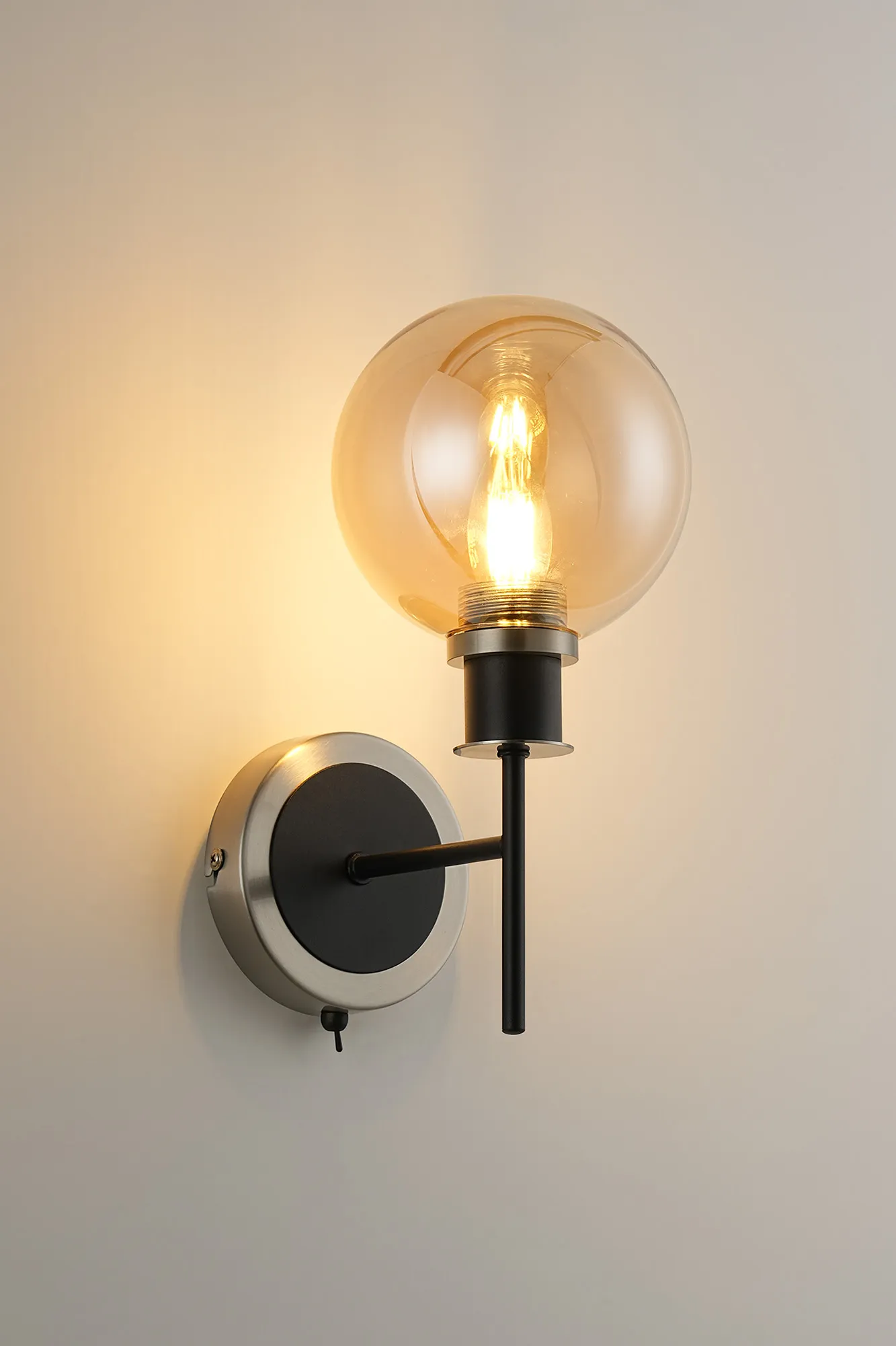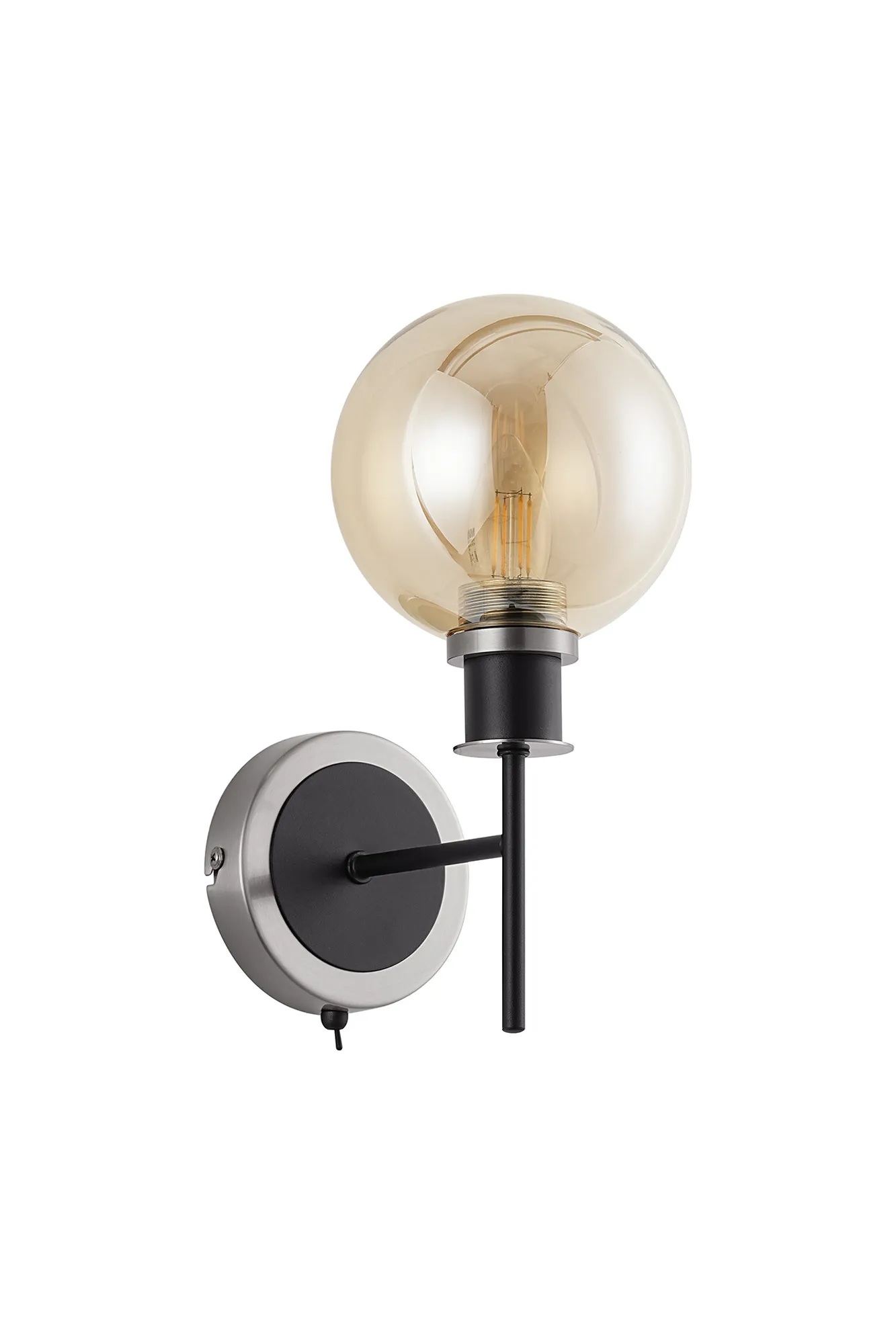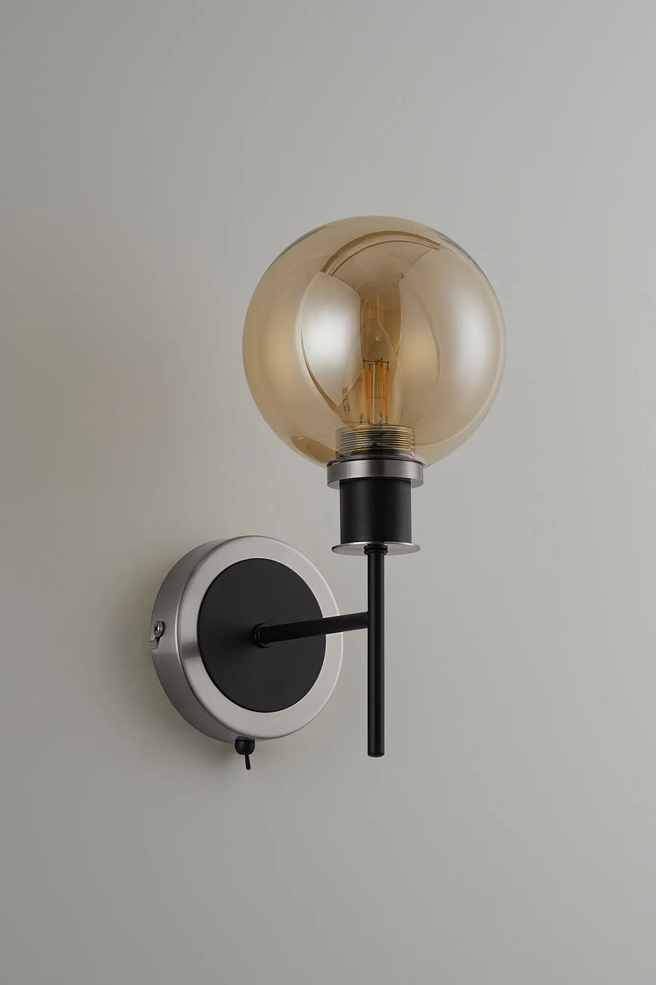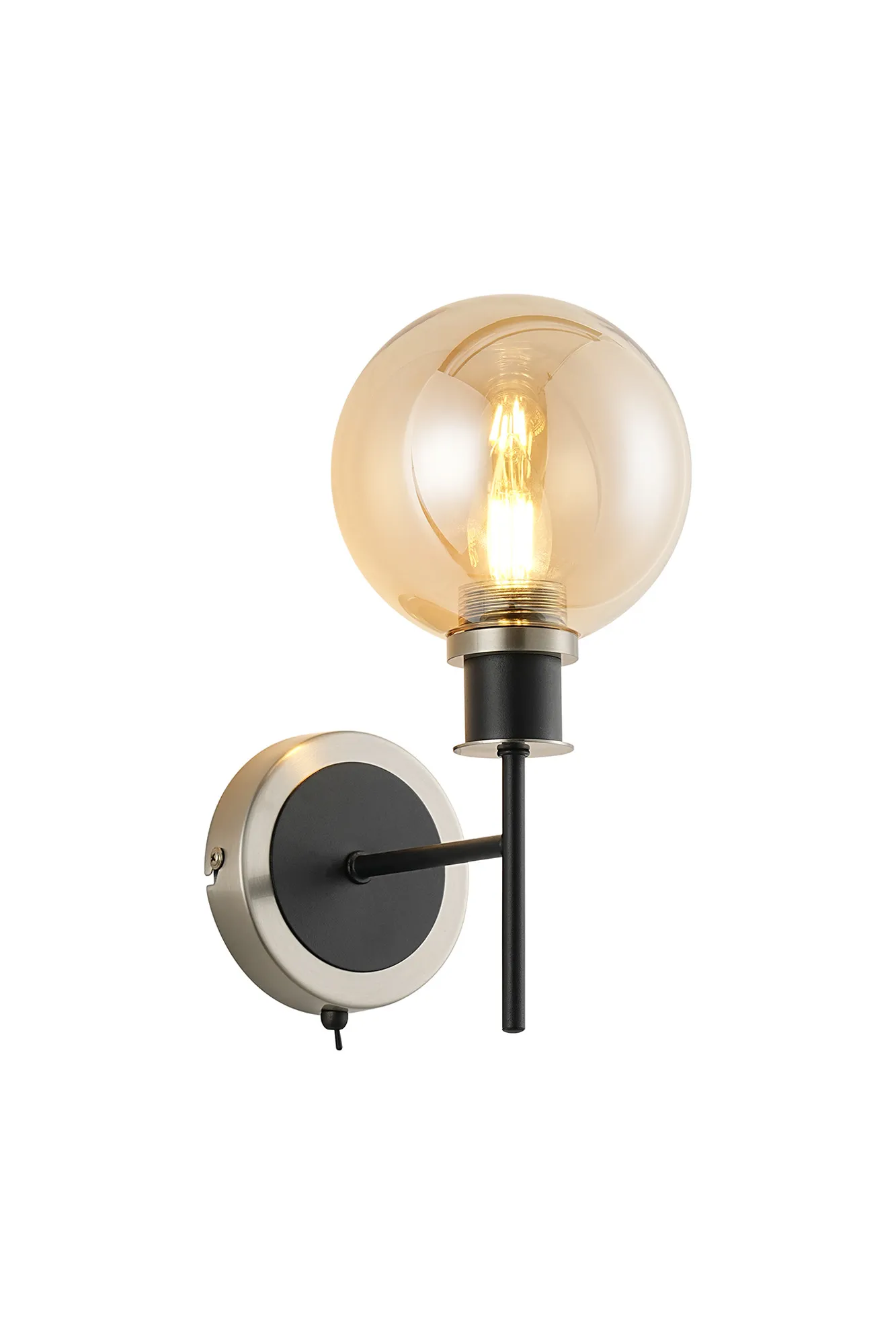 OTHER Fernie Switched Wall Light, 1 x E14 With 15cm Round Glass Shade, Satin Nickel, Amber Plated & Satin Black