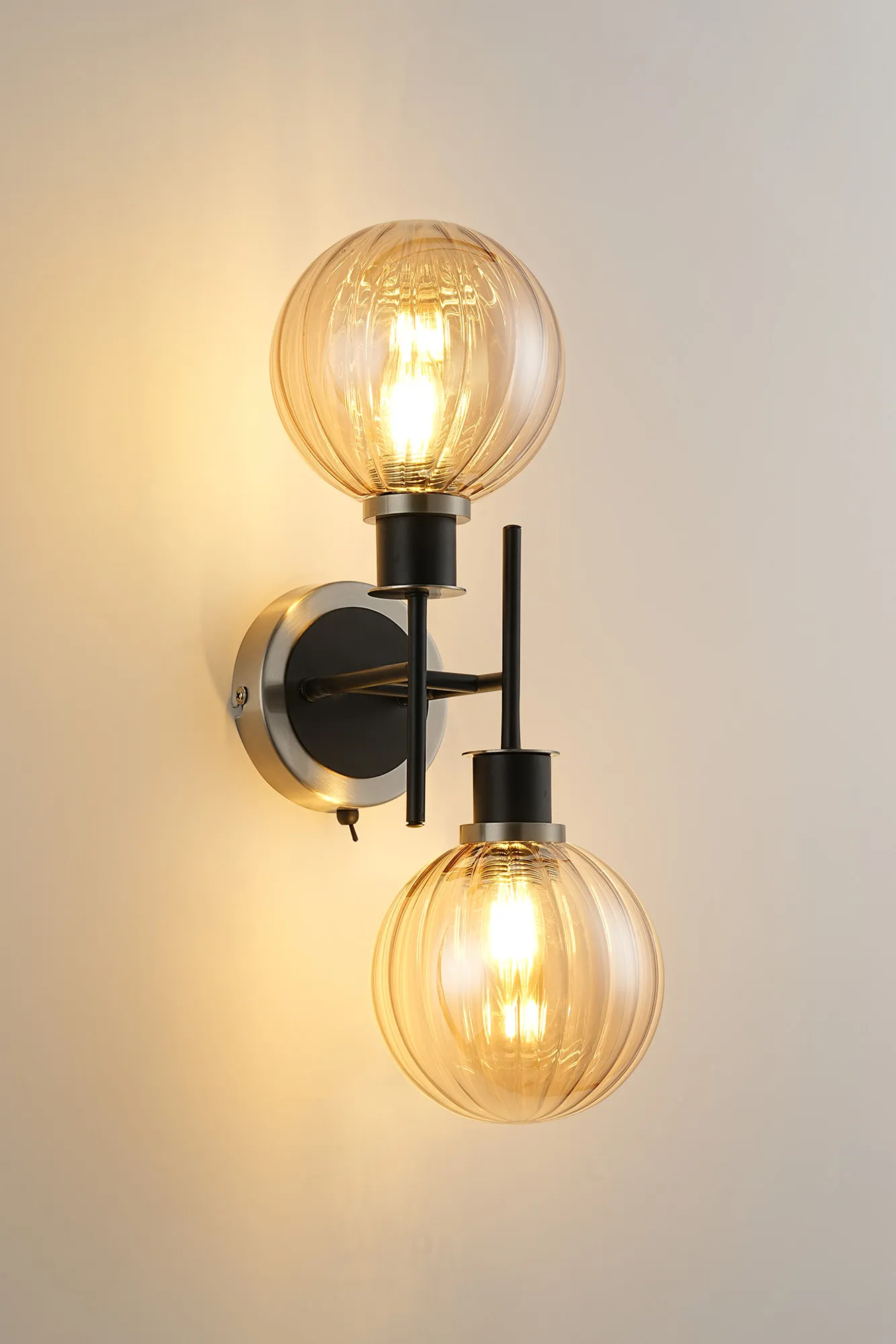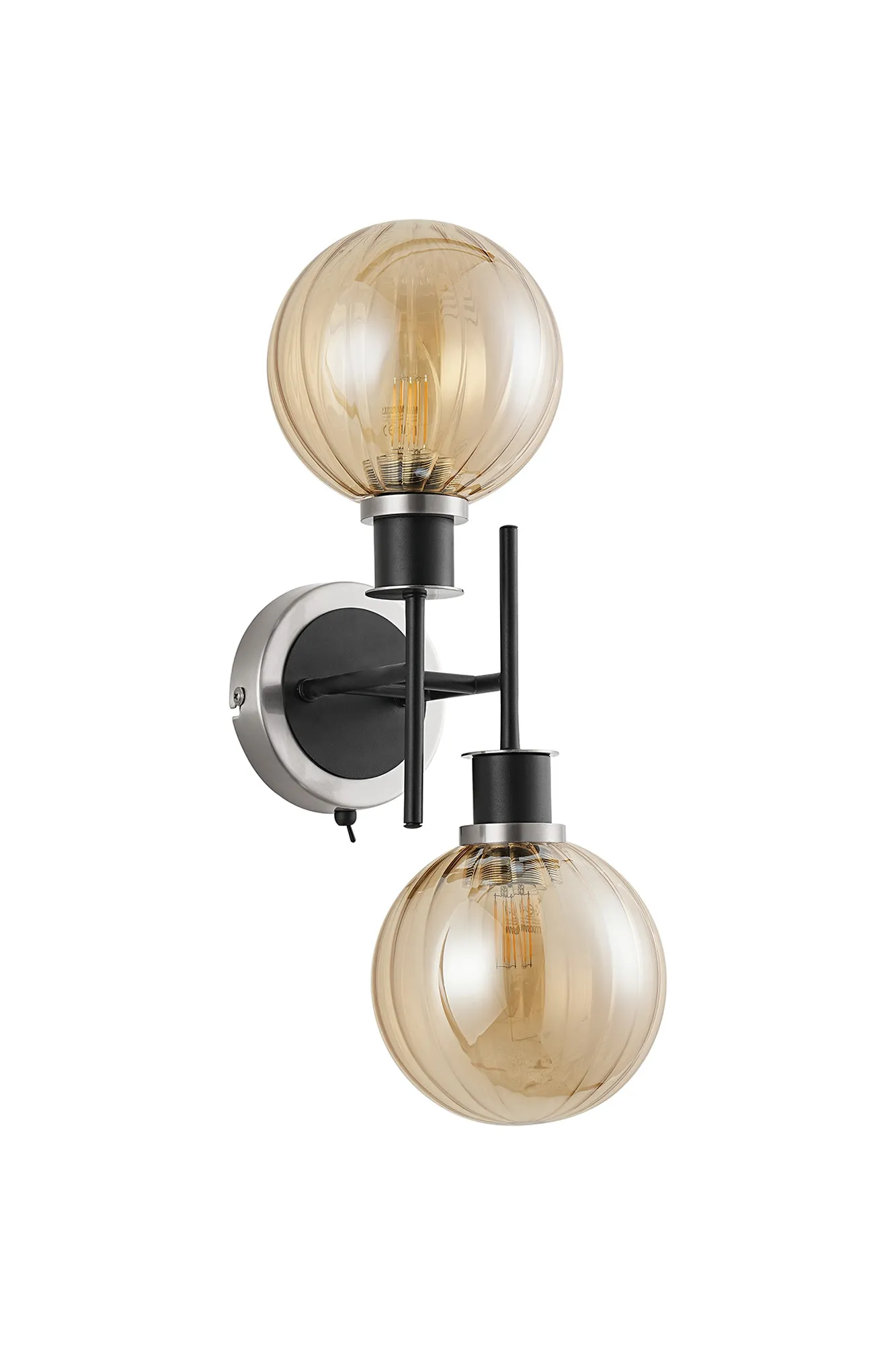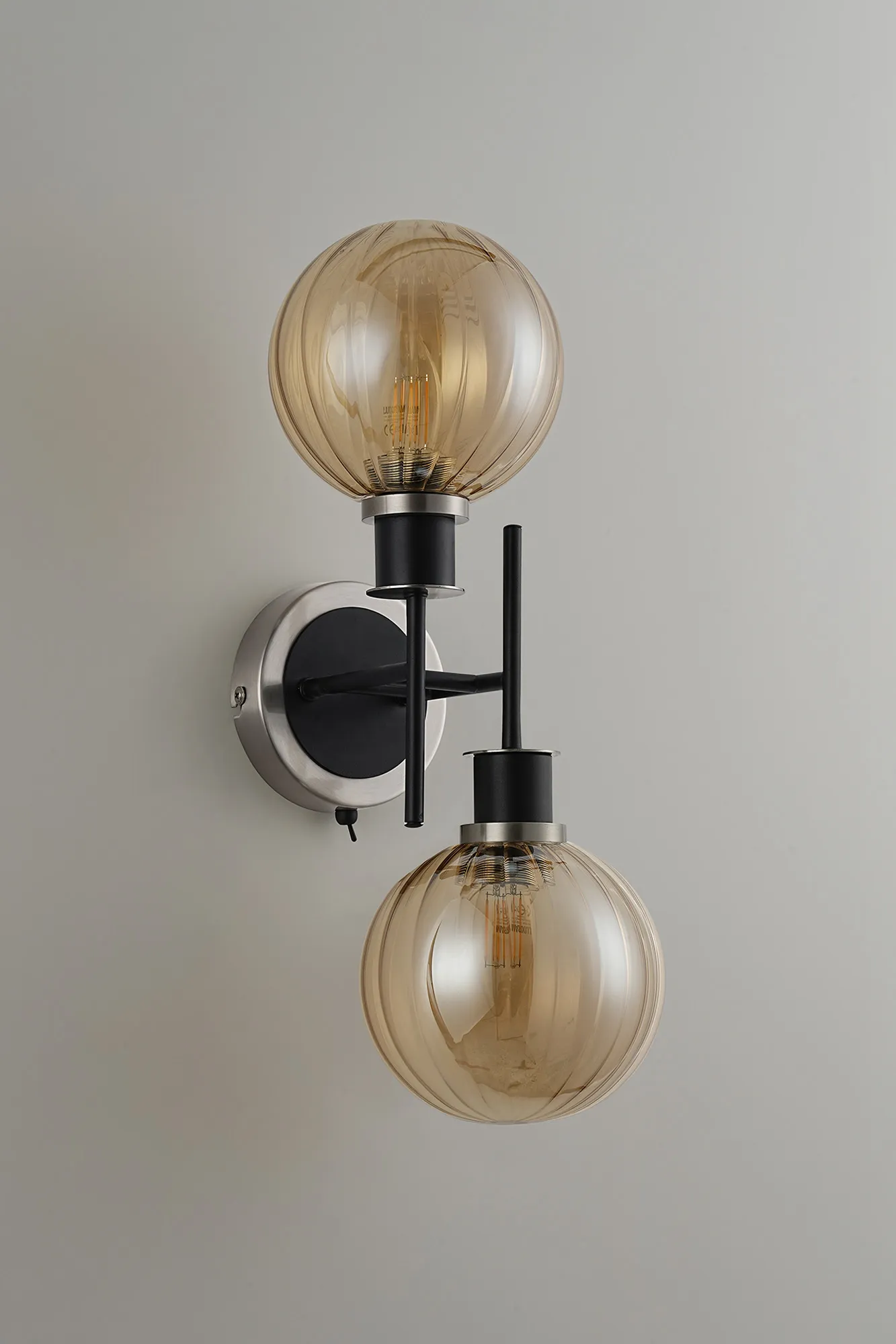 OTHER Fernie Switched Wall Light, 2 x E14 With 15cm Round Segment Glass Shade, Satin Nickel, Amber Plated & Satin Black