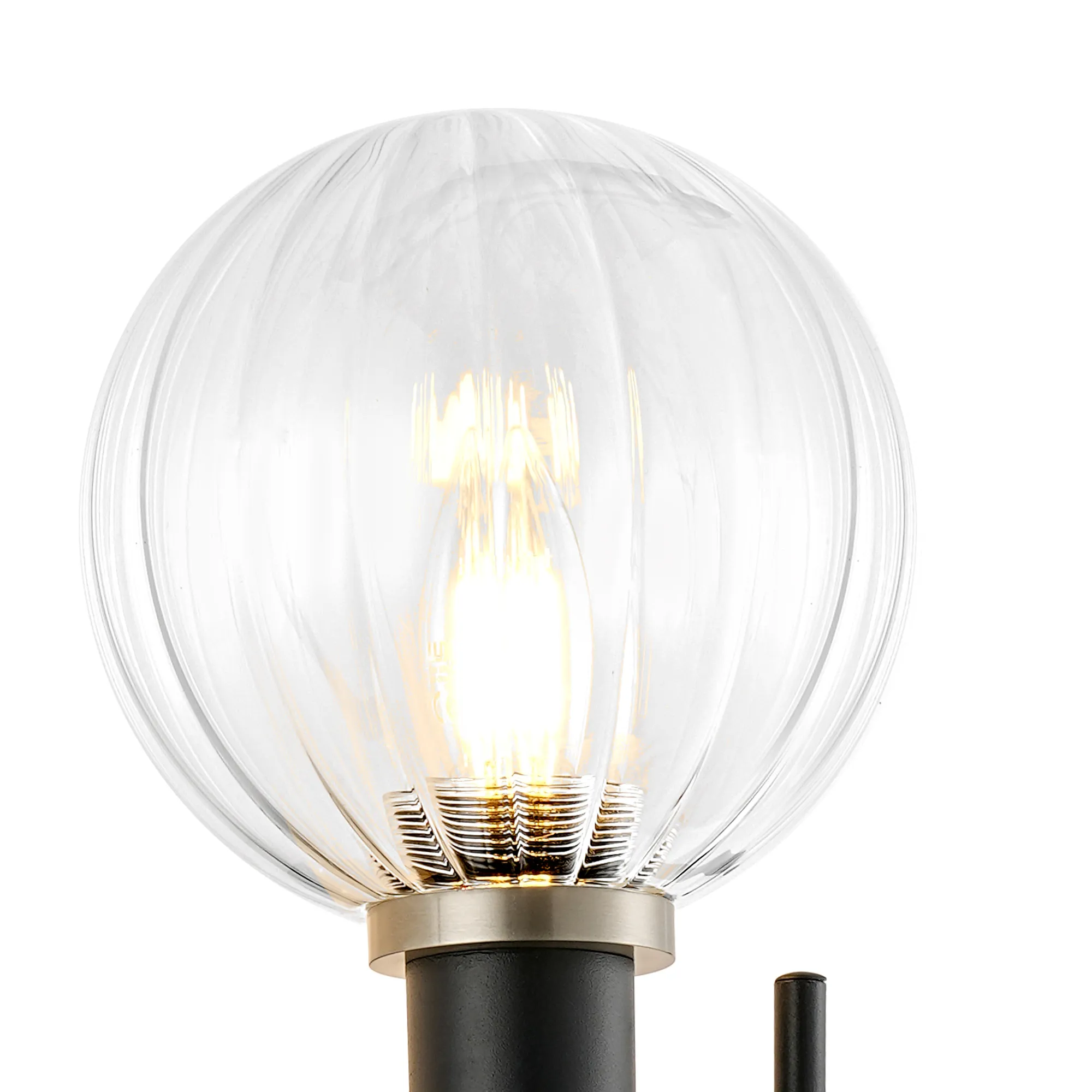 Fernie Table Lamp Touch Switch, 3 Light E14, With 15cm Round Segment Glass Shade Satin Nickel, Clear, Satin Black
