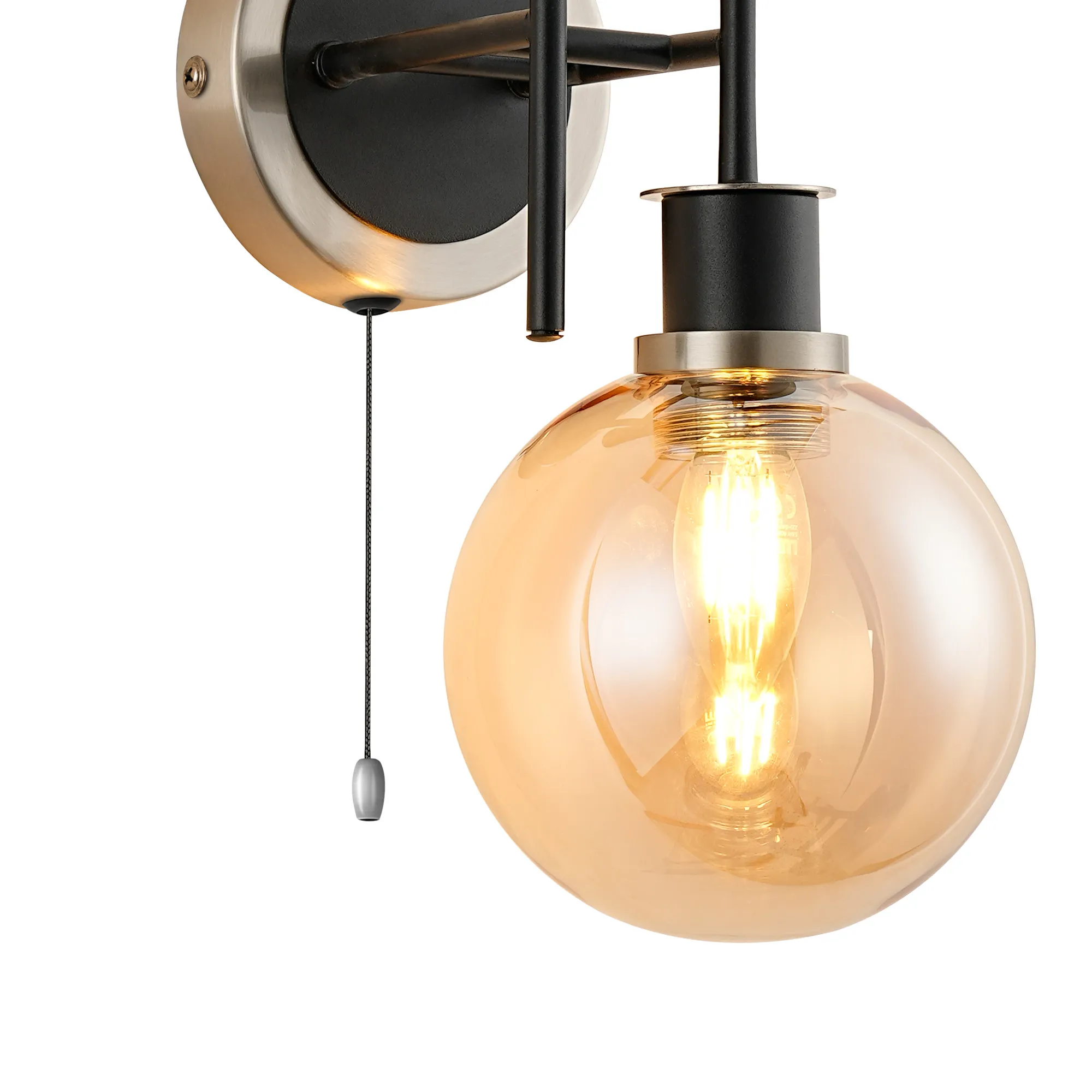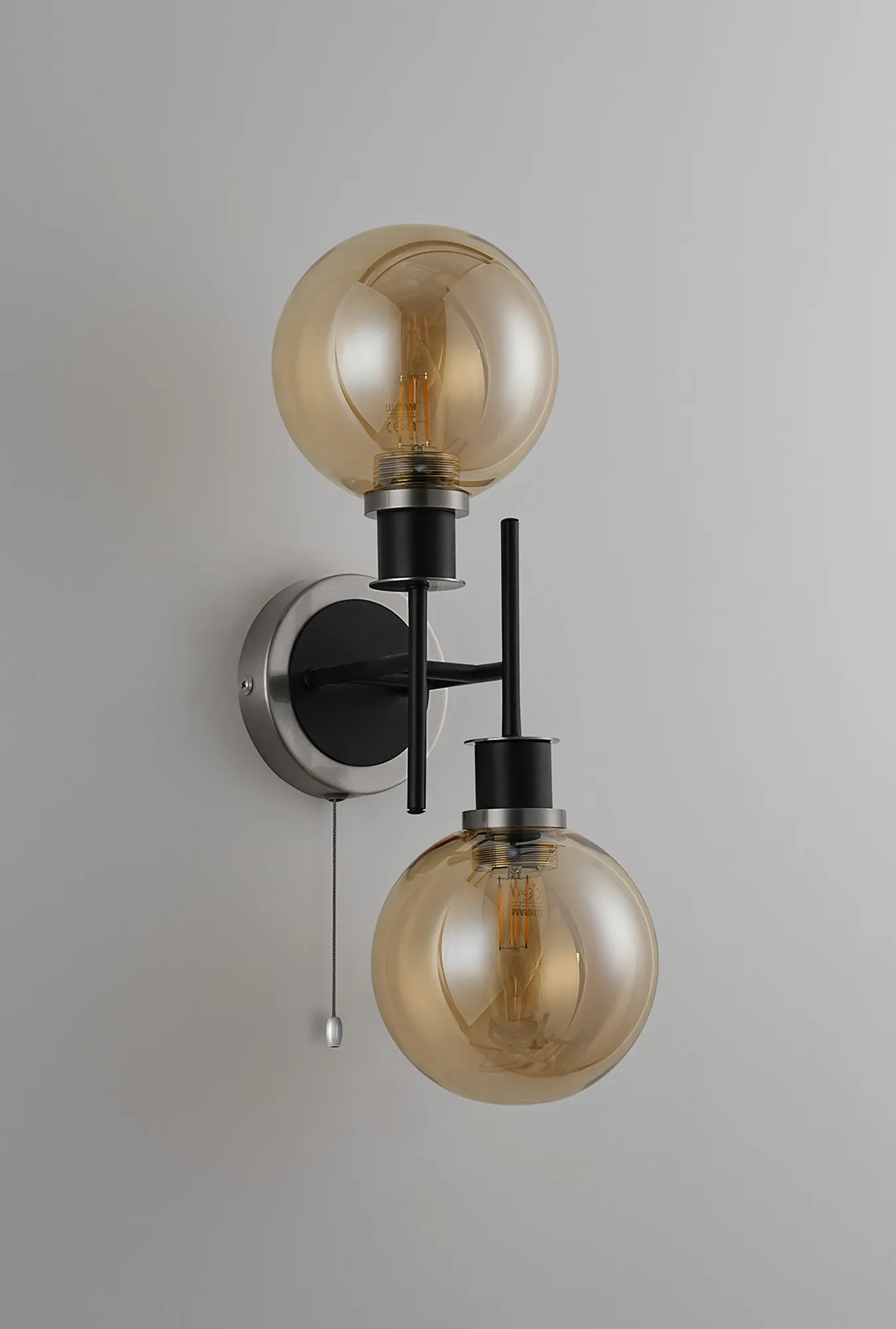 OTHER Greenwood Switched Wall Light, 2 x E14 With 15cm Round Glass Shade, Satin Nickel, Amber Plated & Satin Black