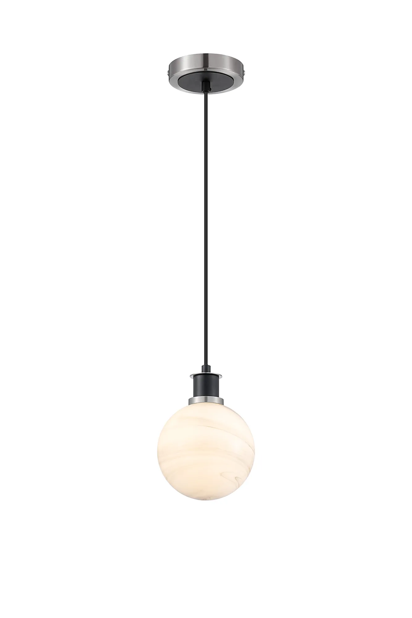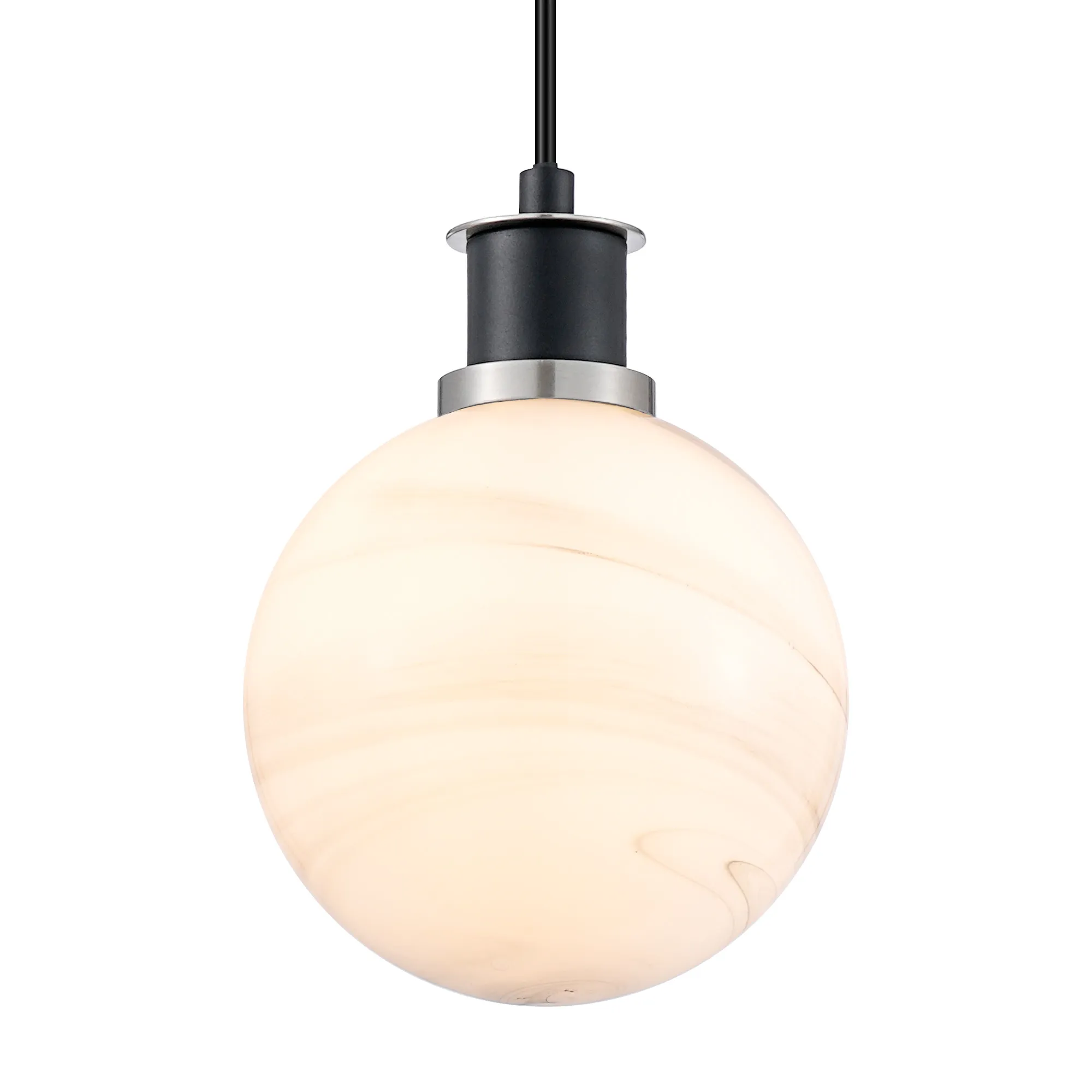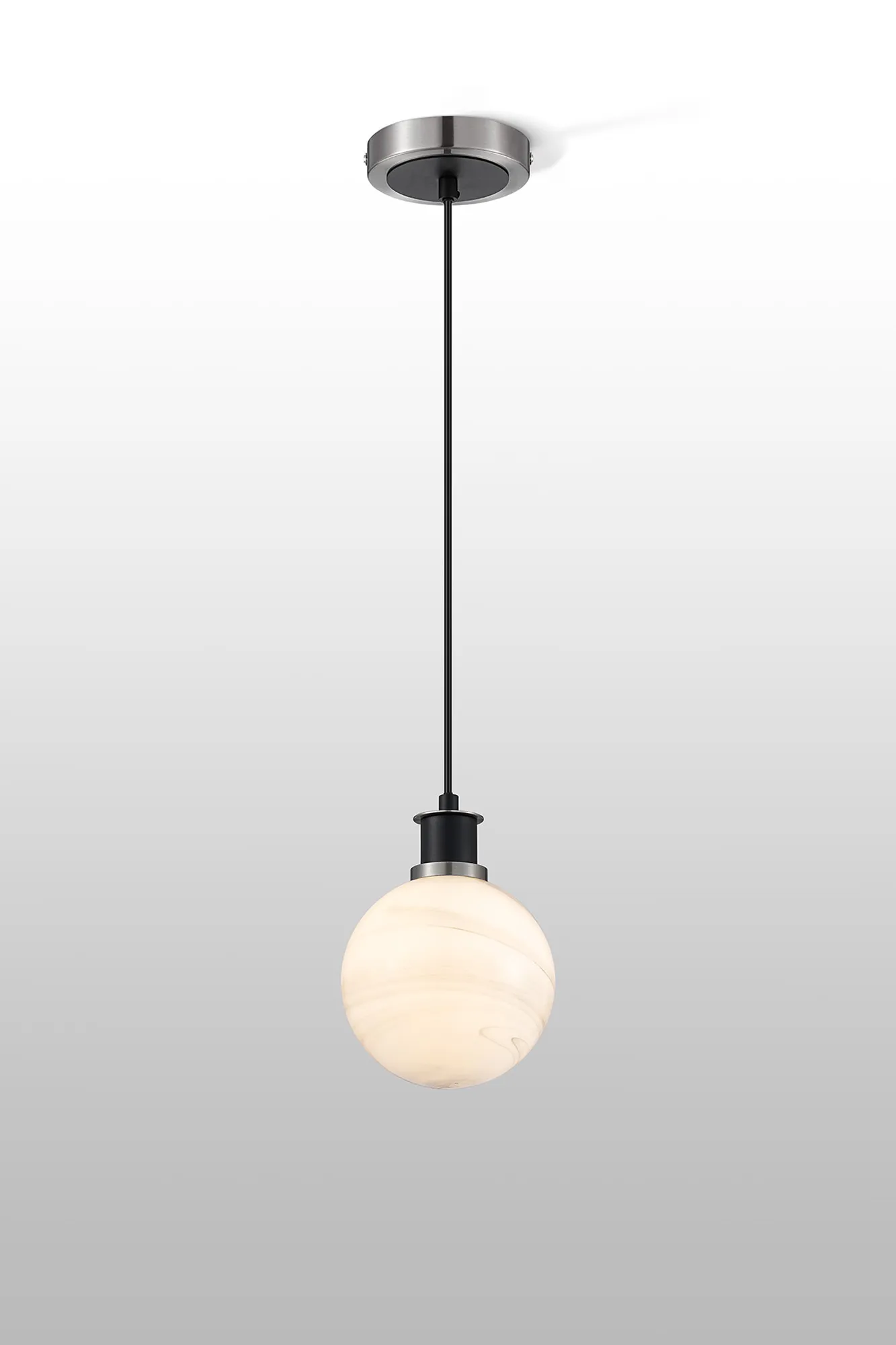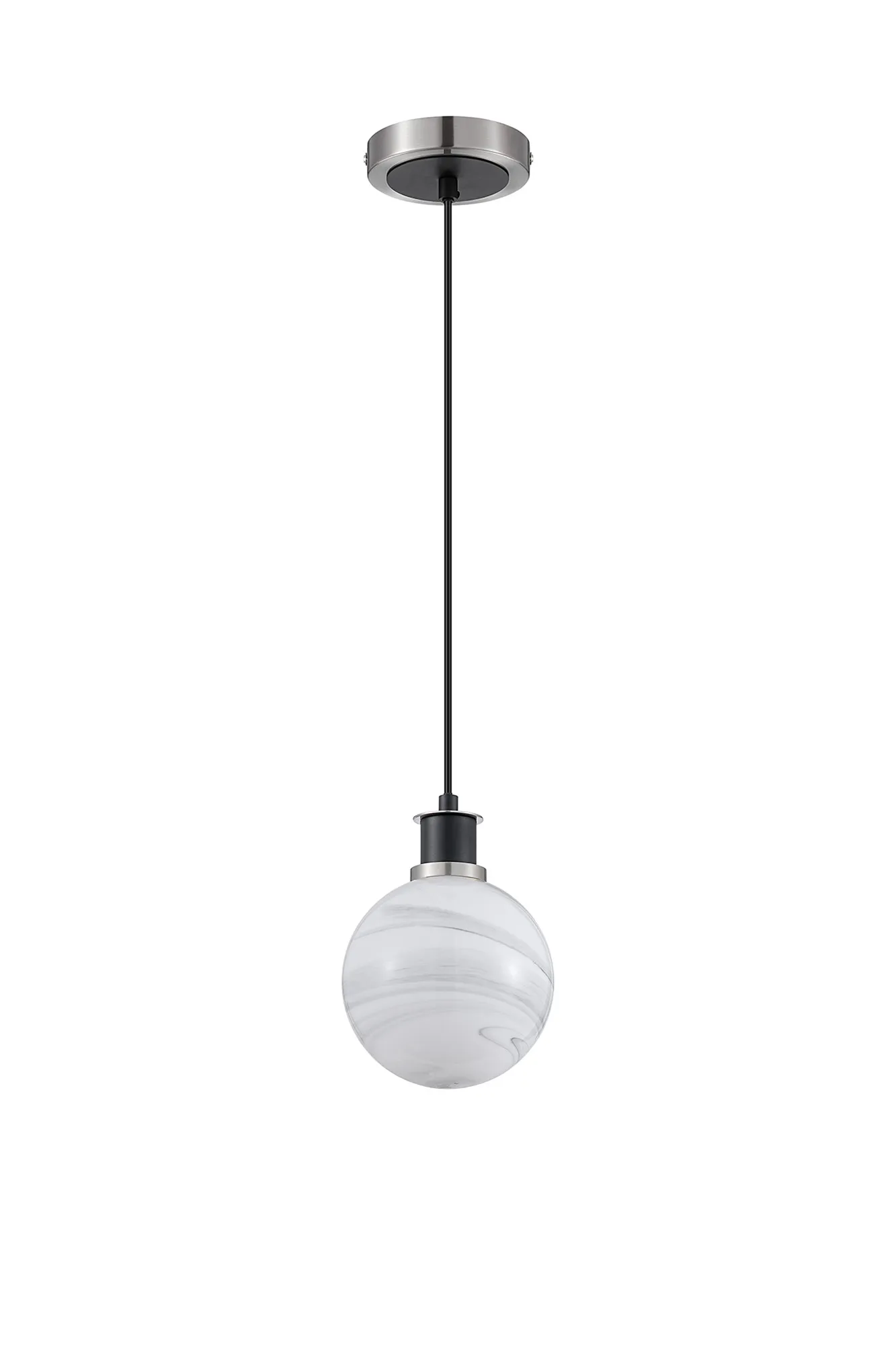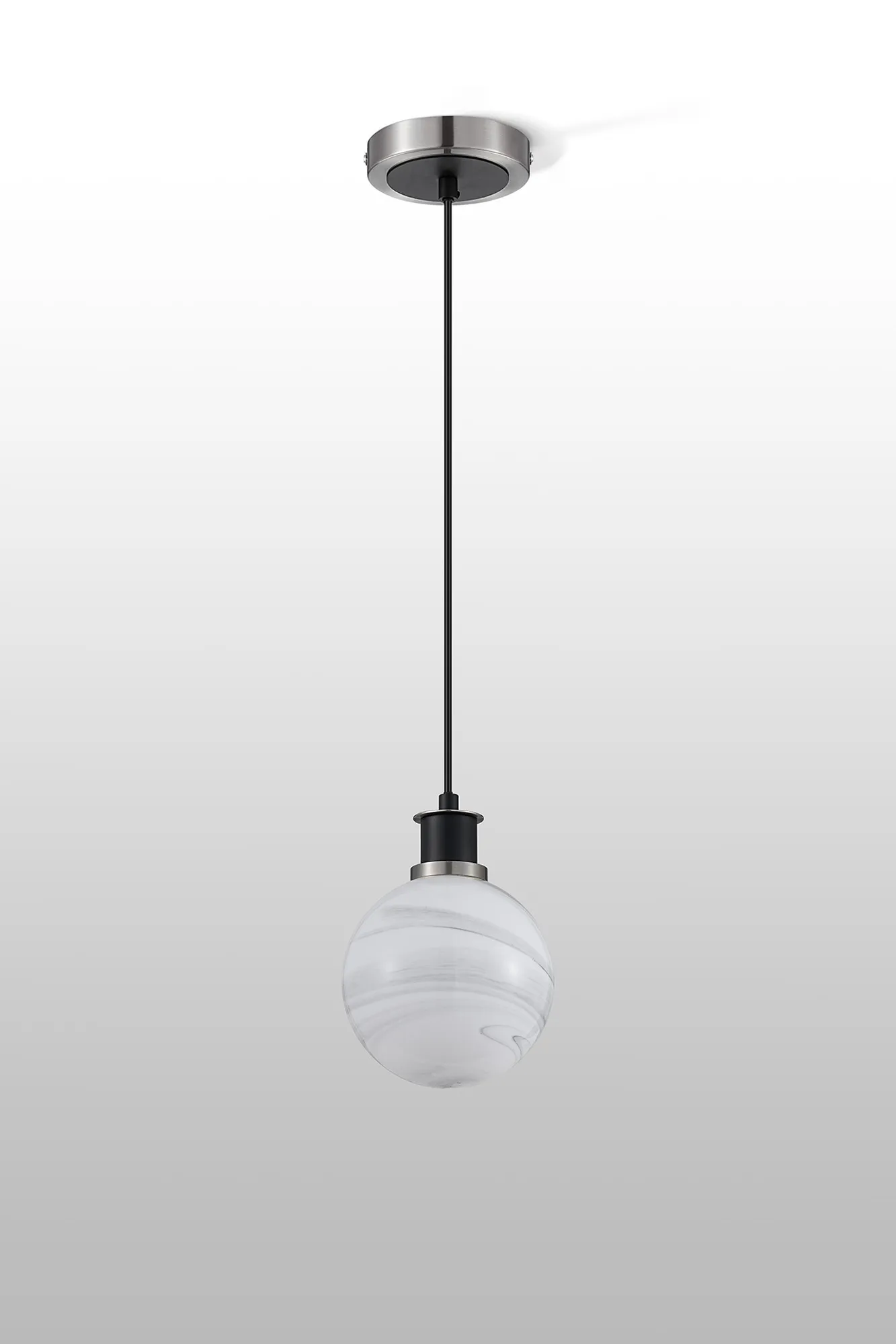 Fernie 15cm Round Marble Effect Glass Shade (H), White / Grey With Metal Ring