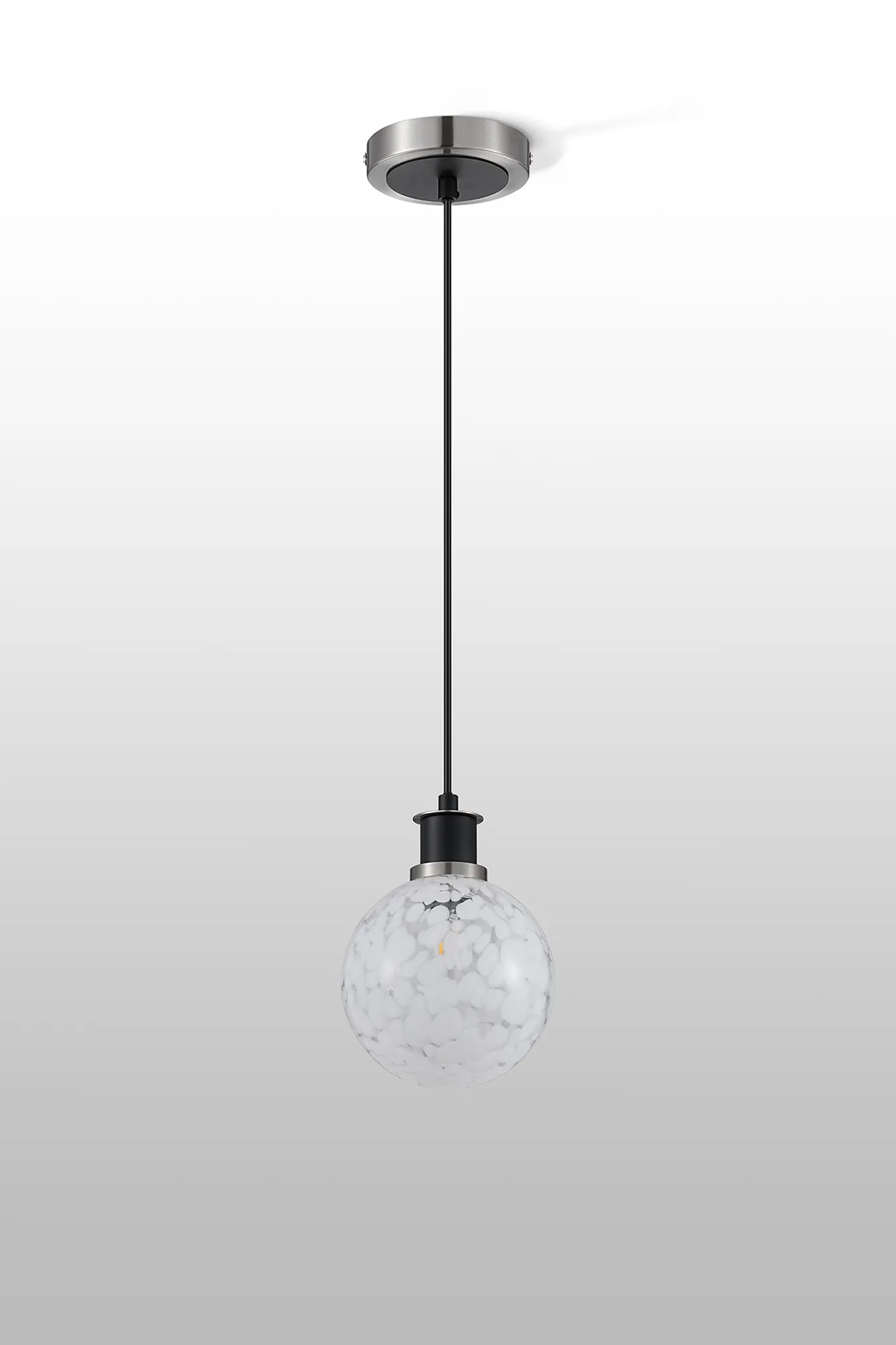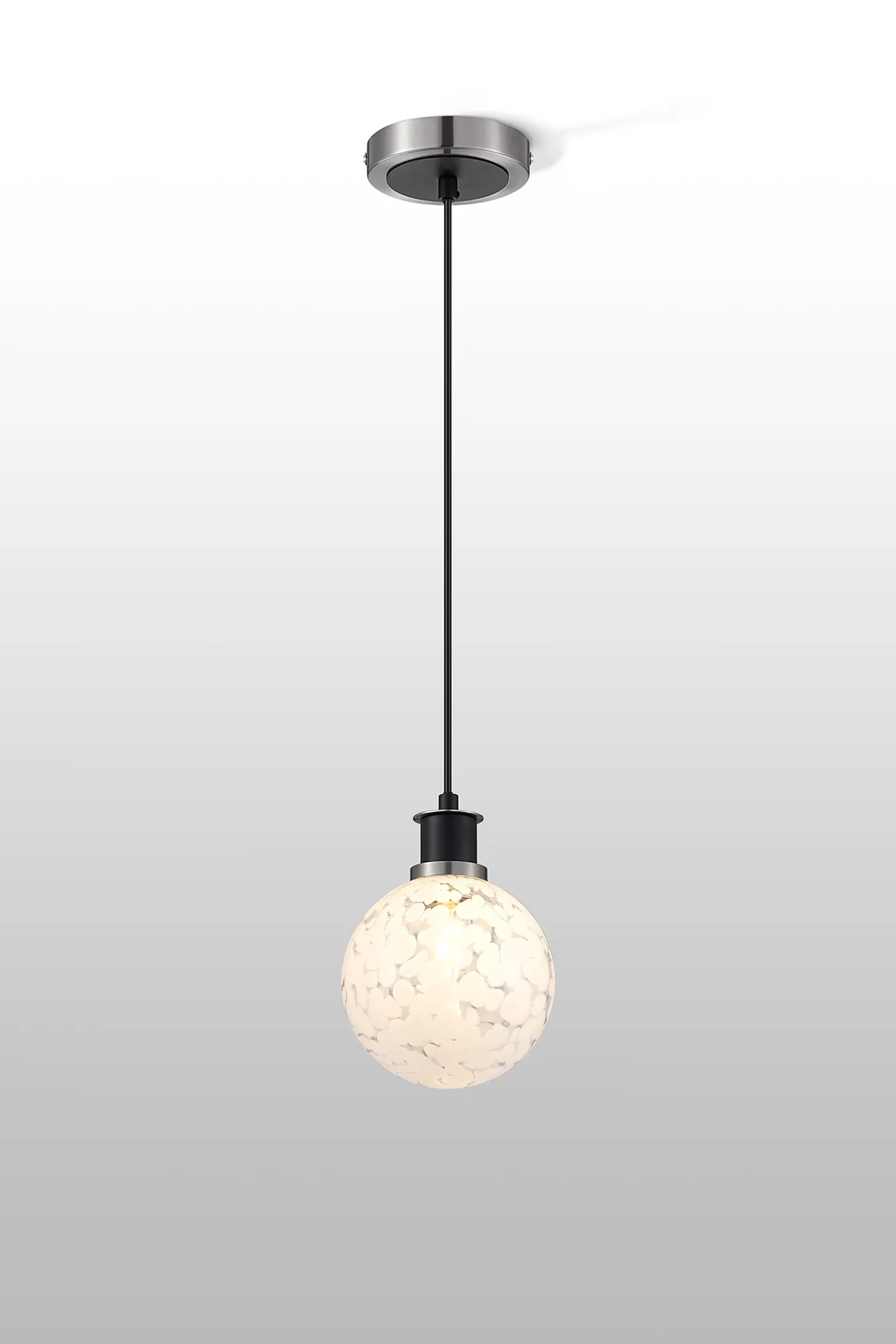Fernie 15cm Round Speckled Glass Shade (K), White / Clear With Metal Ring