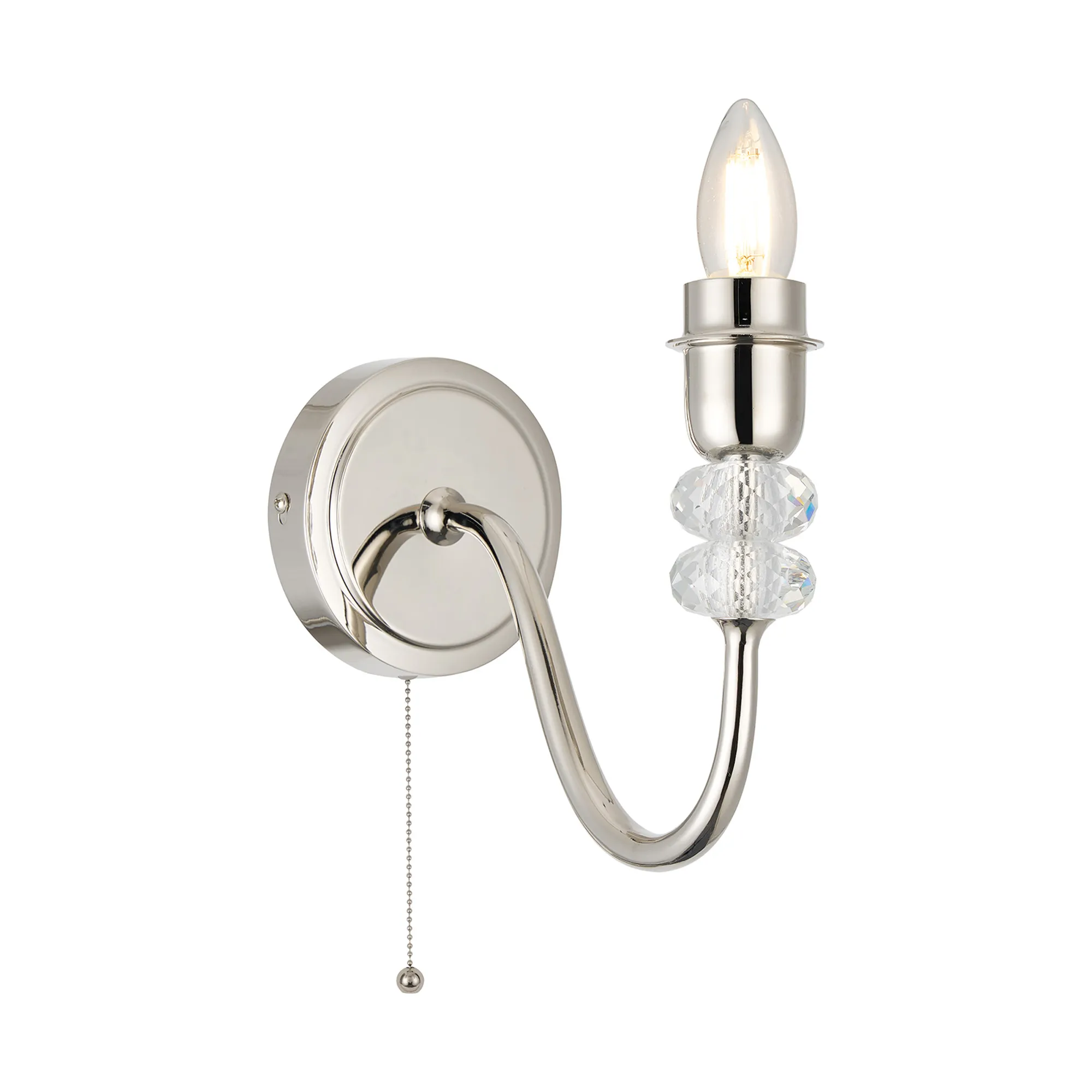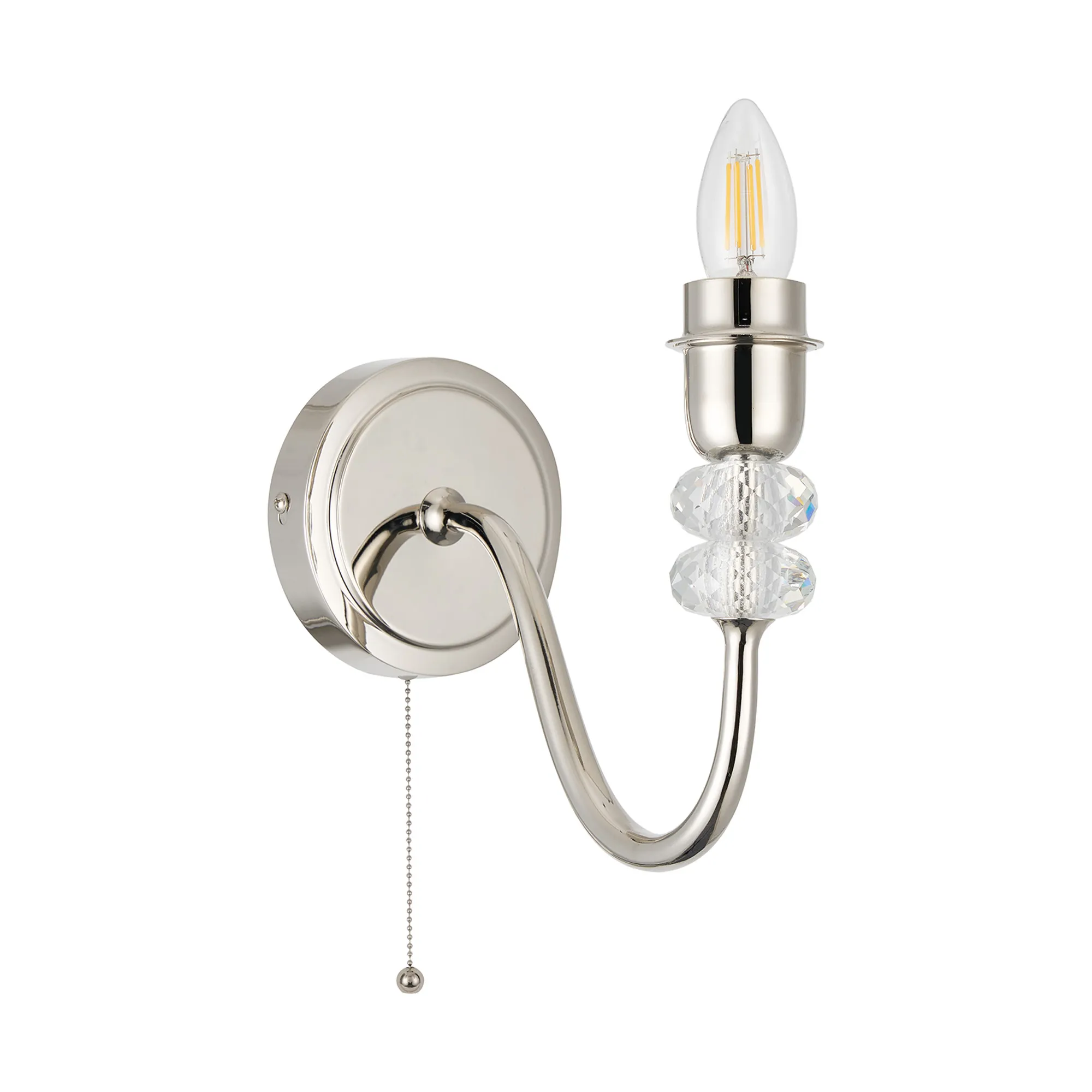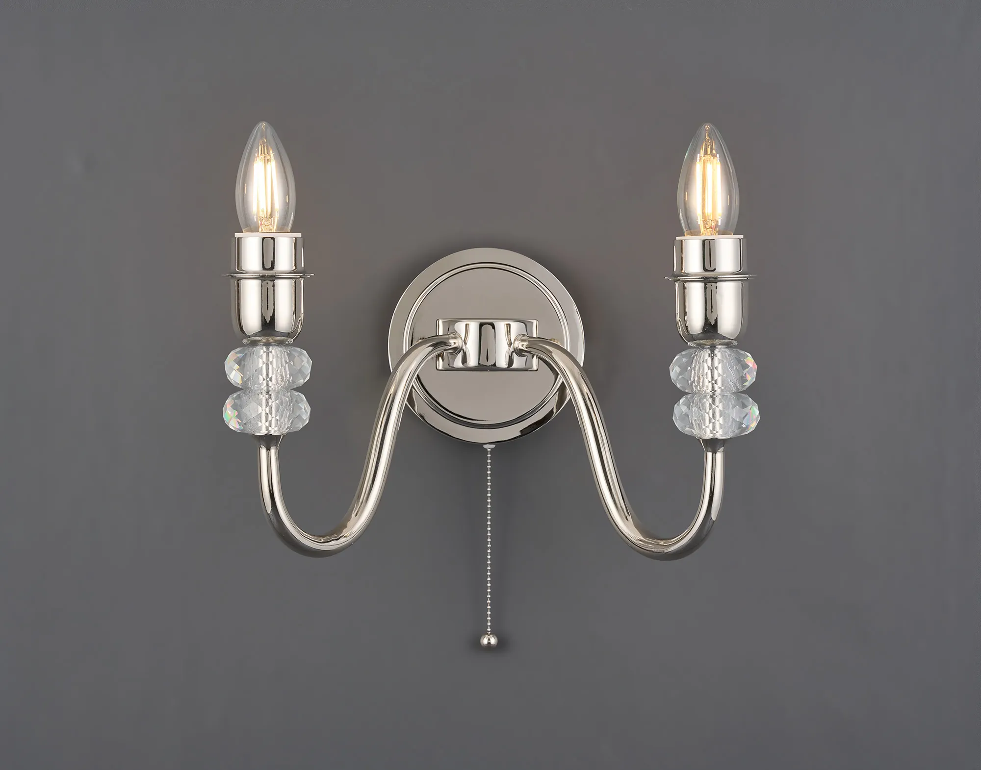 Kelowna Wall Lamp Pull Switch (FRAME ONLY) Without Shade, 2 Light E27, Polished Nickel/Clear Crystal