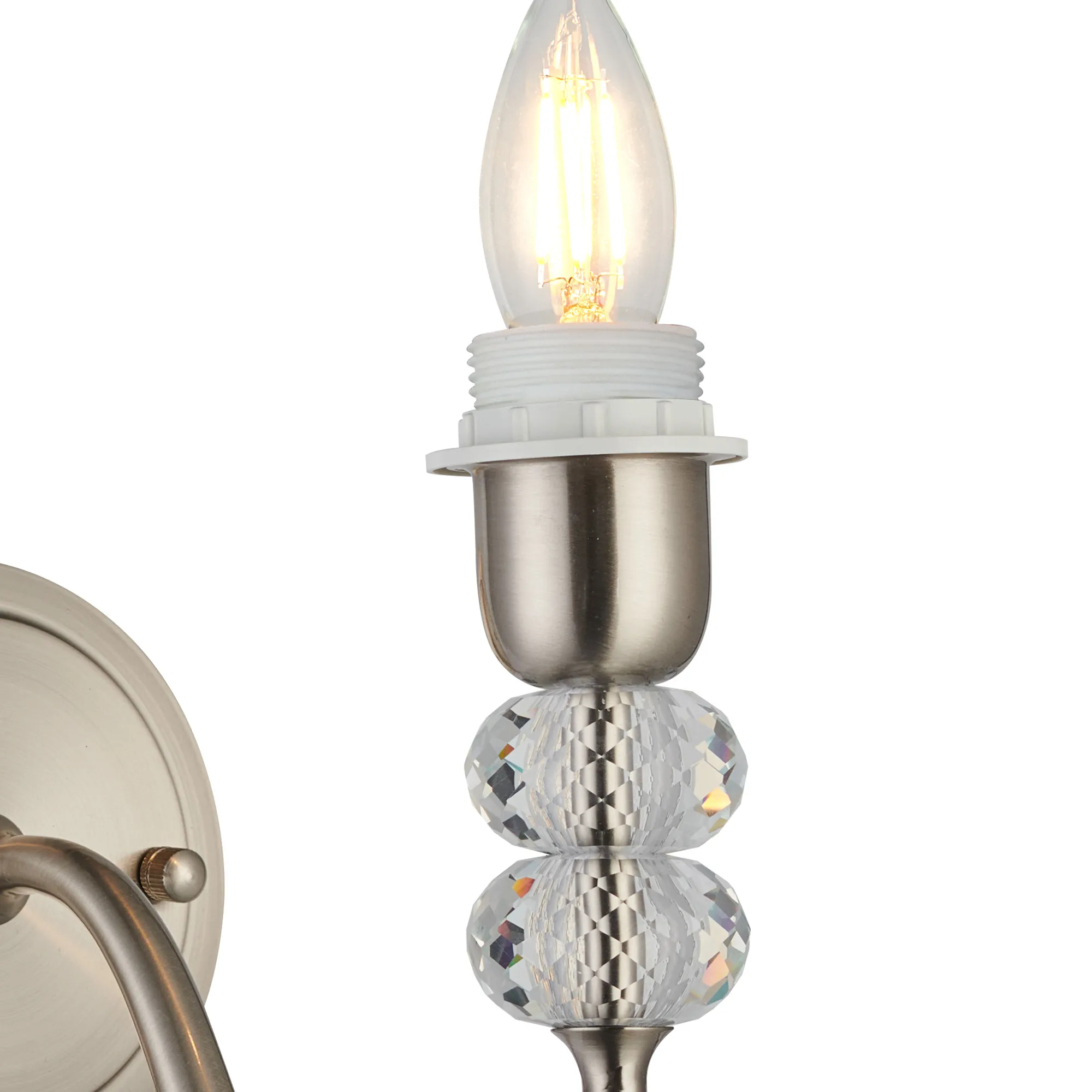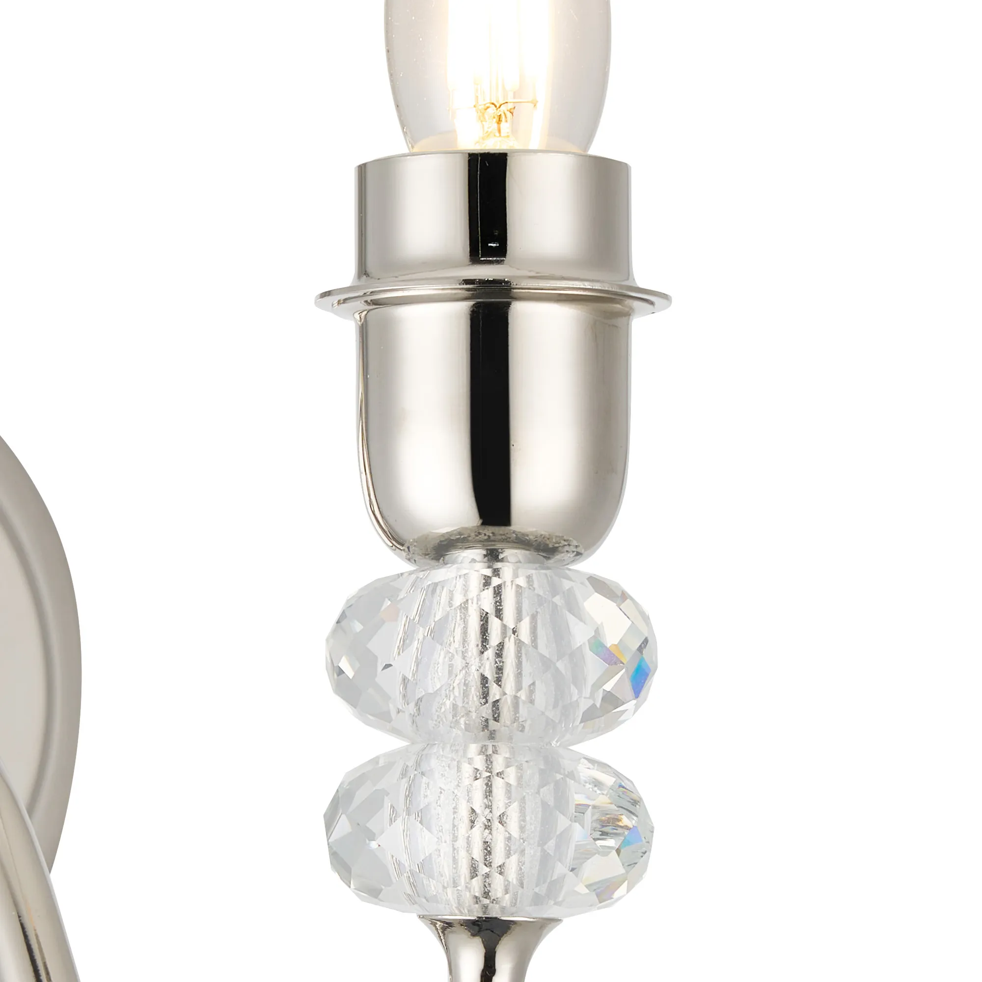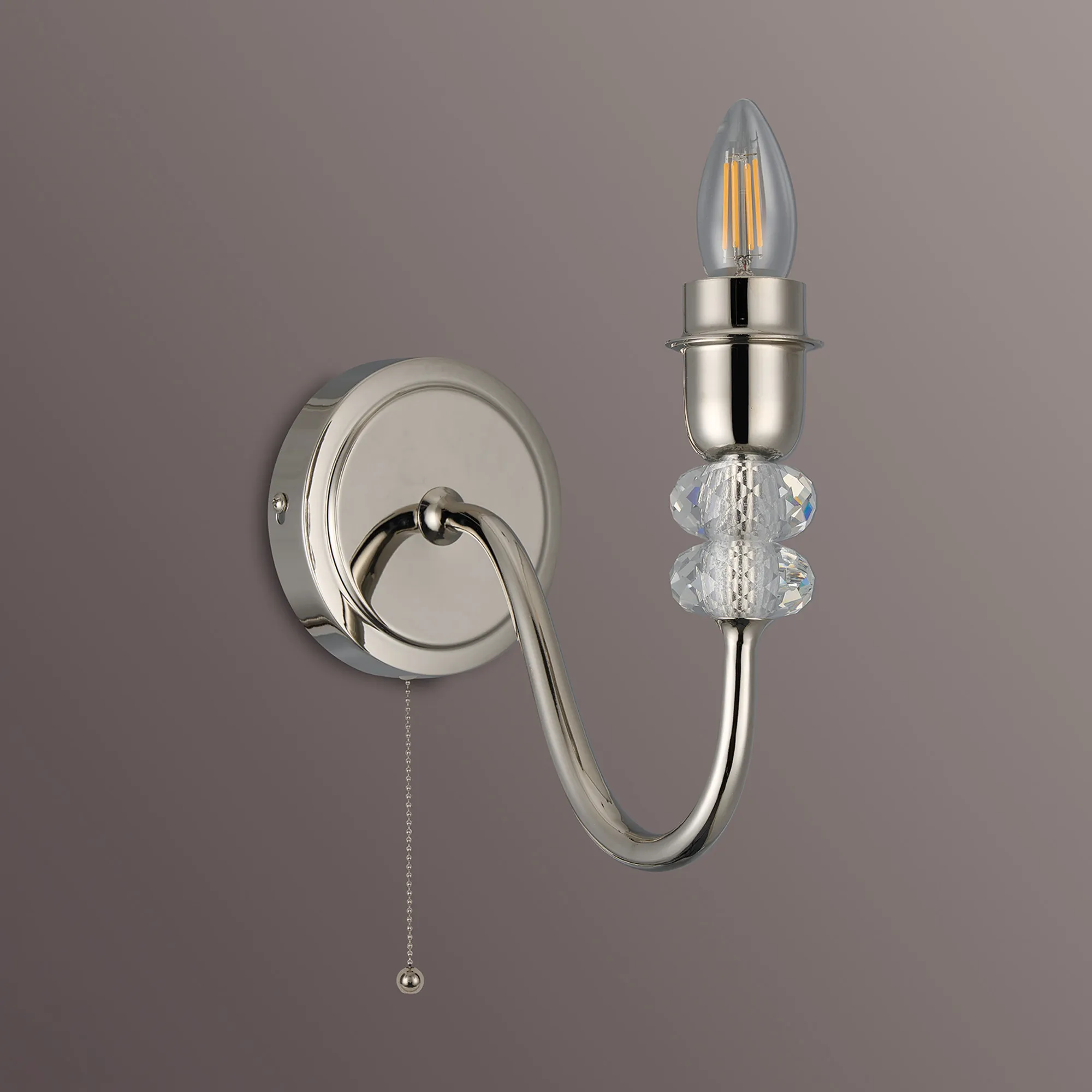 Kelowna Wall Lamp Pull Switch (FRAME ONLY) Without Shade, 2 Light E27, Polished Nickel/Clear Crystal