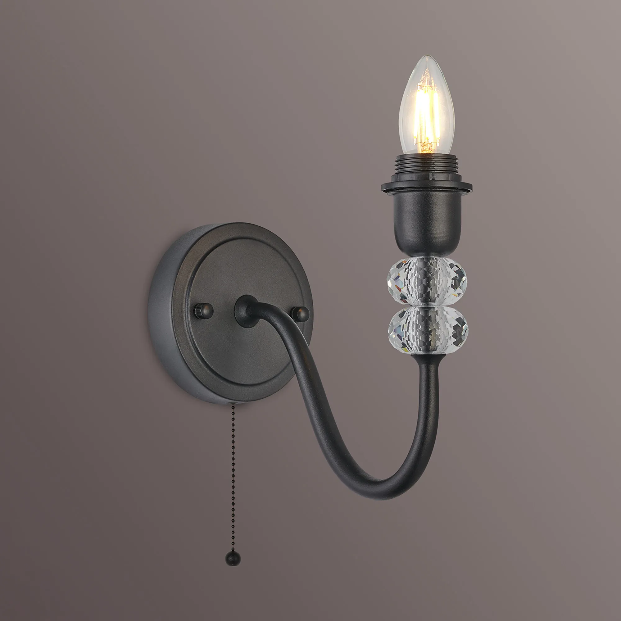 The Kelowna range comprises an assortment of multi-arm pendants and switched wall lamps, offered in your choice of antique brass, satin black, or polished nickel finishes. The crystal-adorned fixtures boast uniquely designed curved arms, featuring varying thickness along their length, and elegantly housing two round crystals beneath the lamp holder. This exquisitely crafted range accommodates E27 lamps, adding a touch of sophistication to your lighting choices.