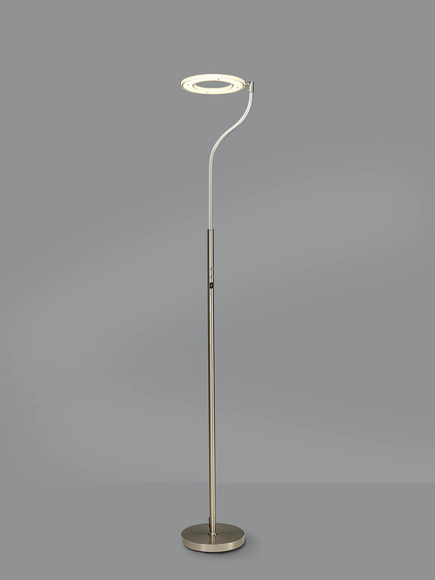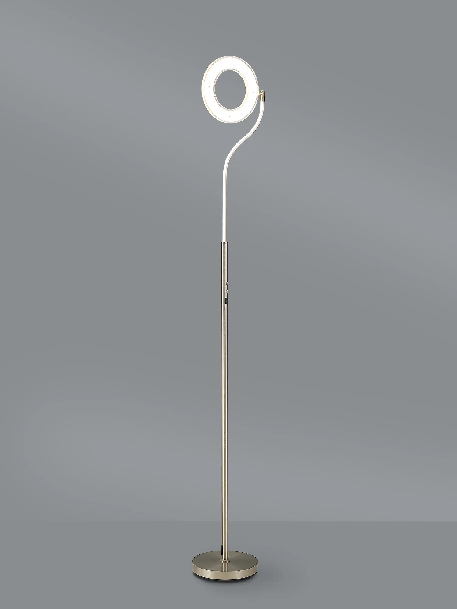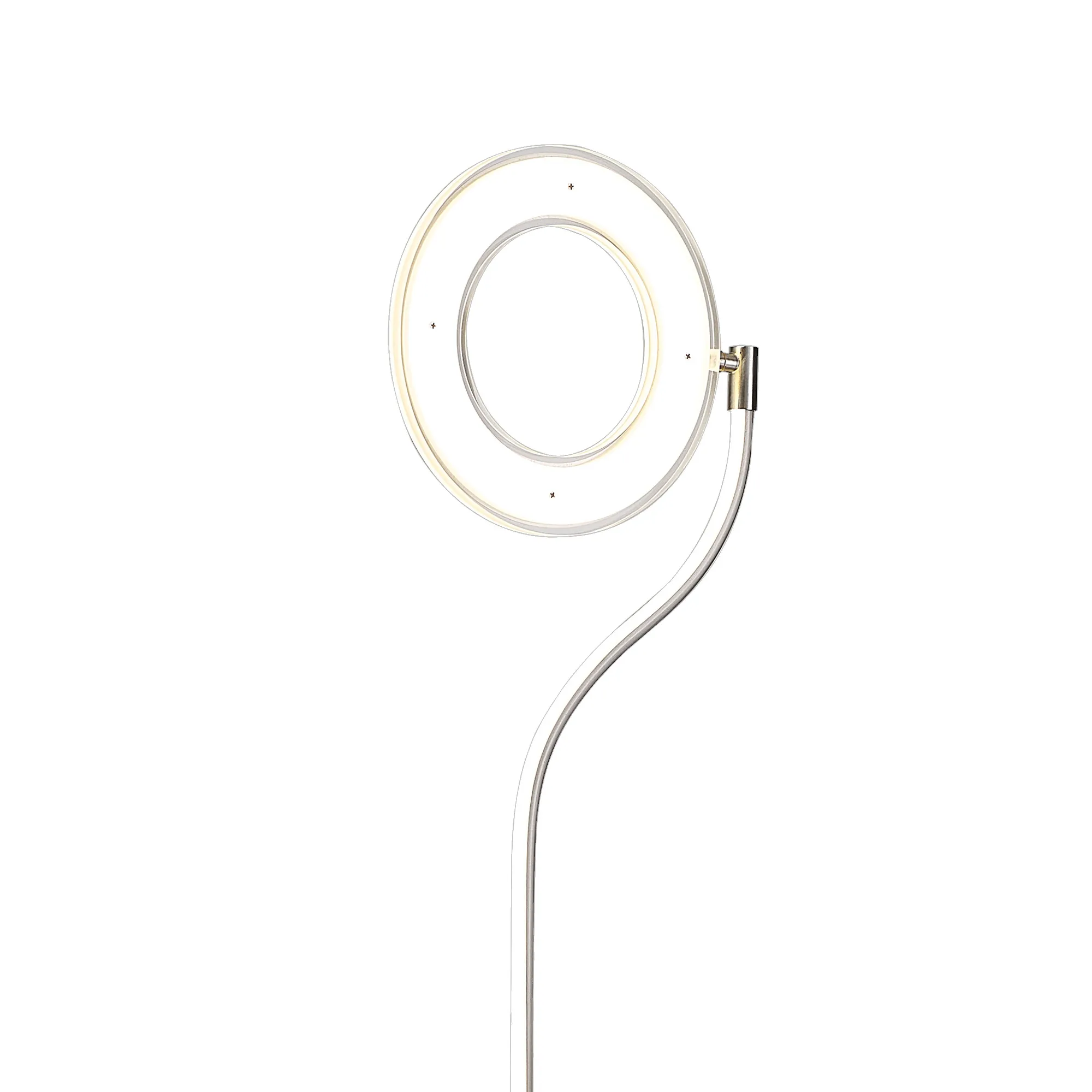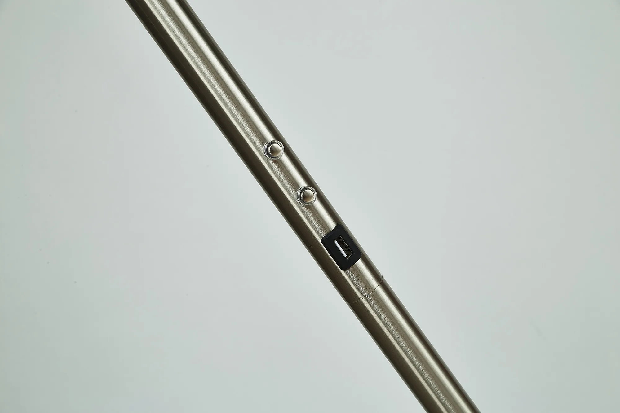 The Kimberley floor lamp collection is a new modern, sleek design. Available in two colour finishes; satin gold and satin nickel, it compromises of a slim stem leading into a halo shaped housing of the integral LEDs. The LED head has the ability to pivot creating a uniqueness and exclusivity as well as heightened control of the lights directionality. To even further amplify the range's appeal, the floor lamp also includes a touch dimmer feature and USB charging ports.